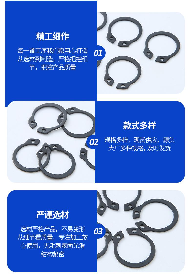 Los fabricantes suministran anillos de retención de eje, anillos de retención elásticos de eje, circlips exteriores tipo C, apertura del anillo de retención de eje, anillo de retención de eje