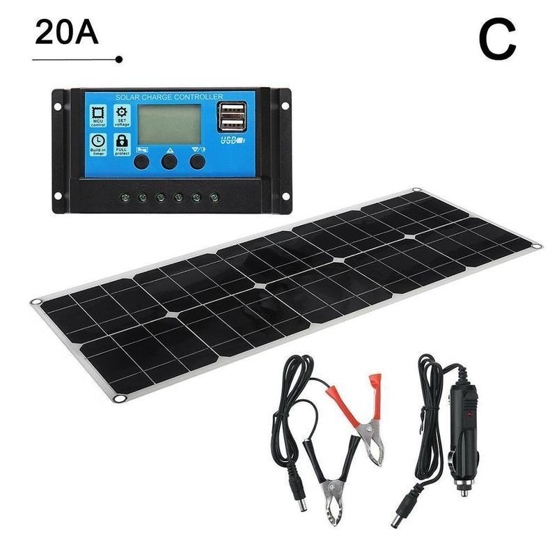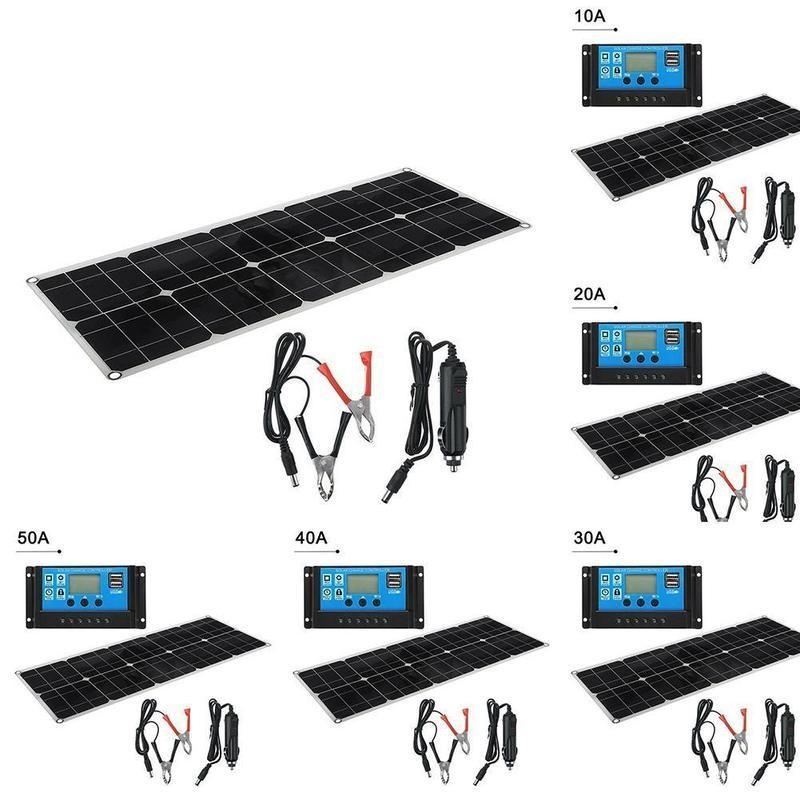Panel solar de 50 W, 5 V, 18 V, controlador de cargador de batería solar flexible, pantalla LCD, controlador MPPT PWM para autocaravanas y vehículos recreativos.