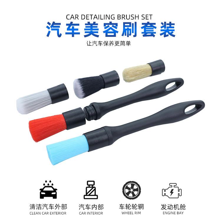 Cepillo para detalles de lavado de autos, cabezal de cepillo reemplazable, 5 piezas de pelo suave que no daña la pintura, cepillo para cubo de rueda, herramienta de limpieza interior del automóvil
