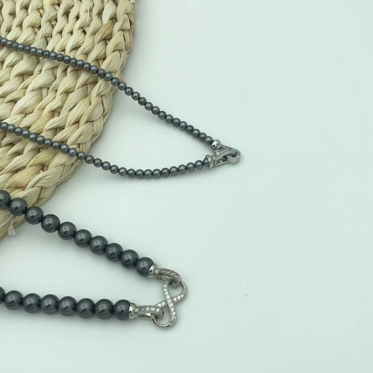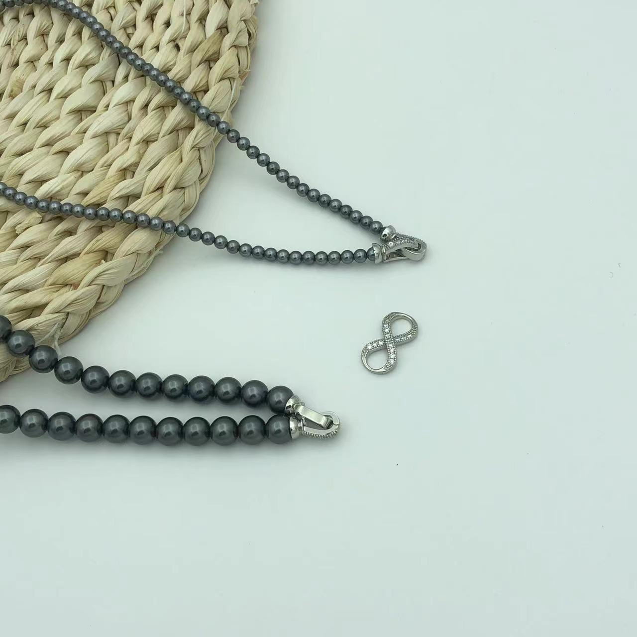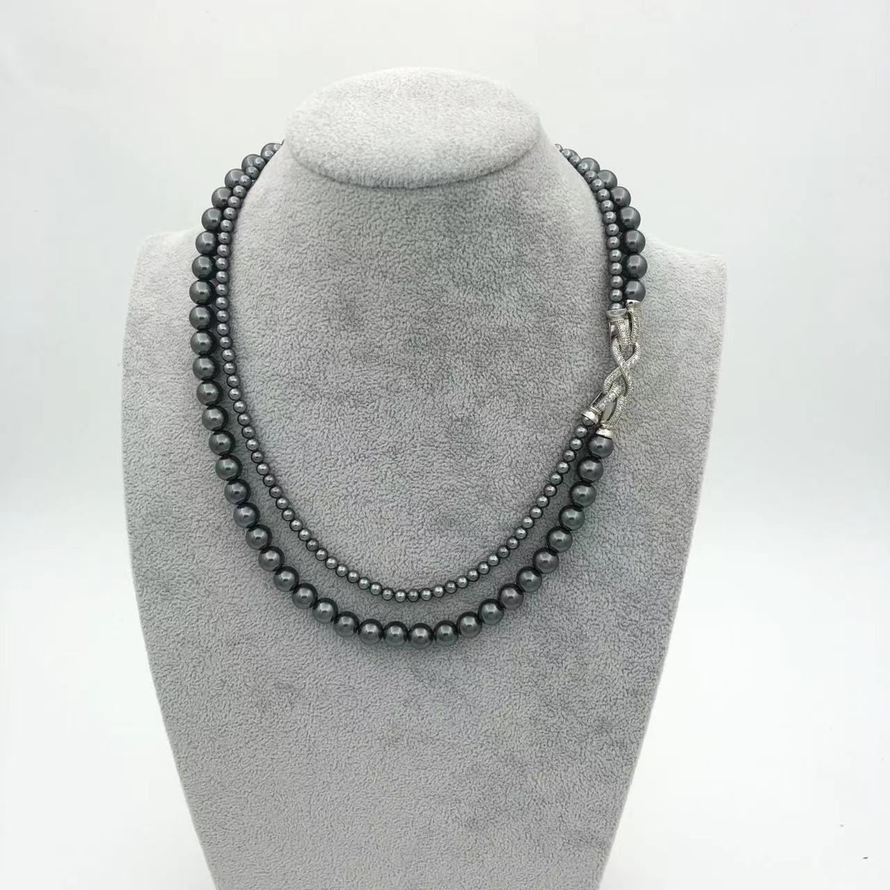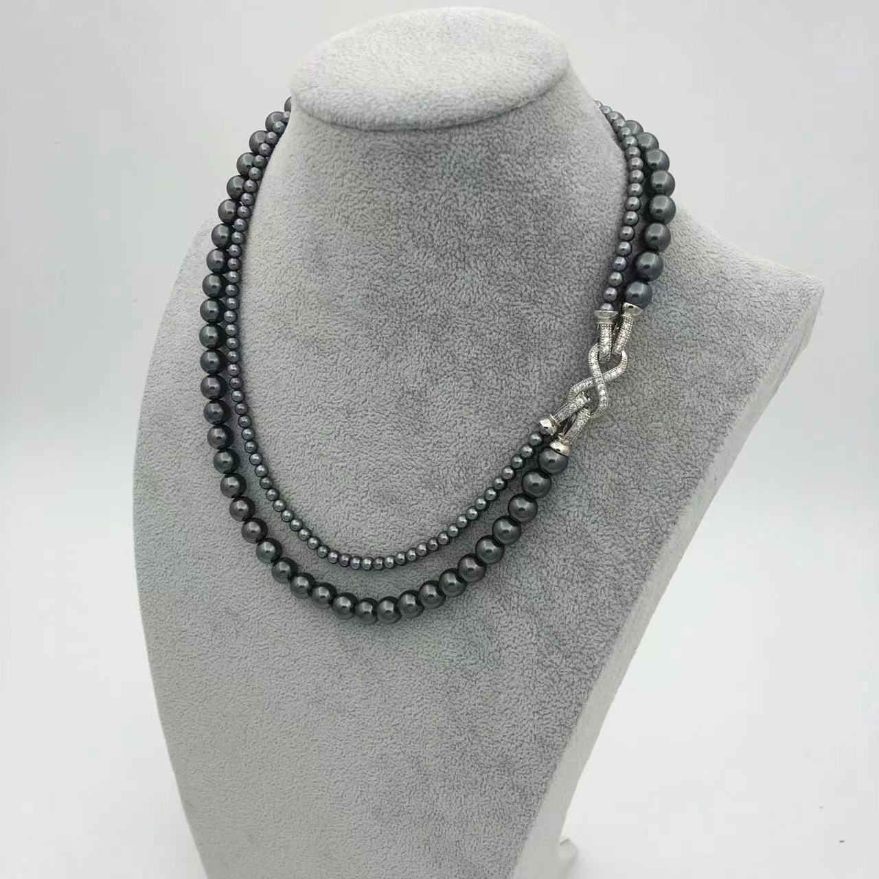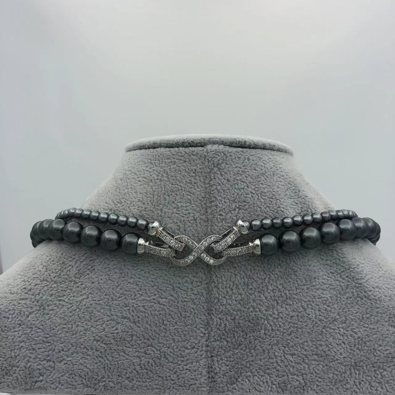 Collar Largo Tahitiano de Clavícula con Cierre de Ocho Micro-Incrustado de Perlas de Vidrio de Doble Capa Desmontable para Múltiples Usos