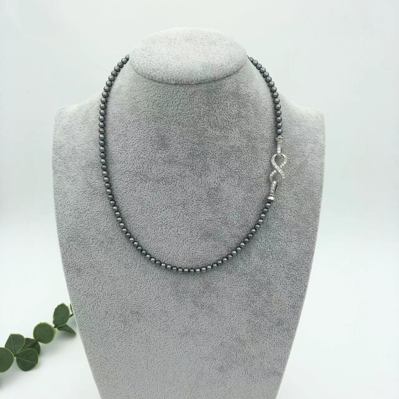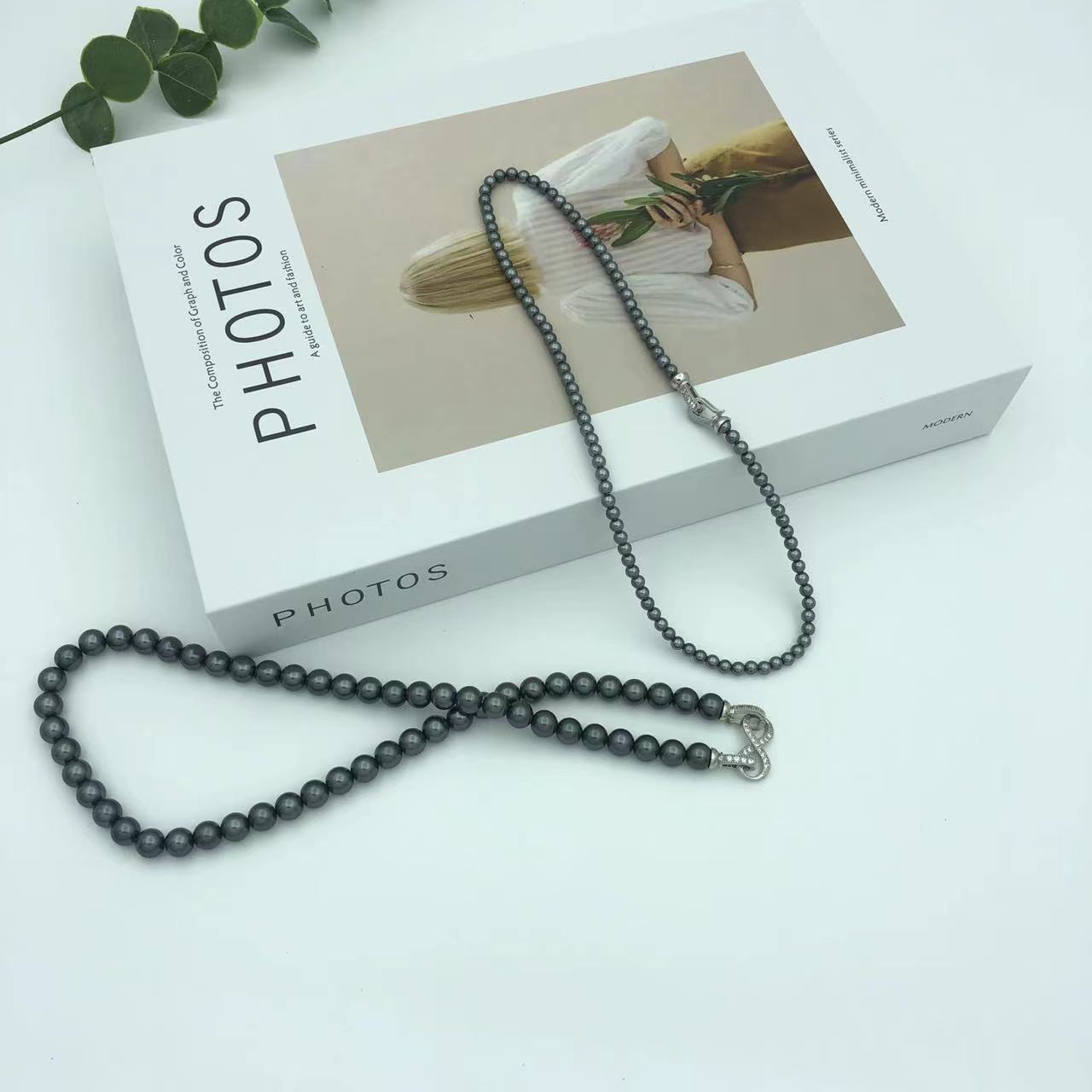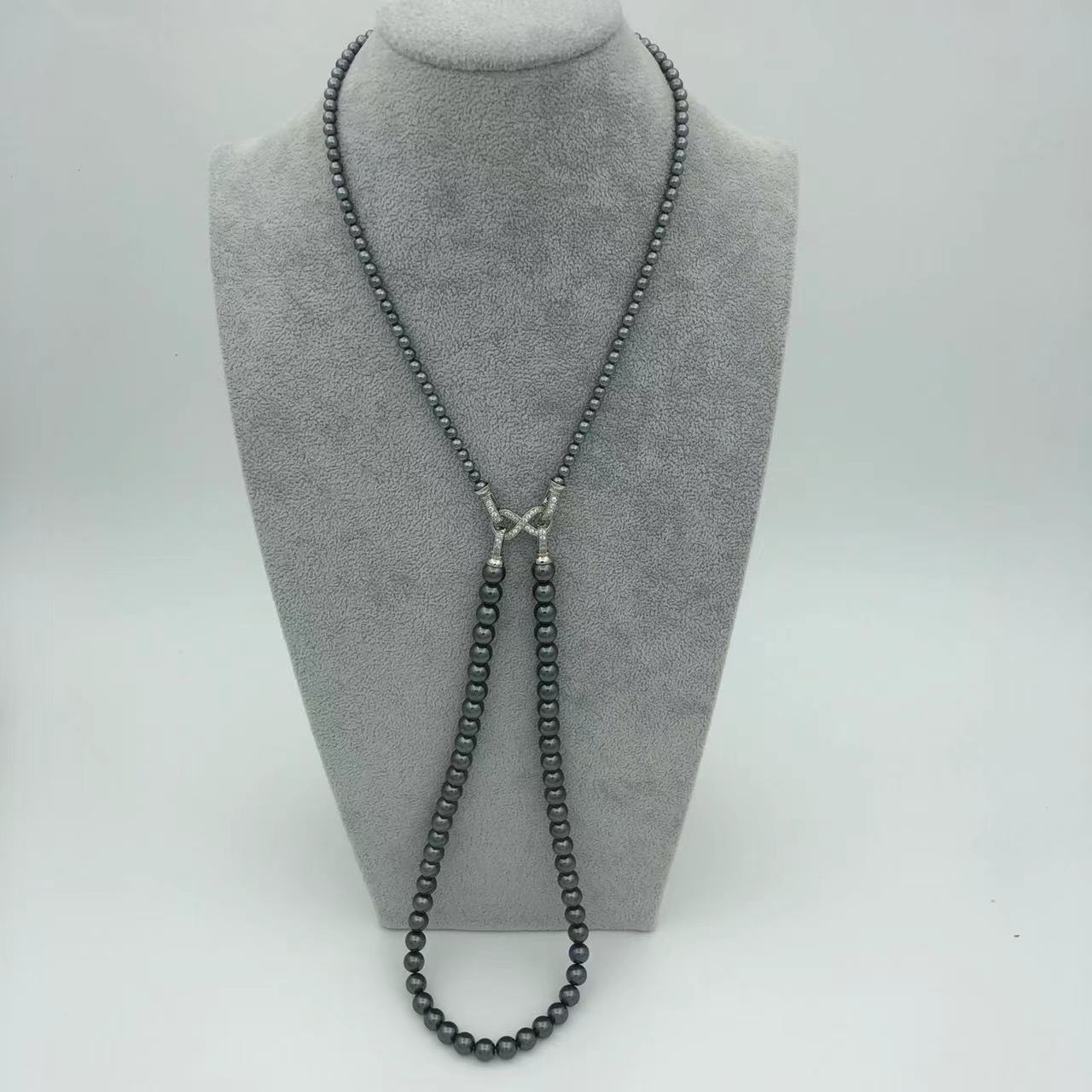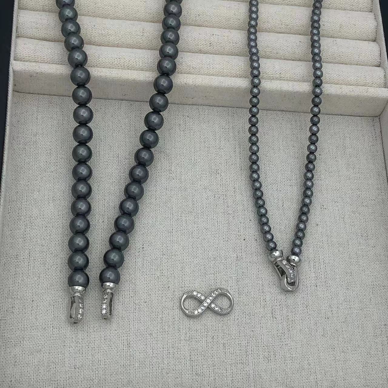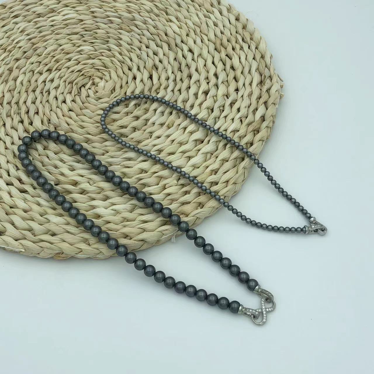 Collar Largo Tahitiano de Clavícula con Cierre de Ocho Micro-Incrustado de Perlas de Vidrio de Doble Capa Desmontable para Múltiples Usos