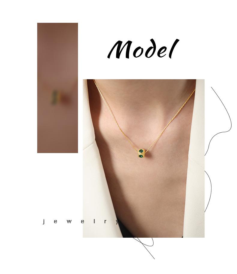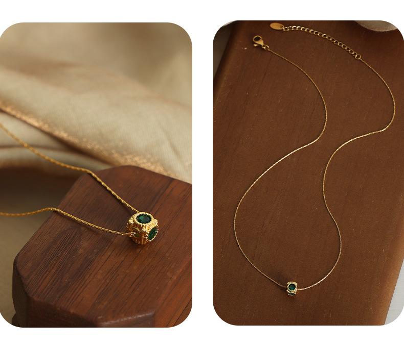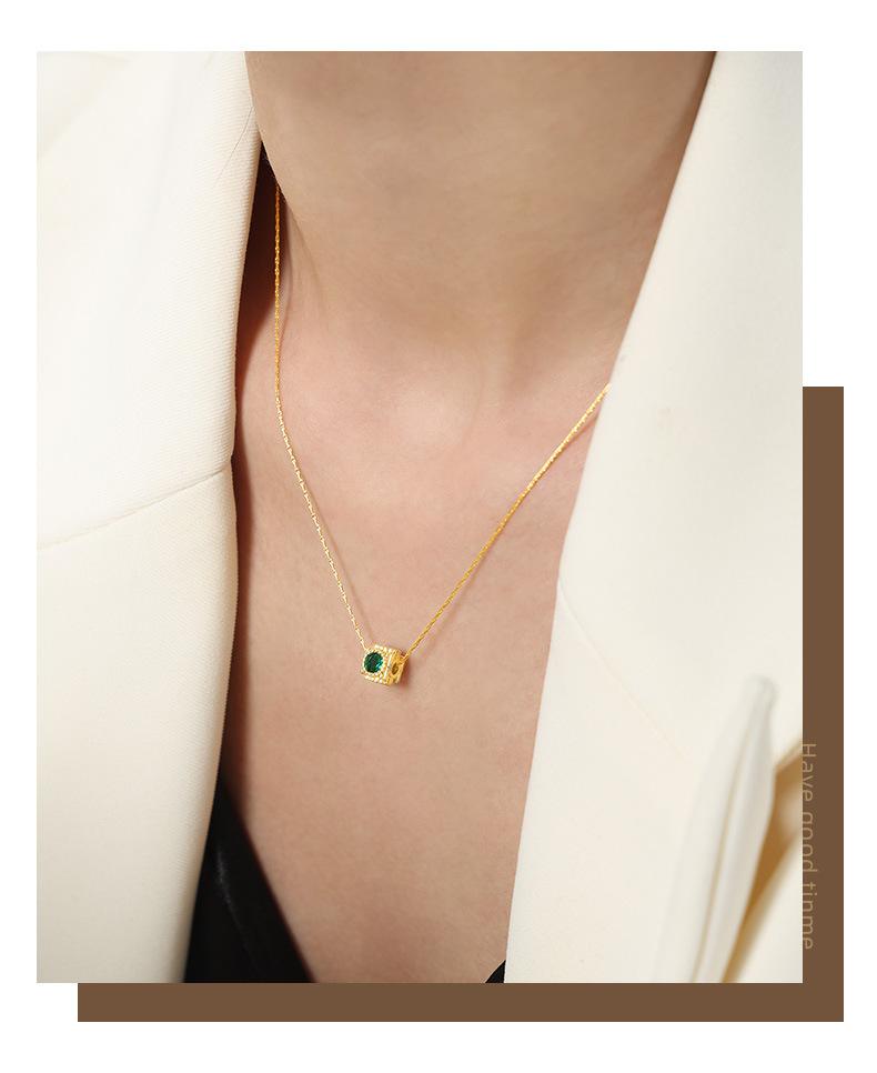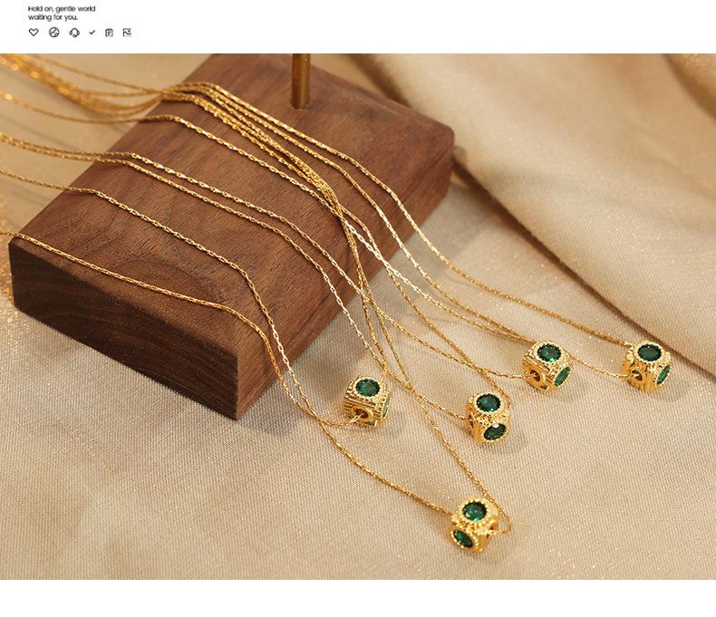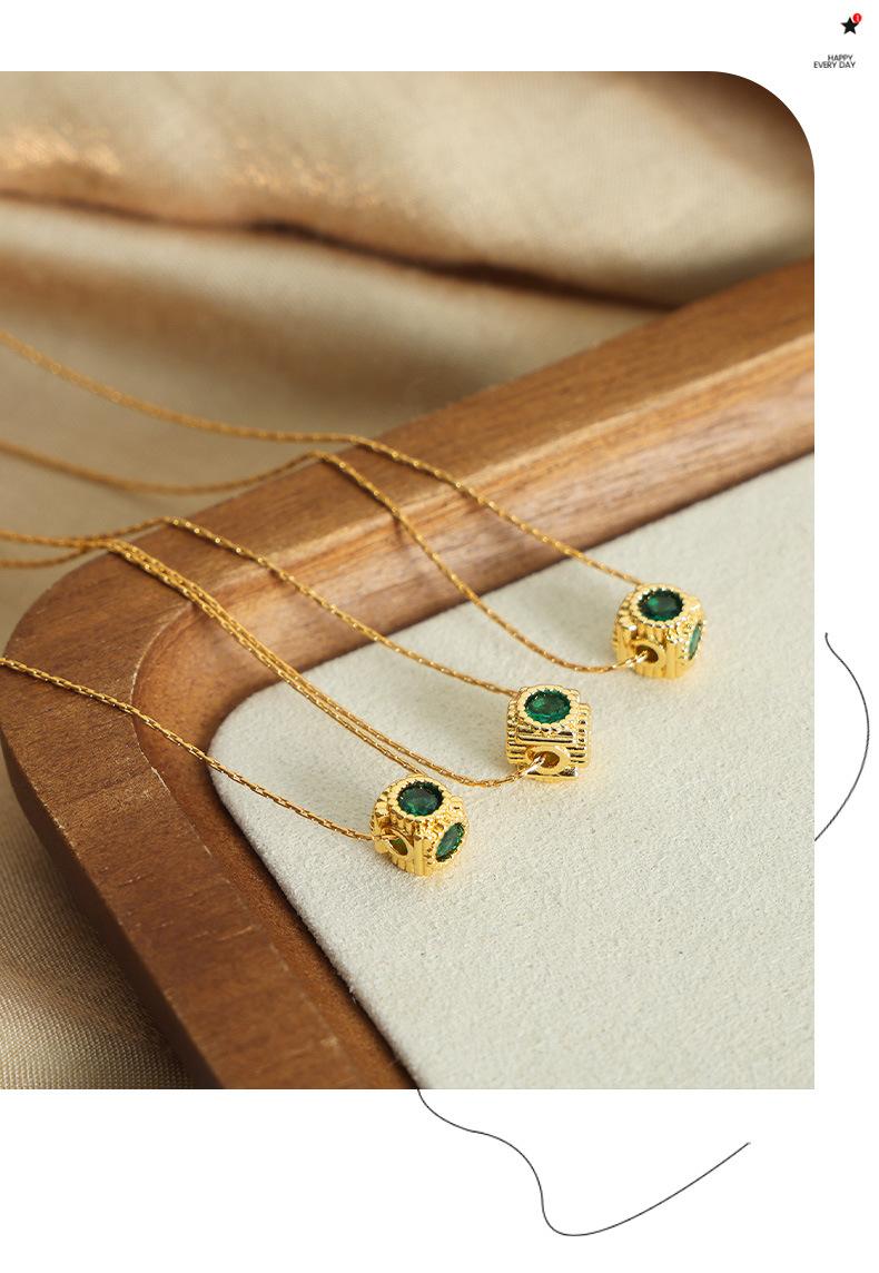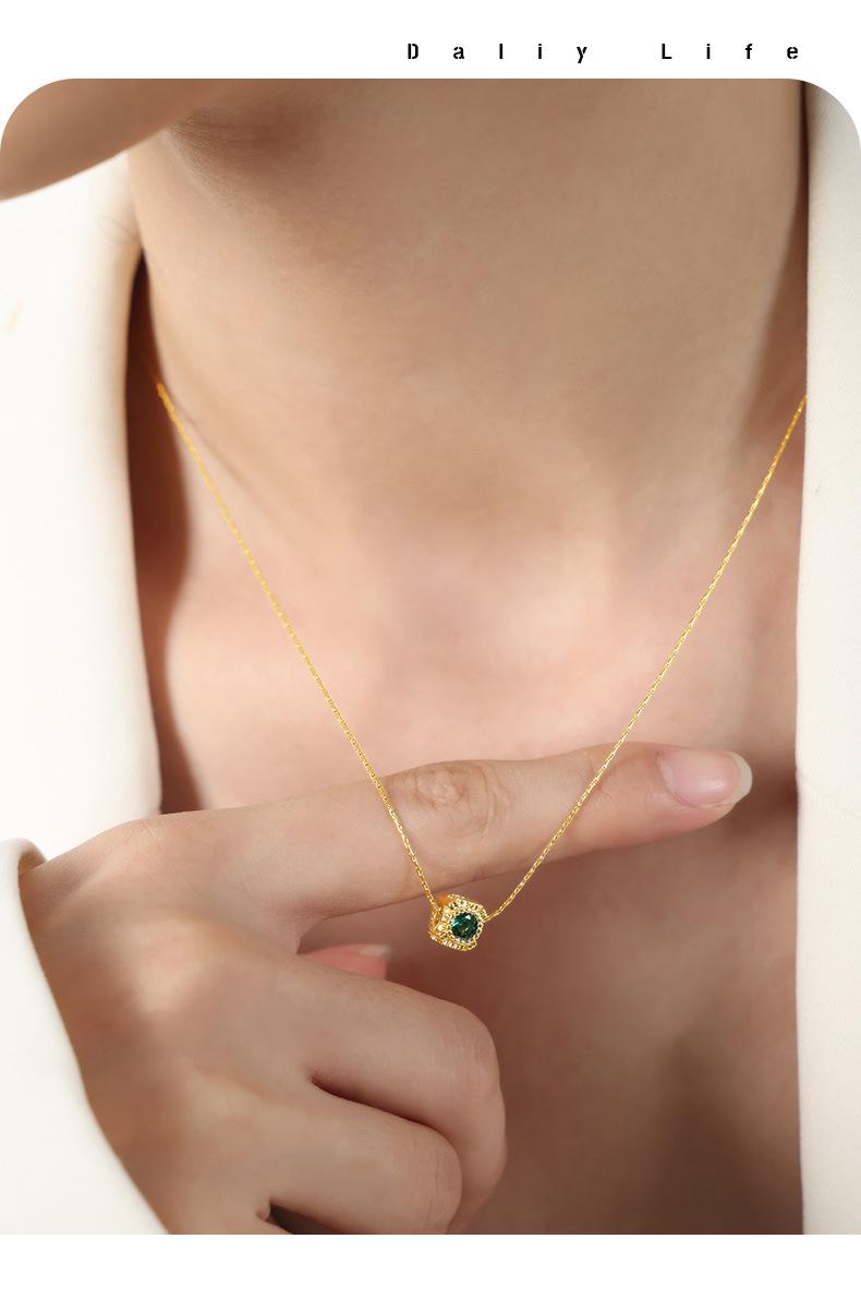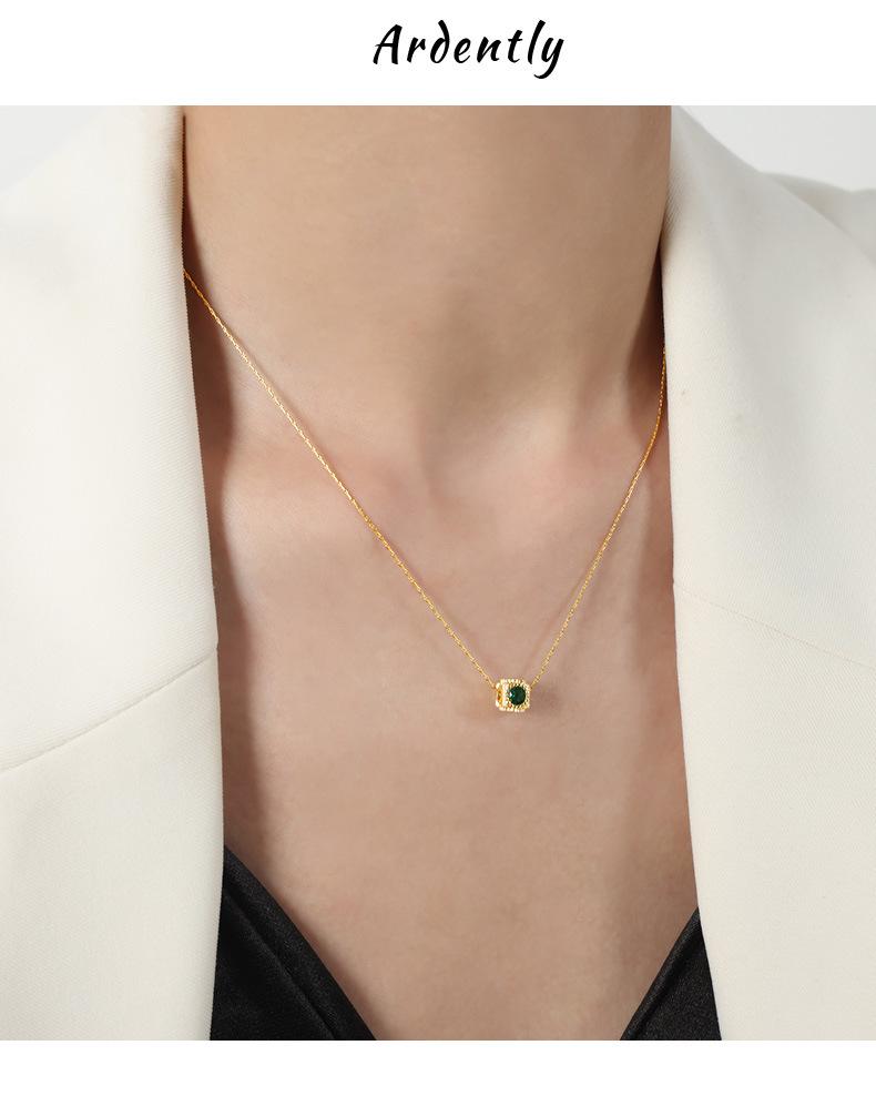 Collar con colgante de circonita con incrustaciones de cobre geométrico con diseño de nicho de lujo ligero retro de alta calidad de estilo europeo y americano para mujer