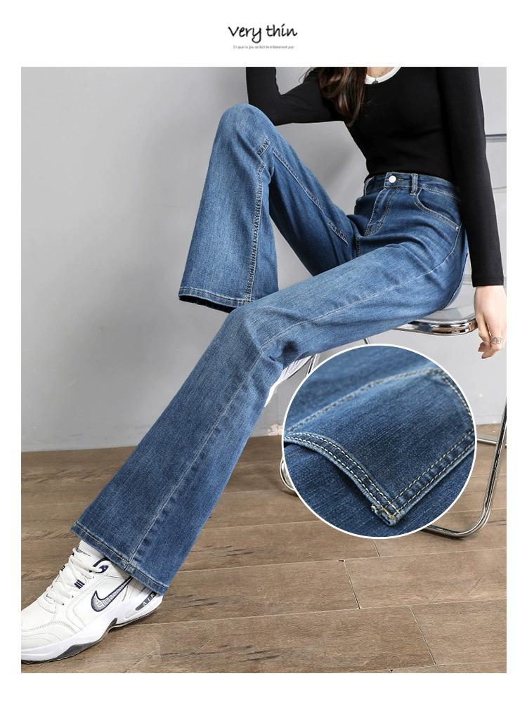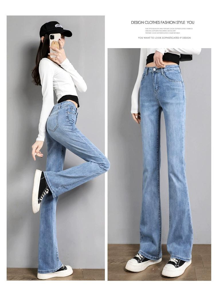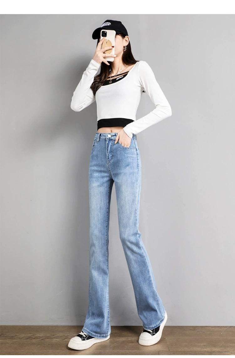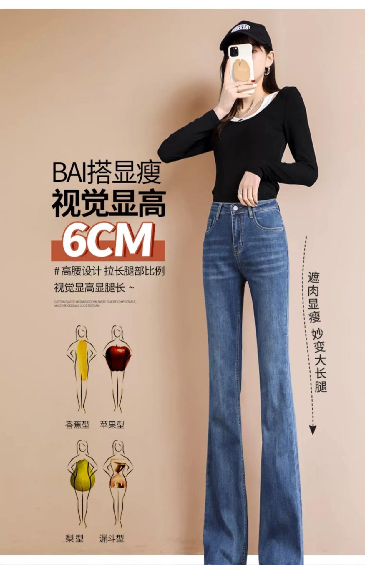 Pantalones vaqueros micro acampanados para mujer, primavera 2024, nuevos pantalones adelgazantes de cintura alta con diseño de herradura, pantalones acampanados elásticos ajustados