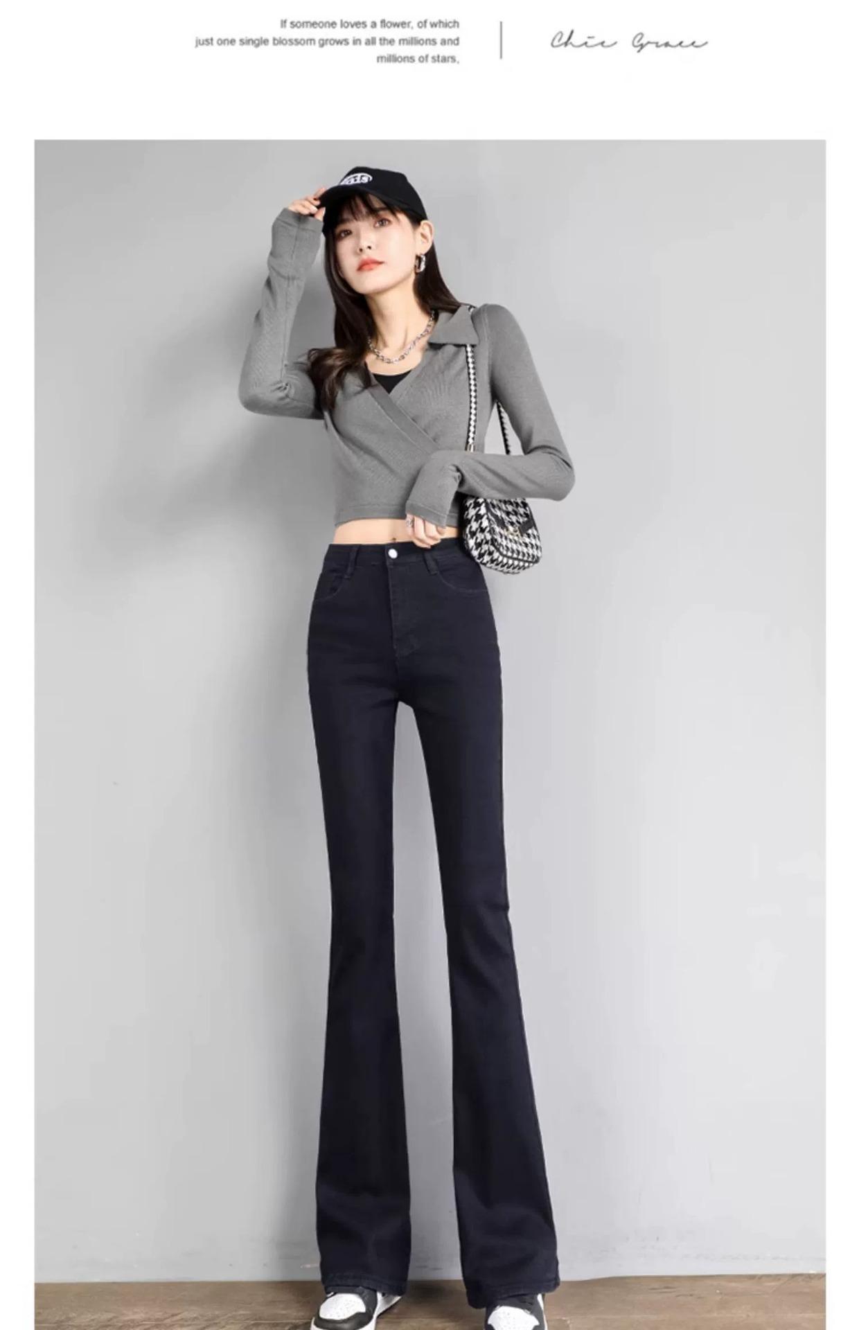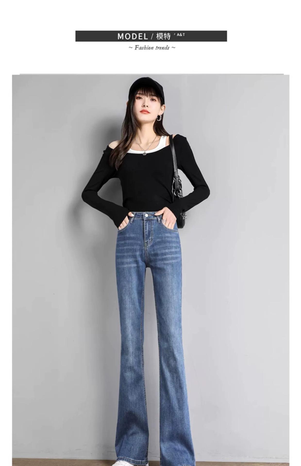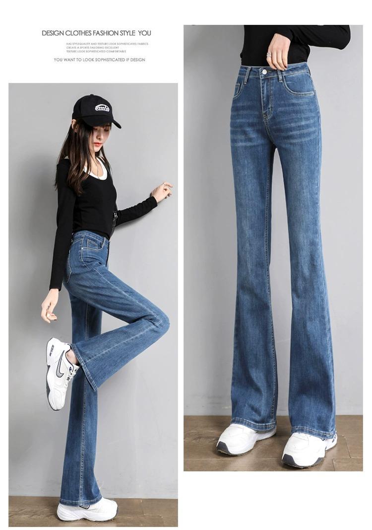 Pantalones vaqueros micro acampanados para mujer, primavera 2024, nuevos pantalones adelgazantes de cintura alta con diseño de herradura, pantalones acampanados elásticos ajustados