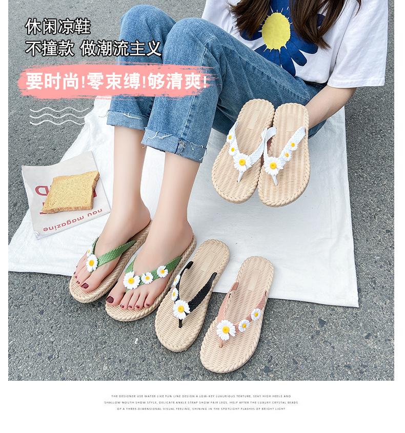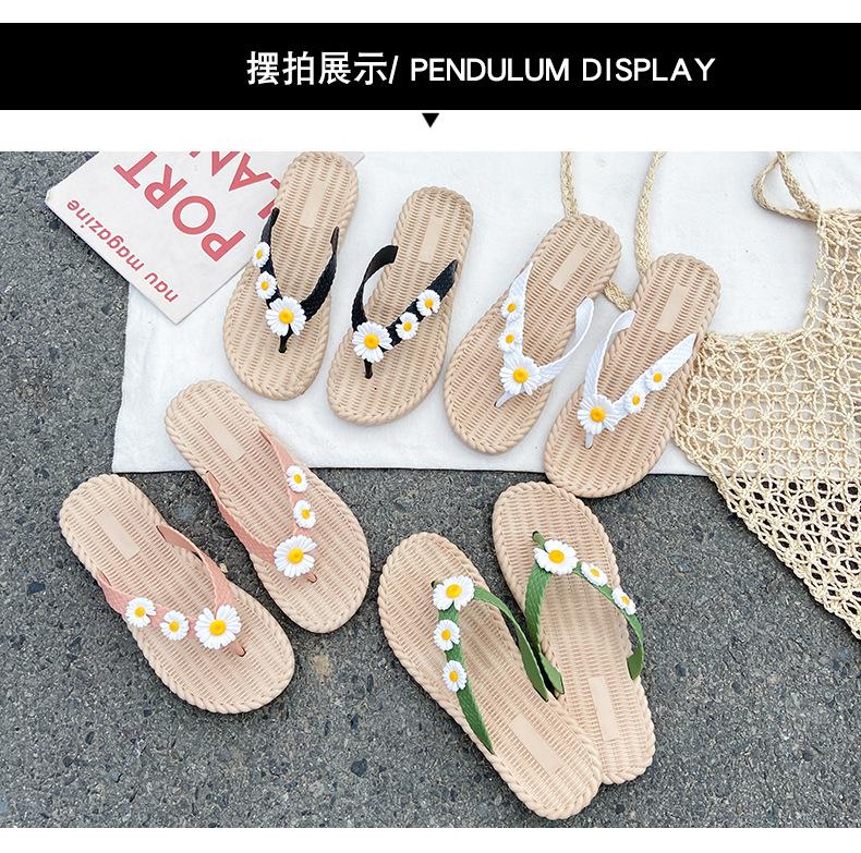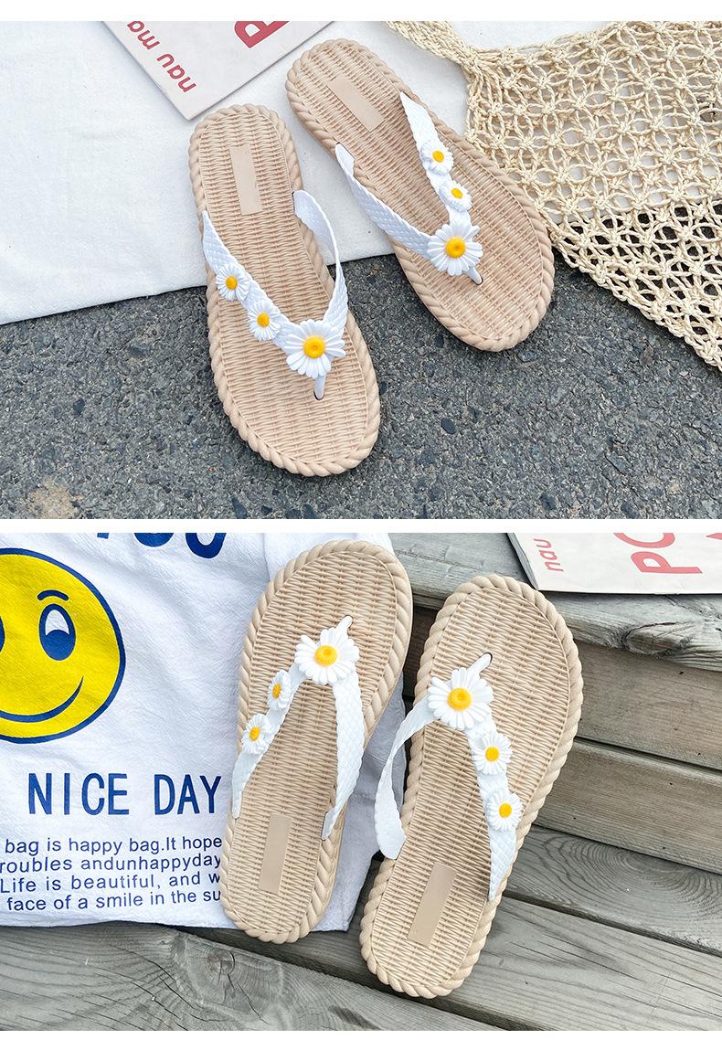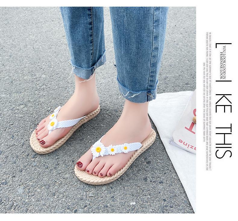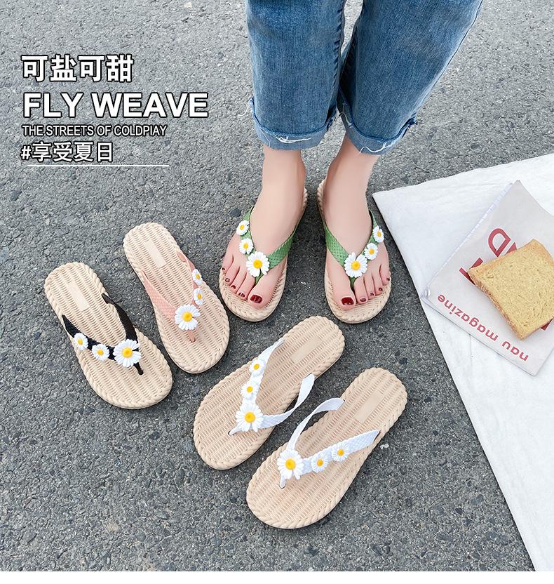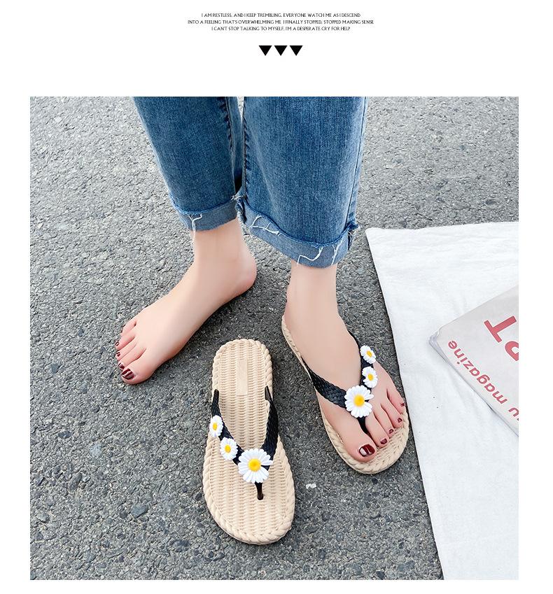 Nuevas chanclas de verano de tres flores para mujer, ropa exterior de estilo coreano, sandalias y pantuflas planas resistentes al desgaste para mujer para la playa.