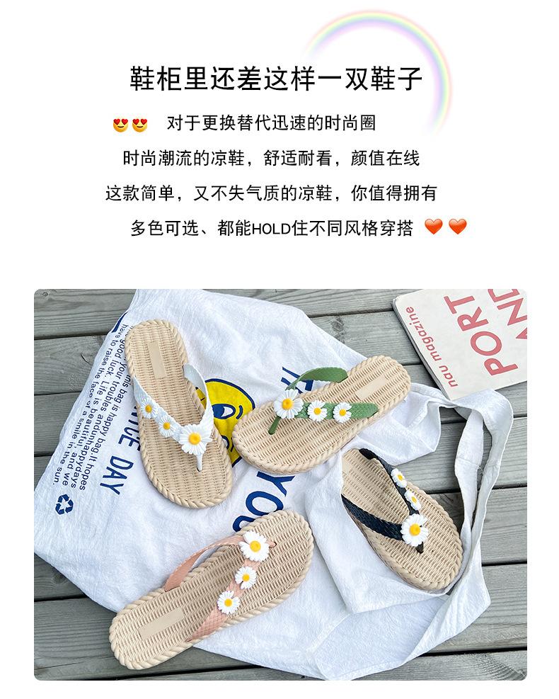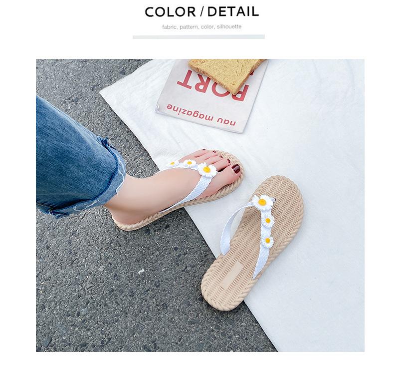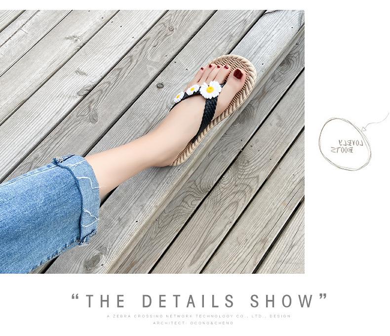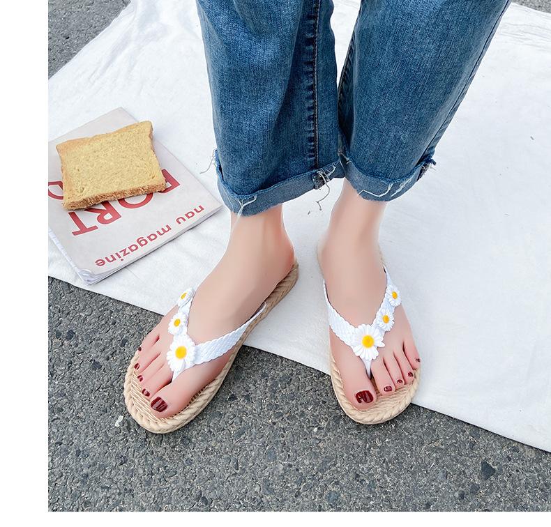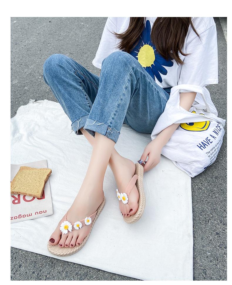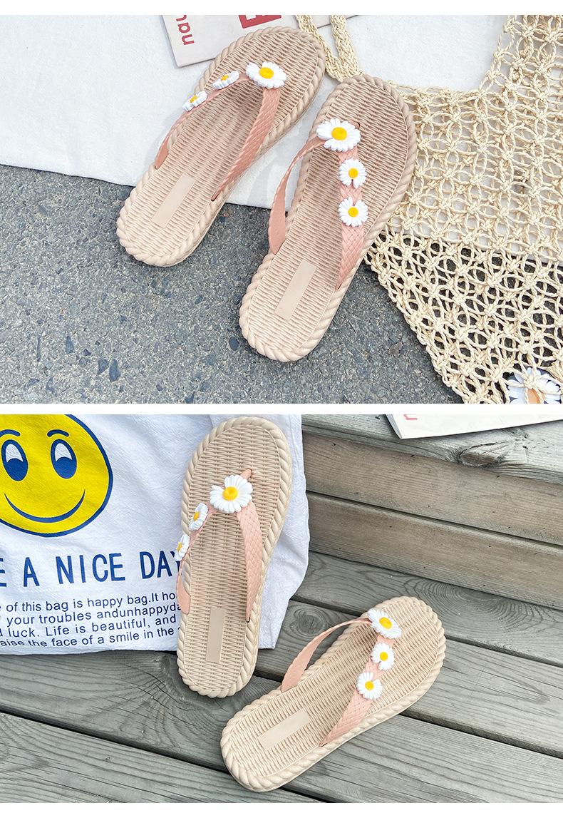 Nuevas chanclas de verano de tres flores para mujer, ropa exterior de estilo coreano, sandalias y pantuflas planas resistentes al desgaste para mujer para la playa.