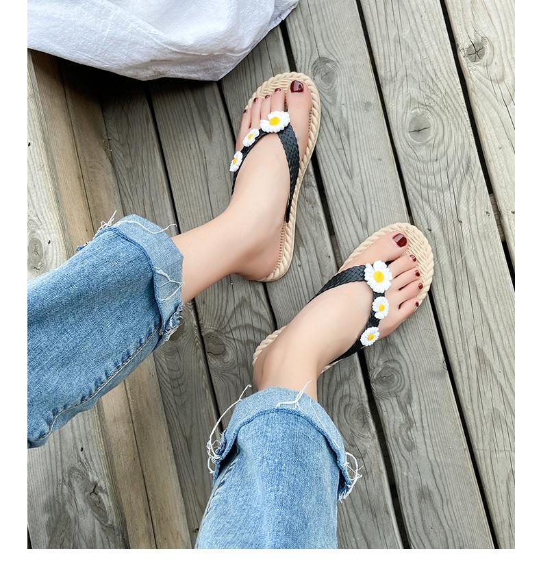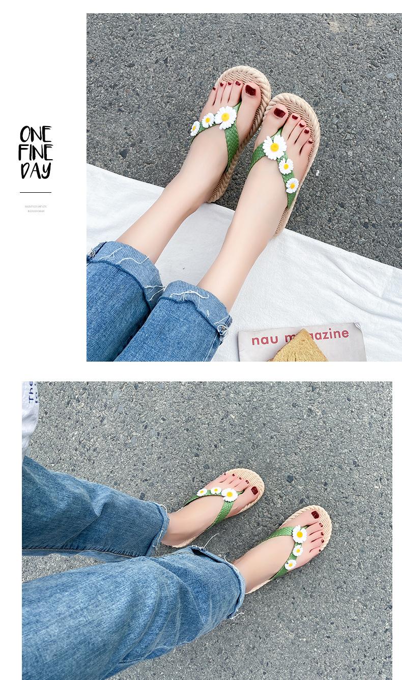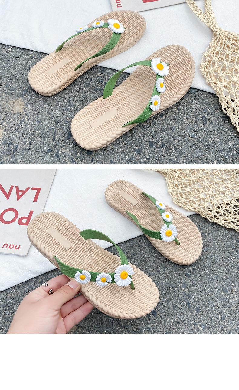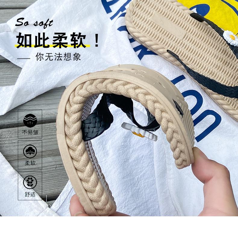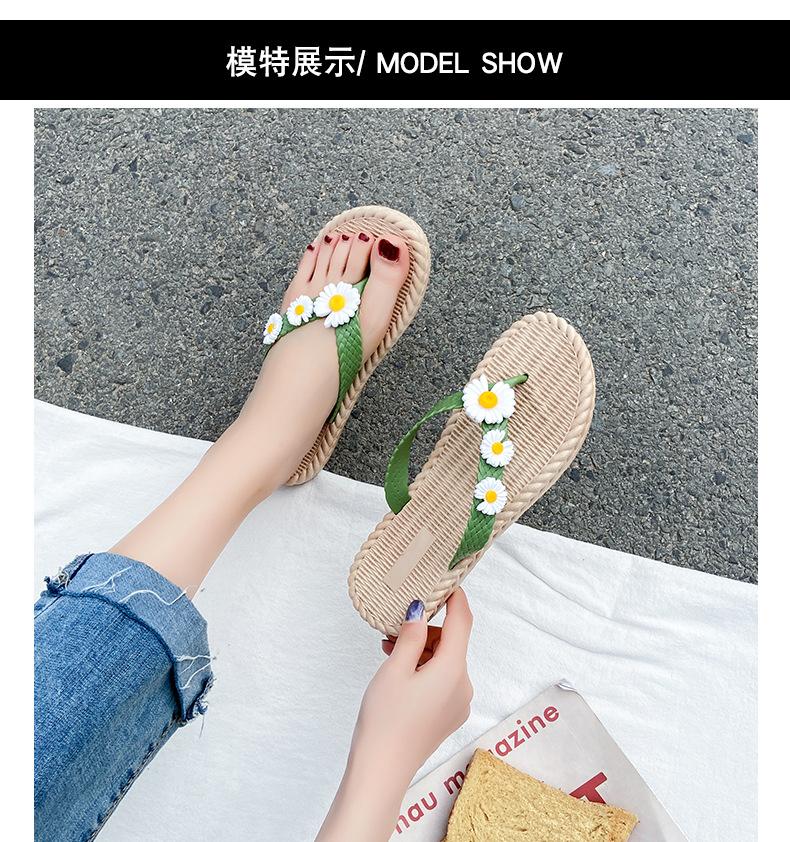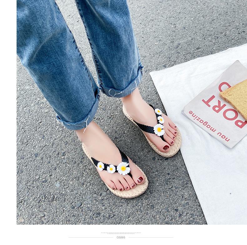 Nuevas chanclas de verano de tres flores para mujer, ropa exterior de estilo coreano, sandalias y pantuflas planas resistentes al desgaste para mujer para la playa.