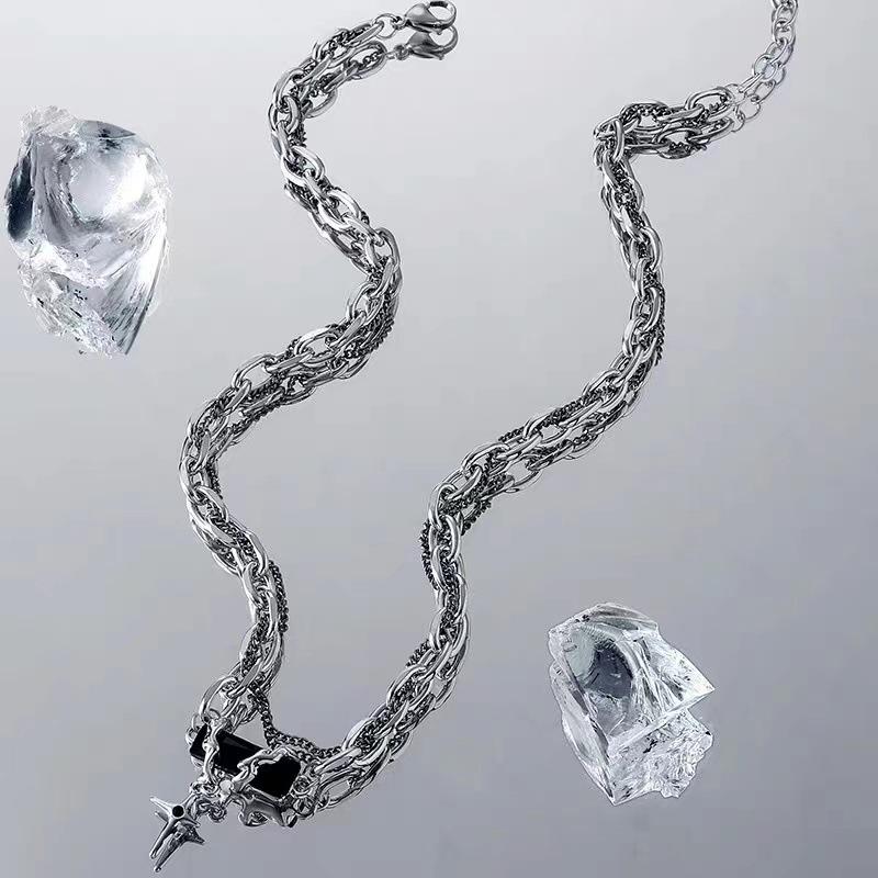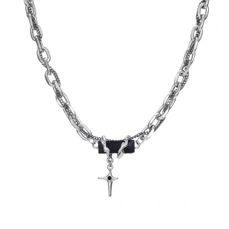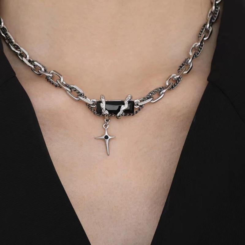 Nuevo nicho de accesorios collar de punto de cruz con gema negra enrollada para hombre y mujer cadena de clavícula de acero titanio marea