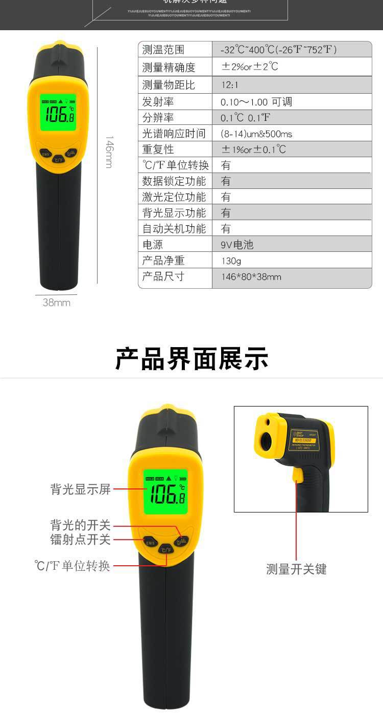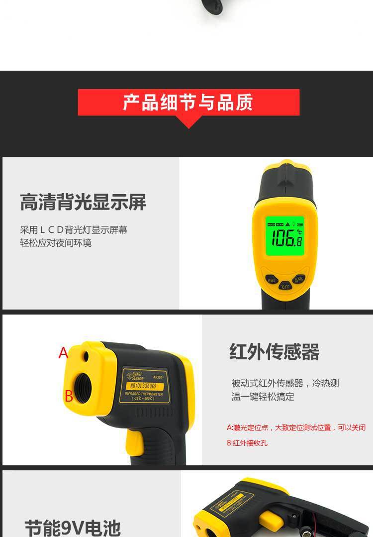 Termómetro infrarrojo Hima AR300, termómetro de mano para cocina, aire acondicionado, temperatura del agua, temperatura del aceite.