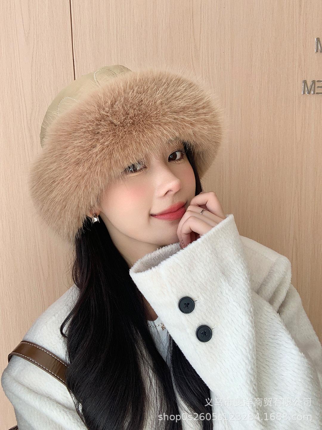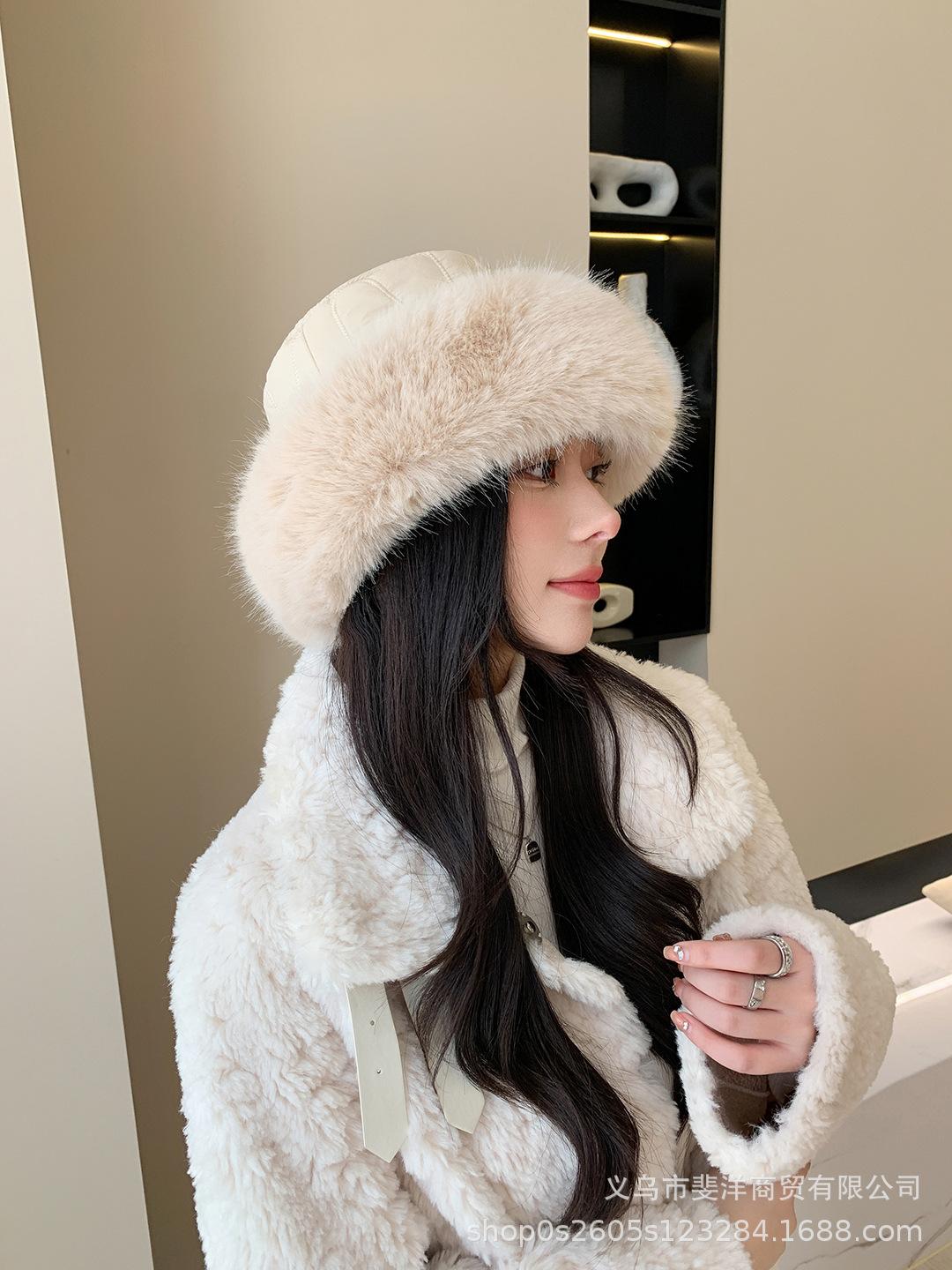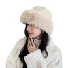Sombrero de pescador de invierno de felpa de piel sintética de ala corta para mujer, noreste, cálido, resistente al viento, para cabeza grande, protección para las orejas, grueso, estilo mongol