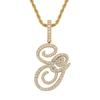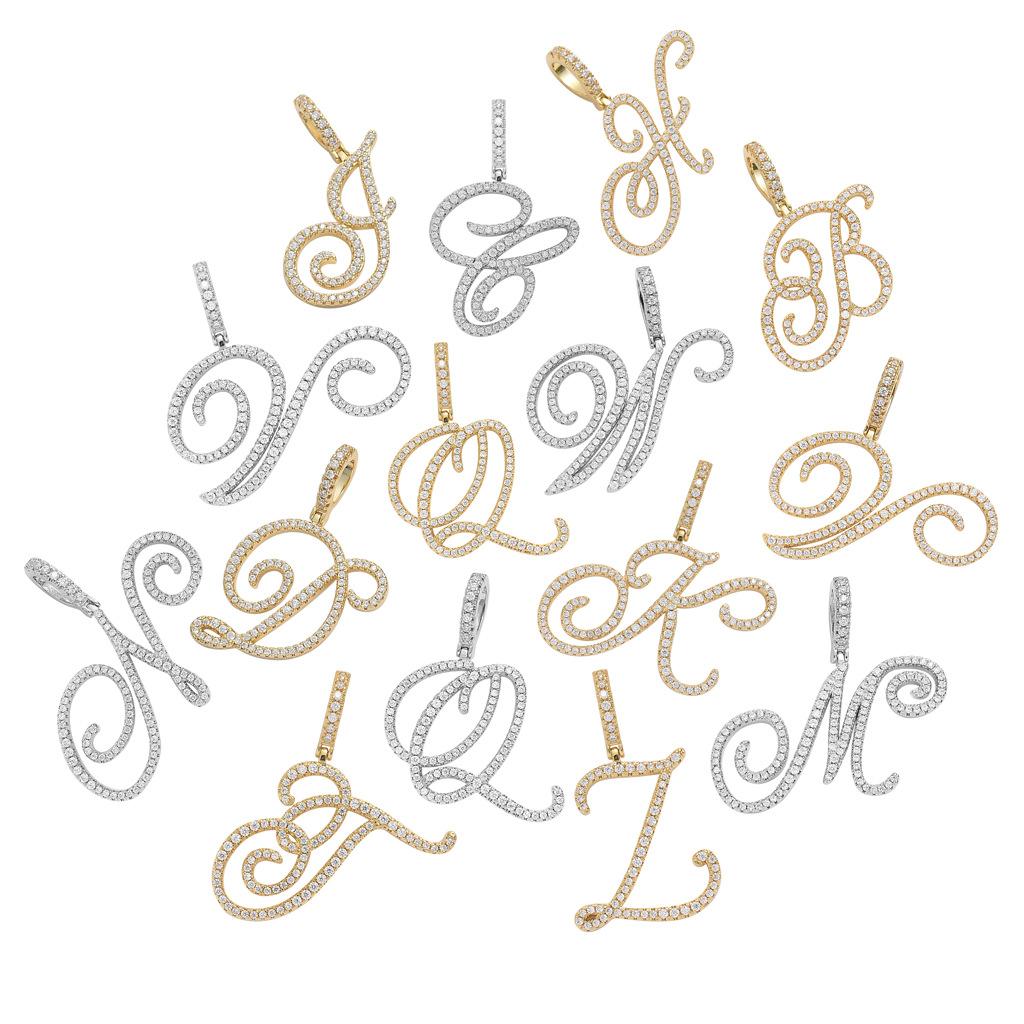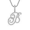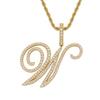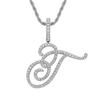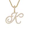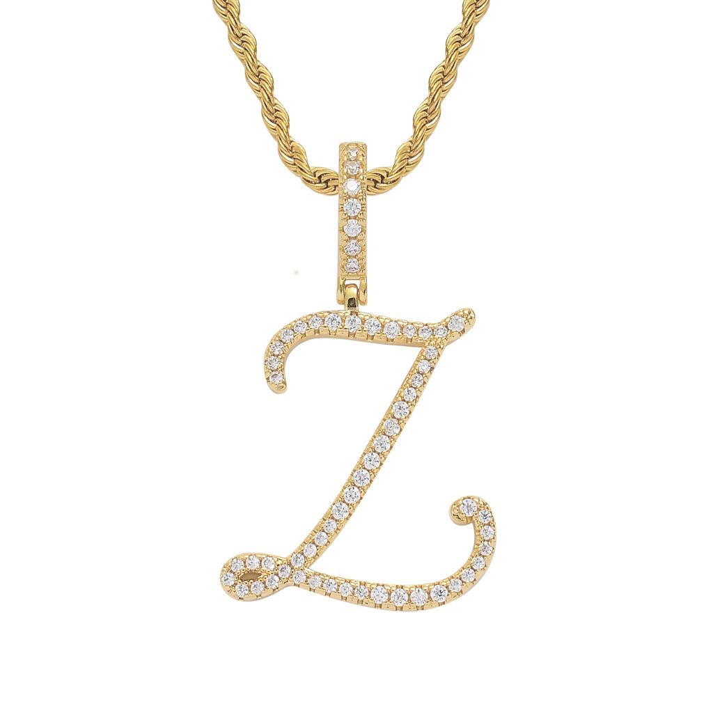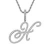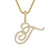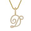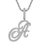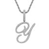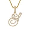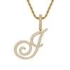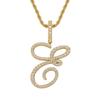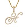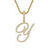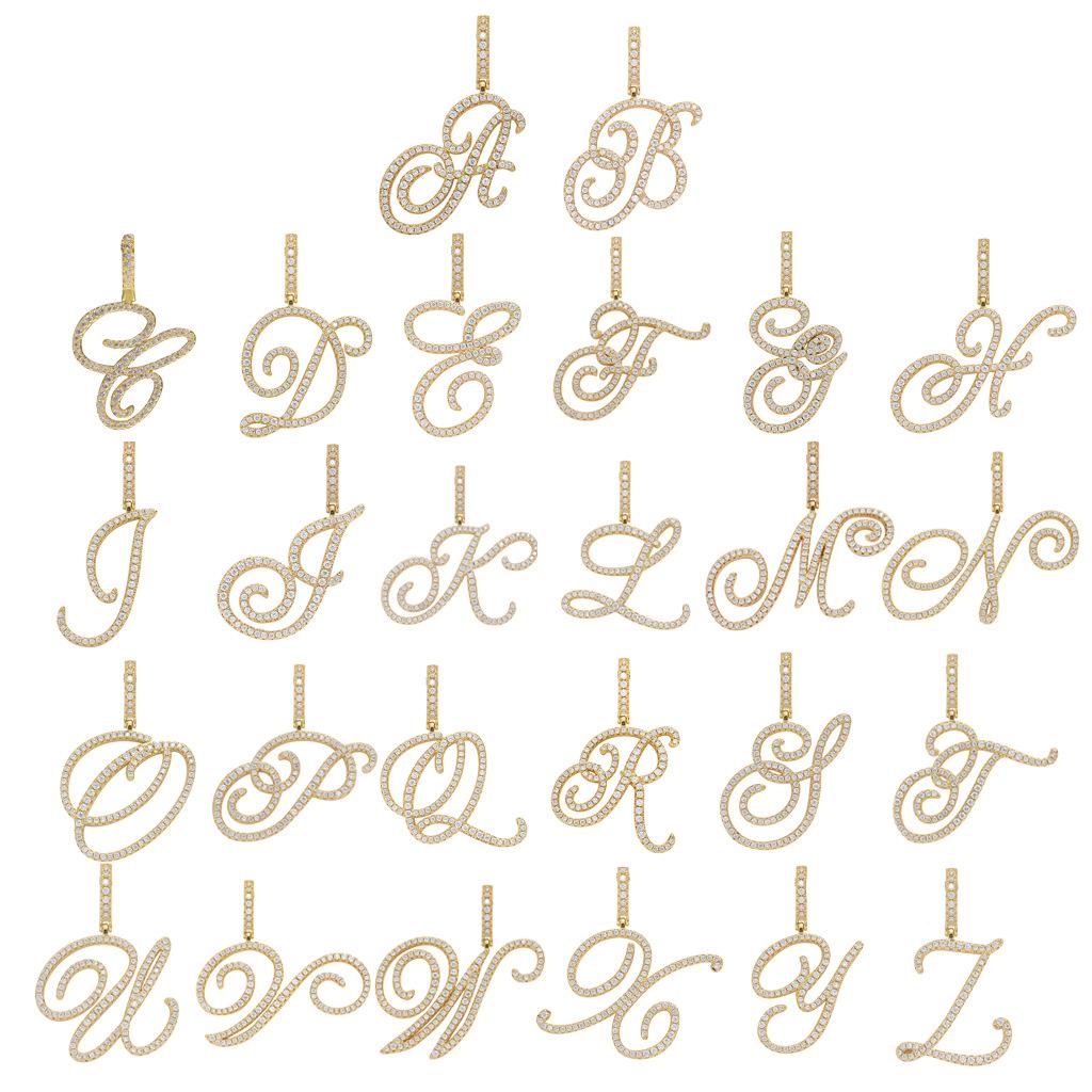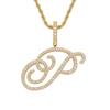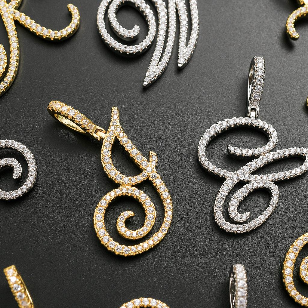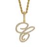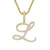 Colgante con letra cursiva inglesa popular europea y americana, 26 letras inglesas con microincrustaciones de circonita, collar de hip-hop para hombre