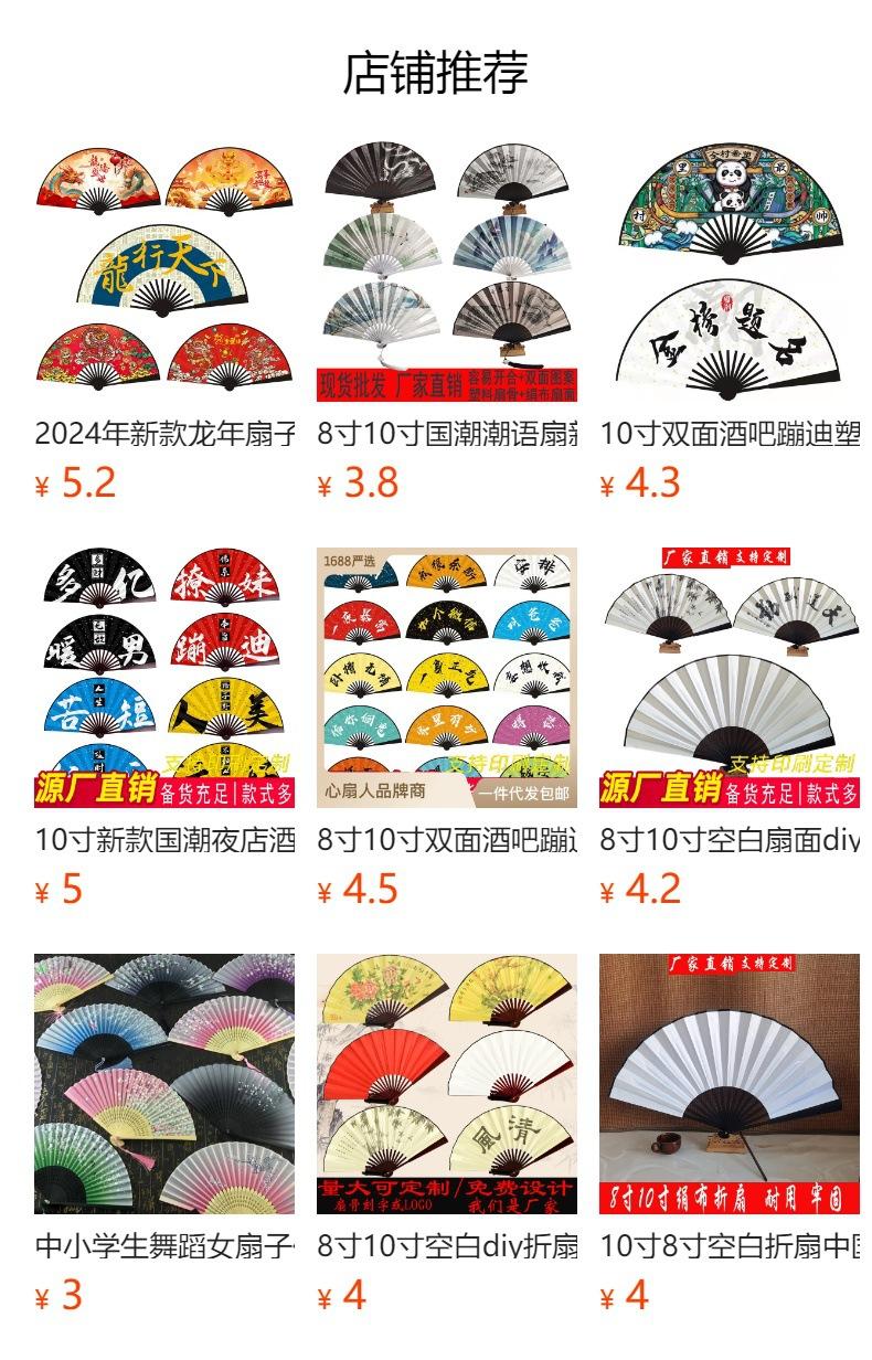 Abanico plegable de barra KTV disco de celebridad en línea directo de fábrica, abanico de puesto, abanico de moda nacional de doble cara de 10 pulgadas para club nocturno de hombres, venta al por mayor