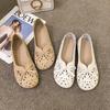 Sandalias de mujer de cuero suave con agujeros planos, estilo verano 2023, sin cordones, con suela suave y calada