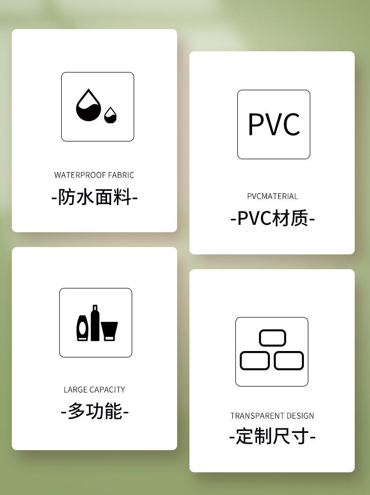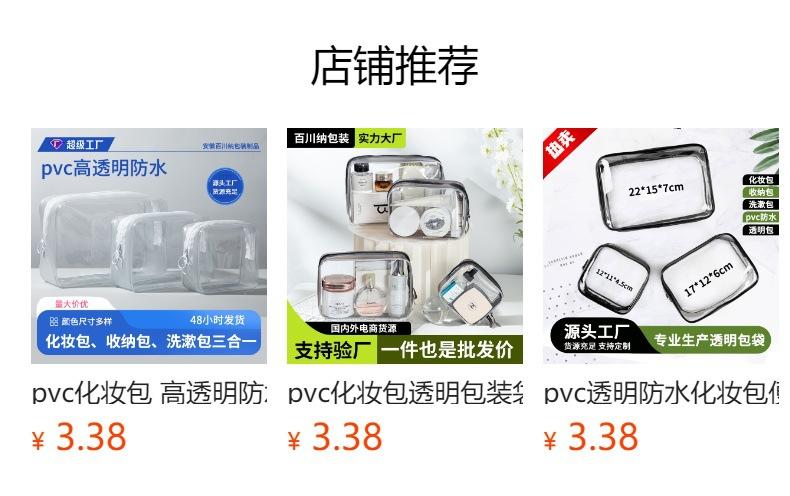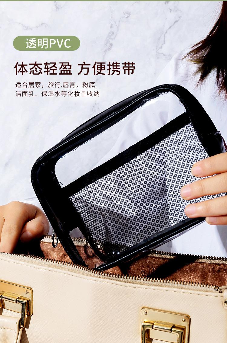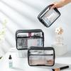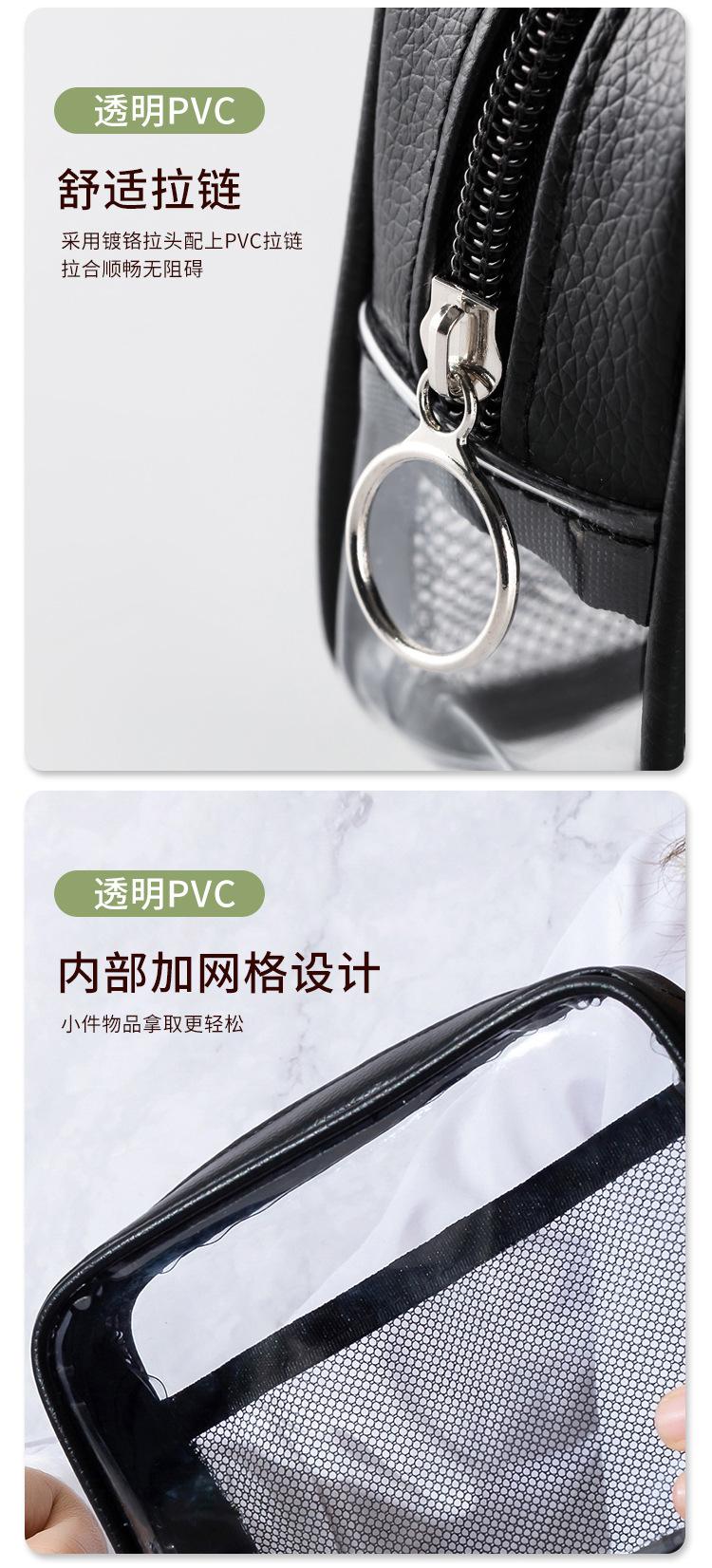 Compra Neceser transparente de PU de tres piezas para cosméticos, gran capacidad, de PVC, portátil, impermeable, para viaje, color negro al por mayor en Joom.pro