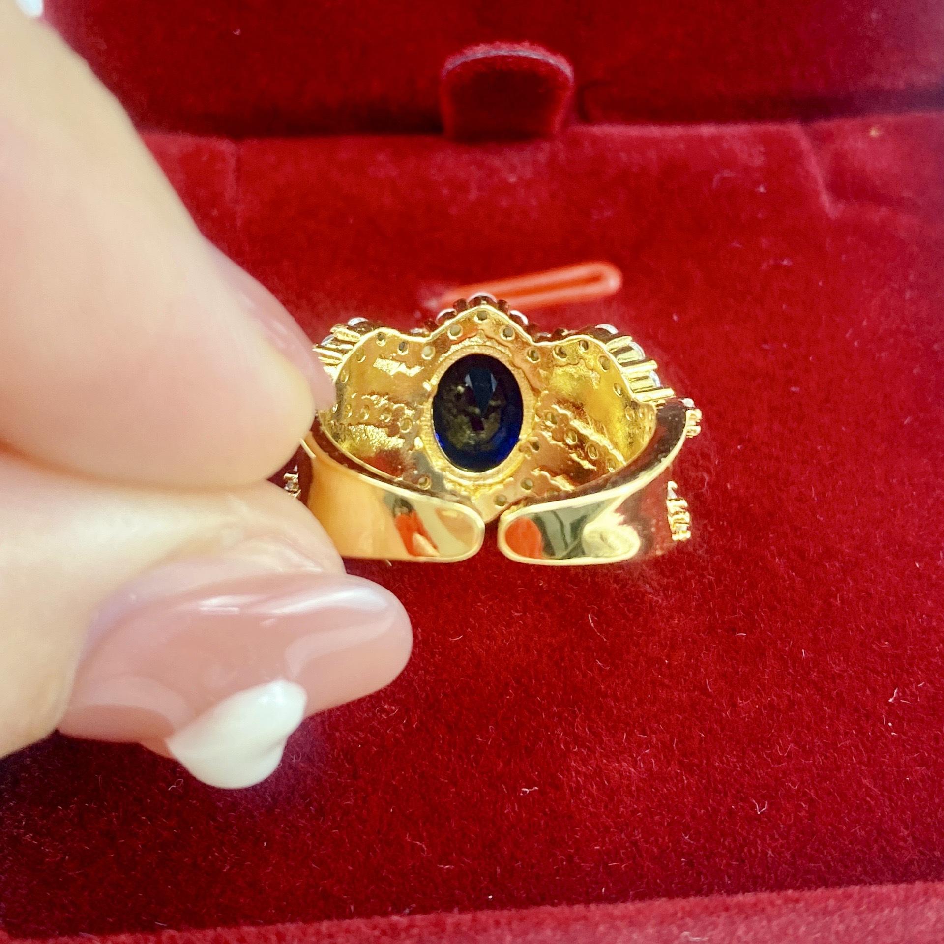 Nuevo Anillo Zafiro Azul Real Artesanía Italiana para Mujer Olas de Agua de Maupassant Alrededor del Mar Tranquilo