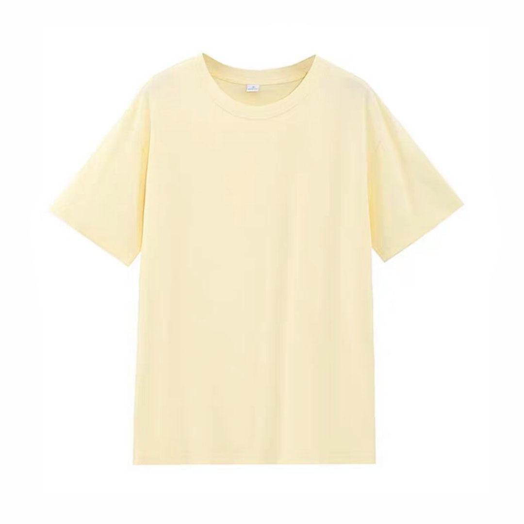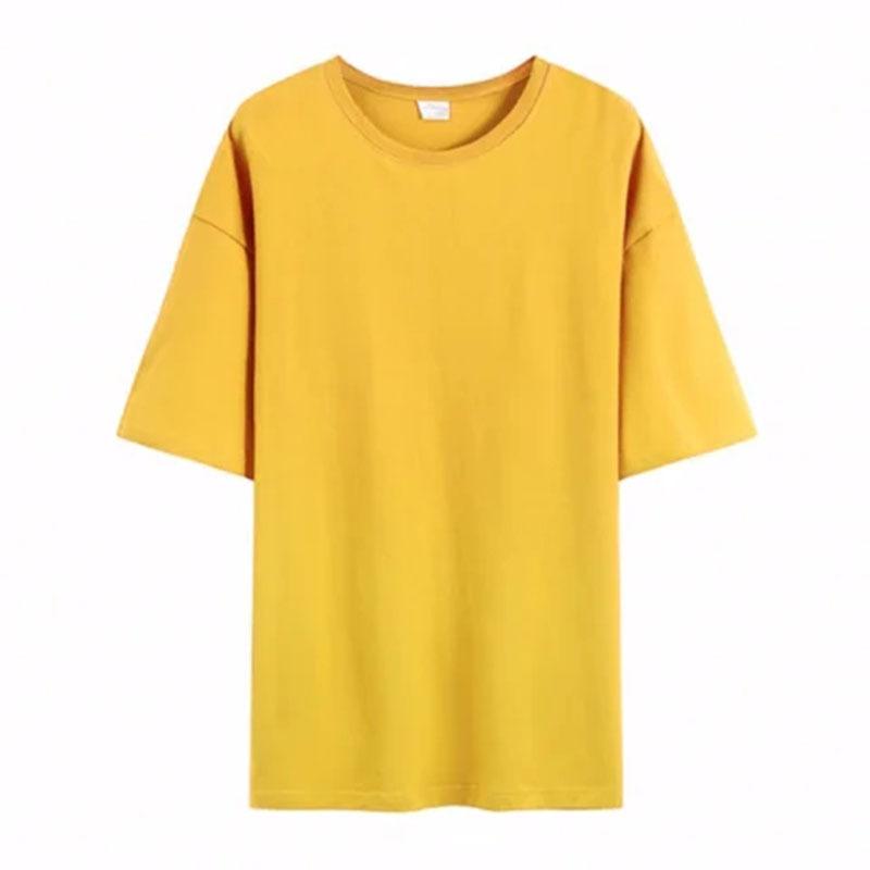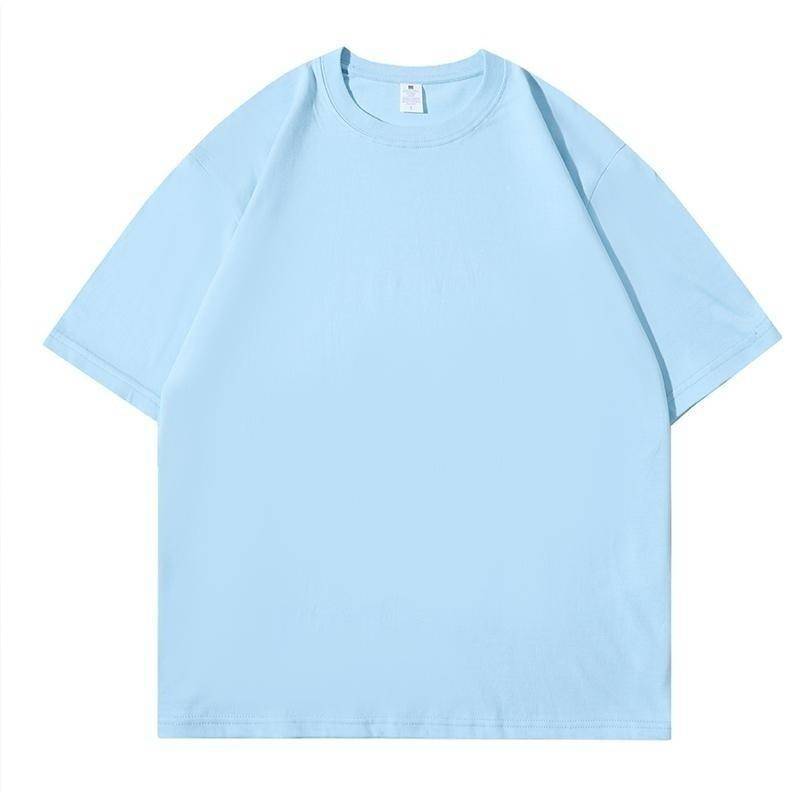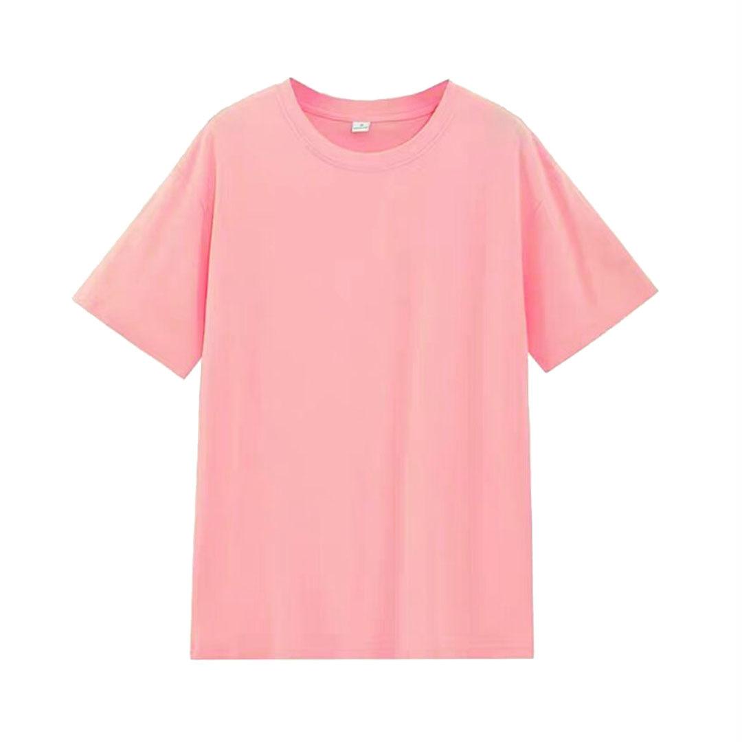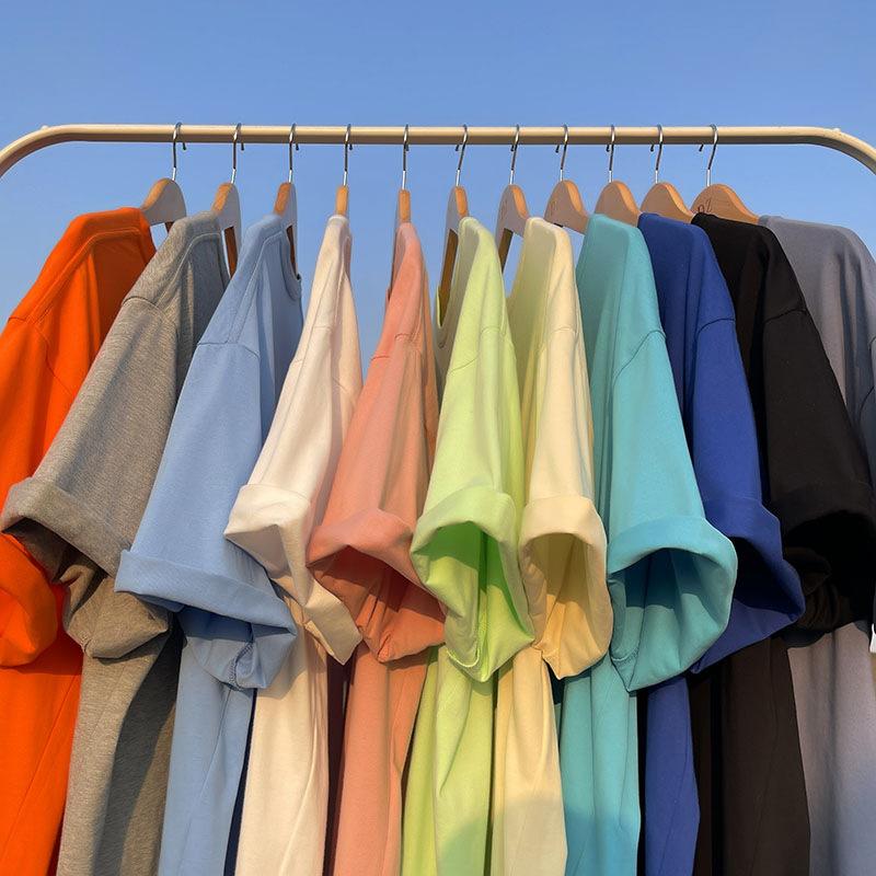 Camiseta de cuello redondo color algodón de azúcar de 210 g para mujer, novedad de verano 2024, top holgado de media manga de talla grande y manga corta para mujer