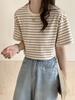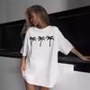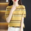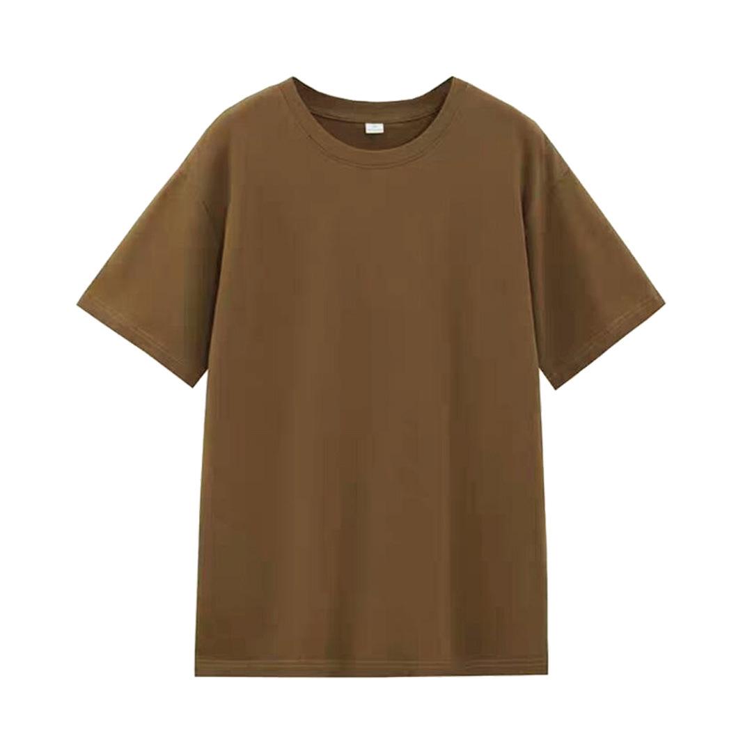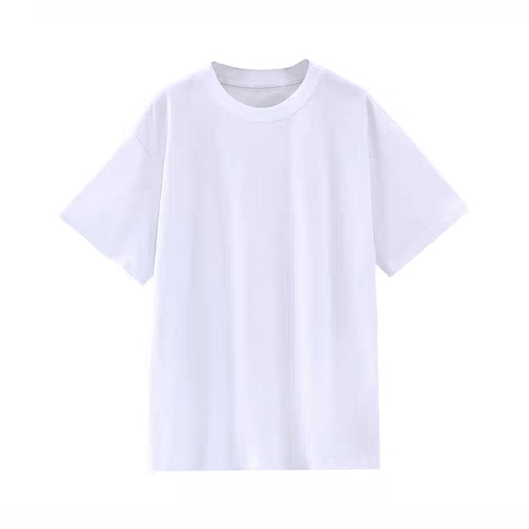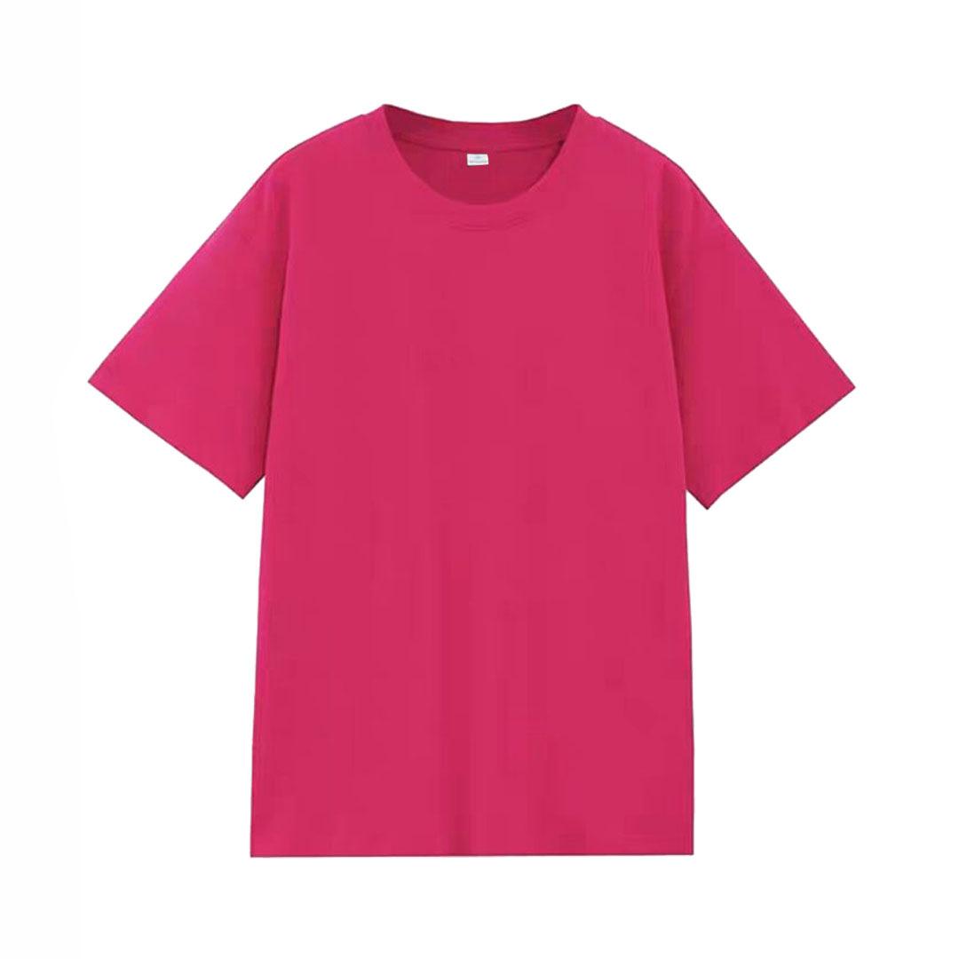 Camiseta de cuello redondo color algodón de azúcar de 210 g para mujer, novedad de verano 2024, top holgado de media manga de talla grande y manga corta para mujer