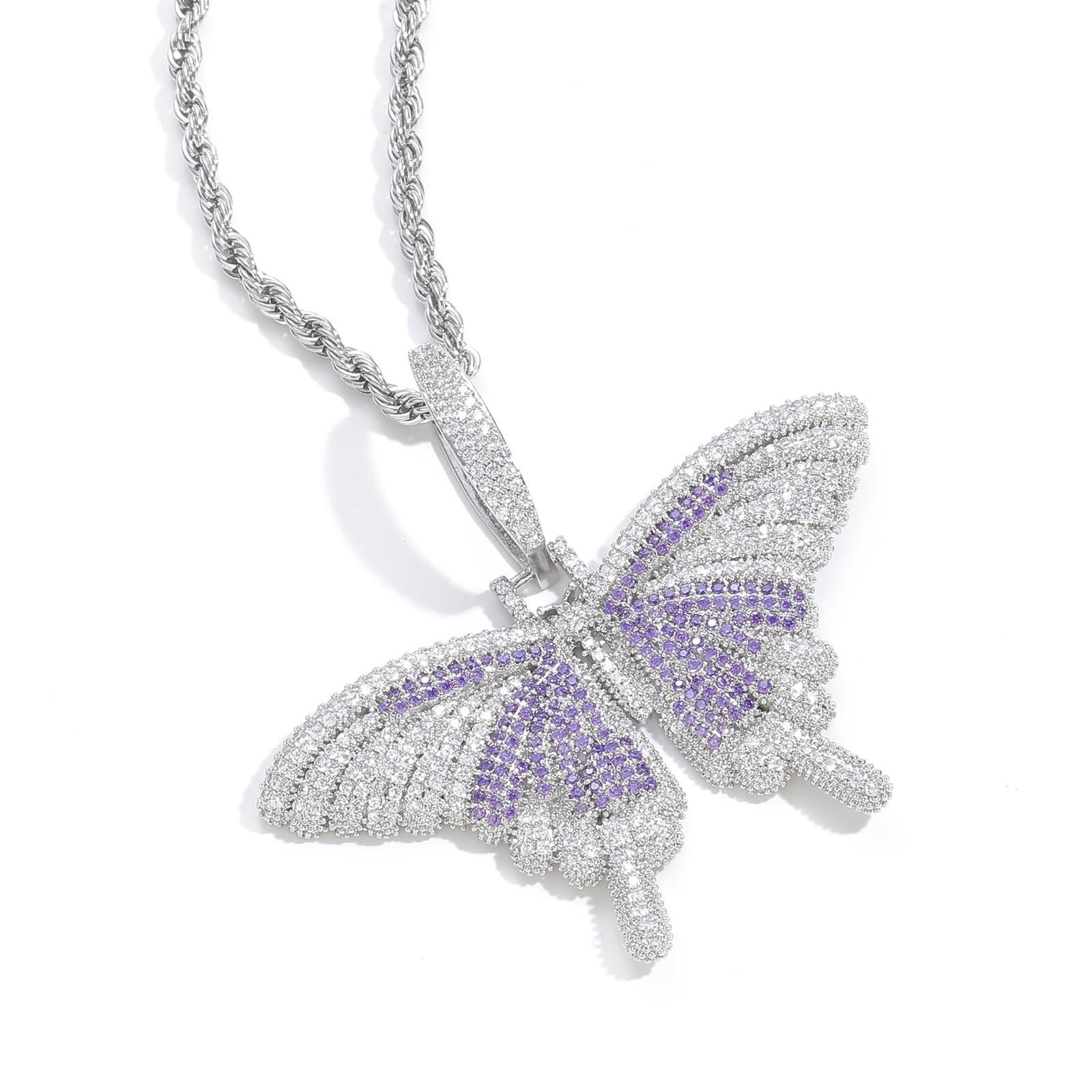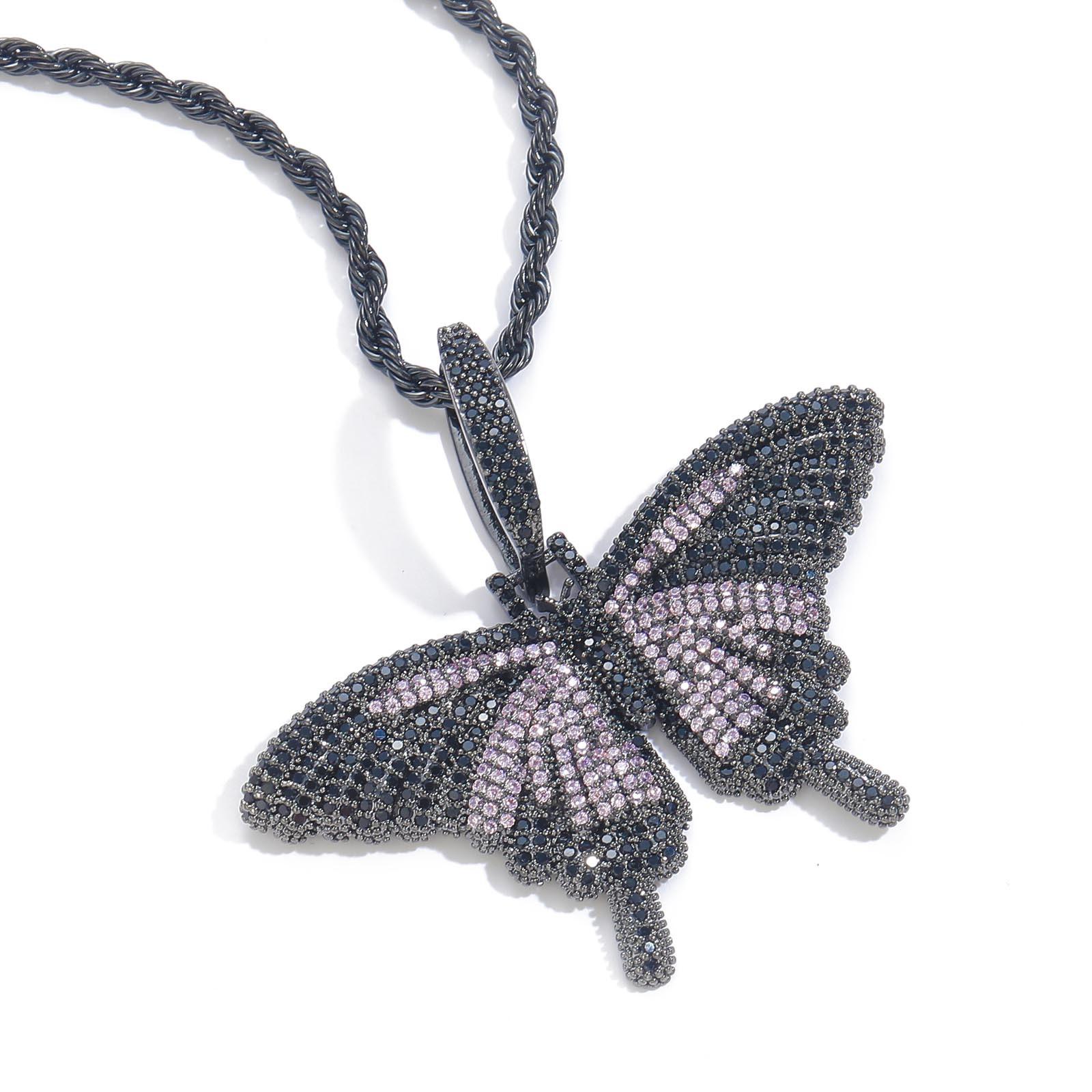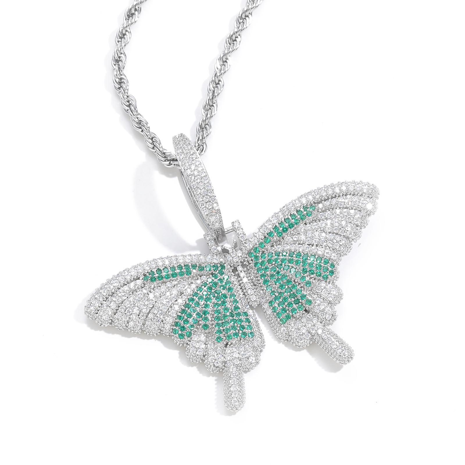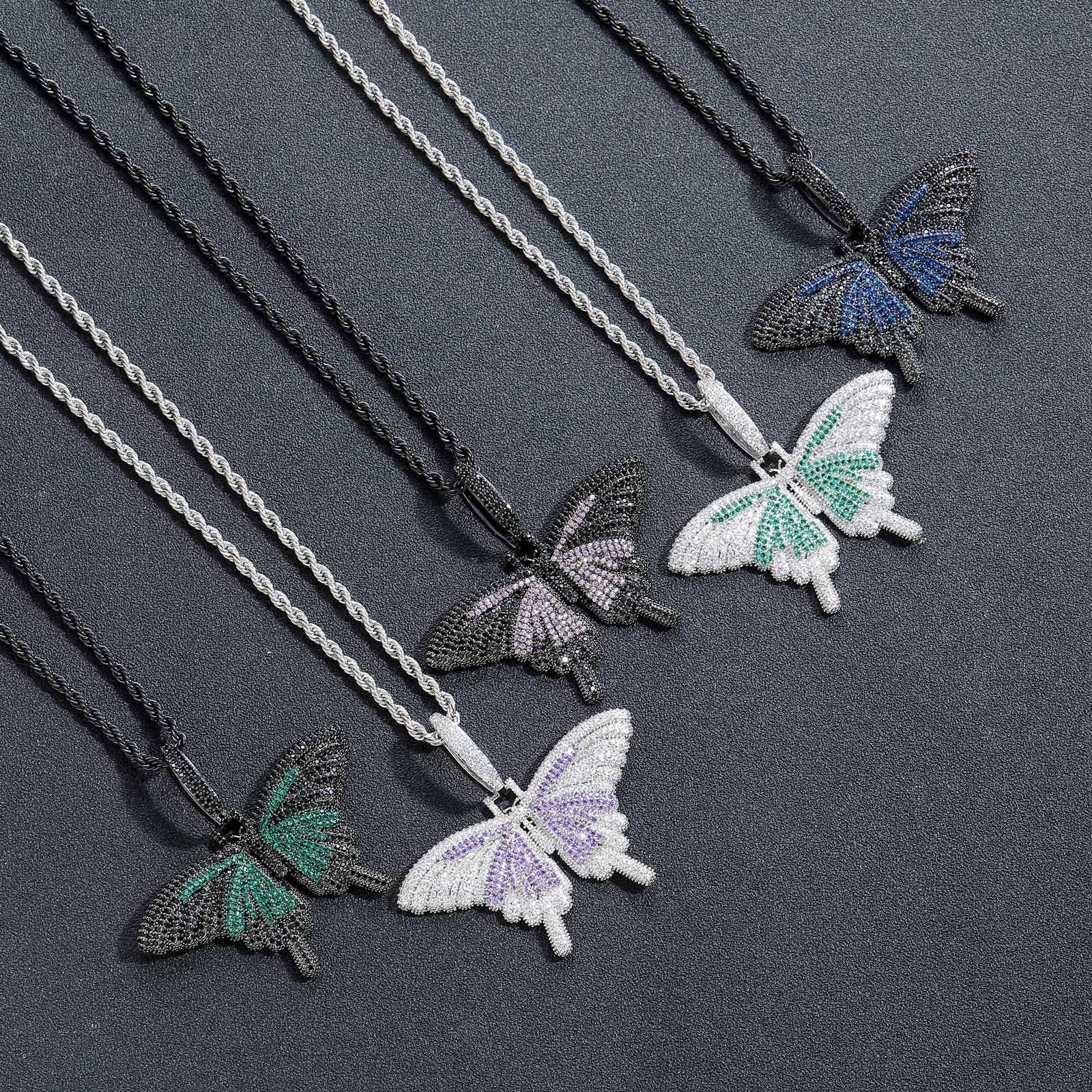 Colgante de mariposa de tamaño pequeño de hip hop europeo y americano con microincrustaciones de circonita colorida, tendencia de personalidad para hombres y mujeres, collar de hip hop para parejas
