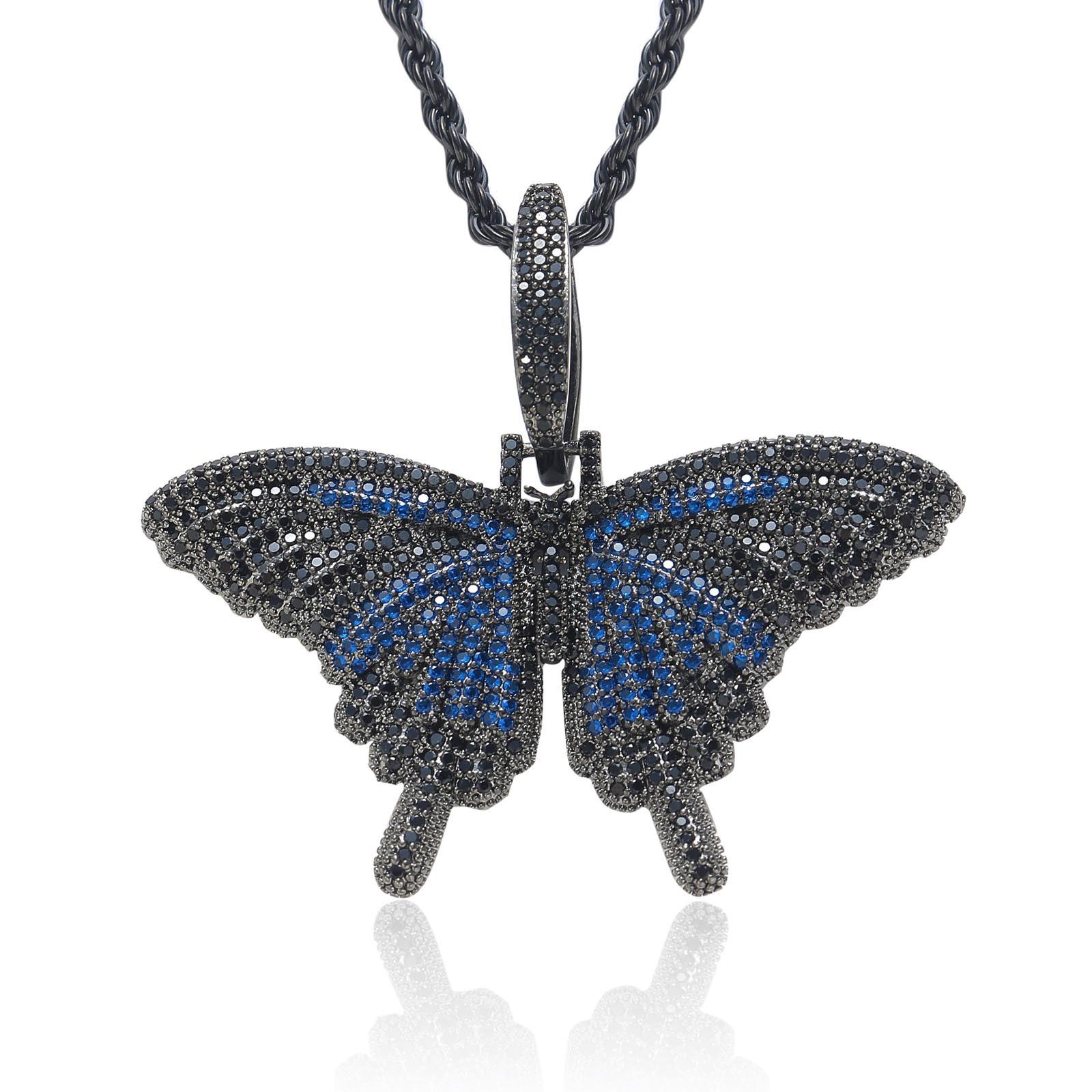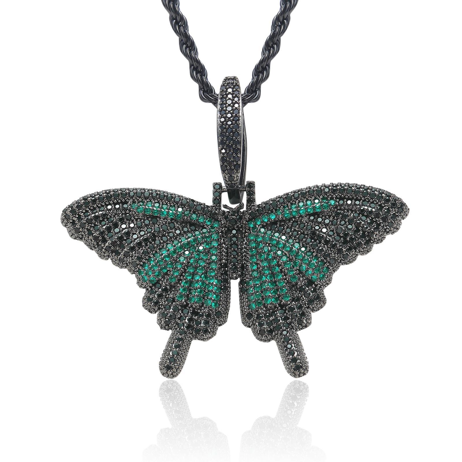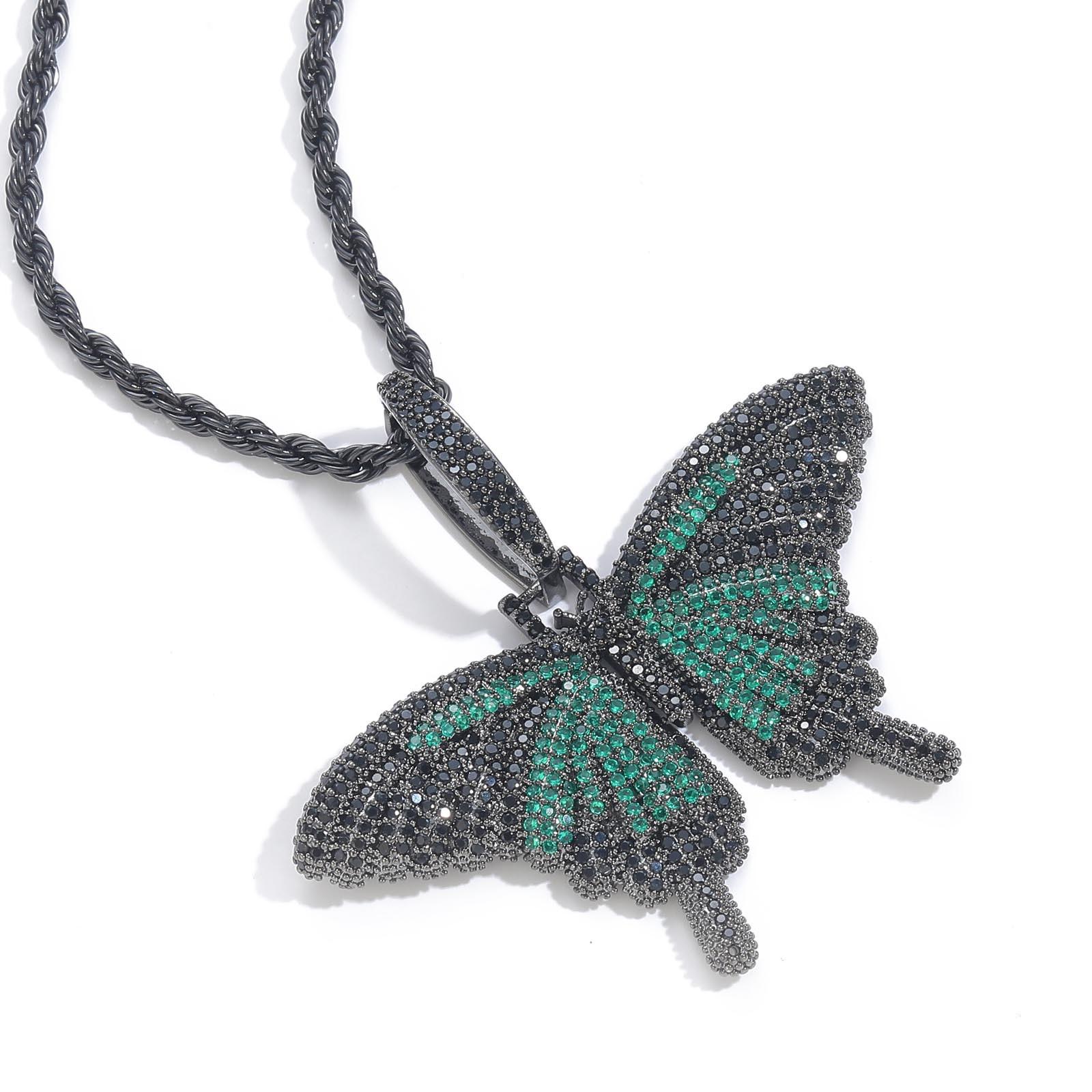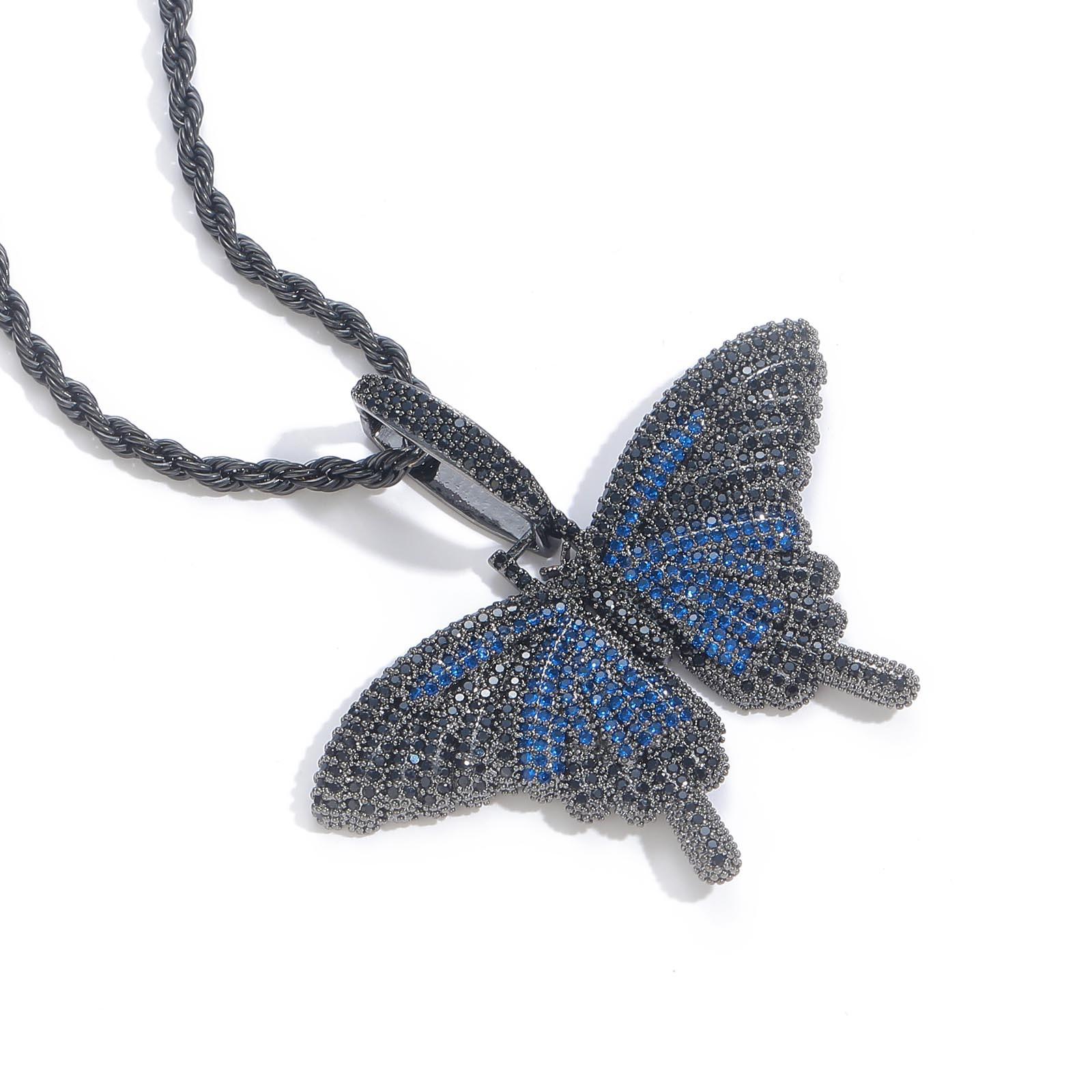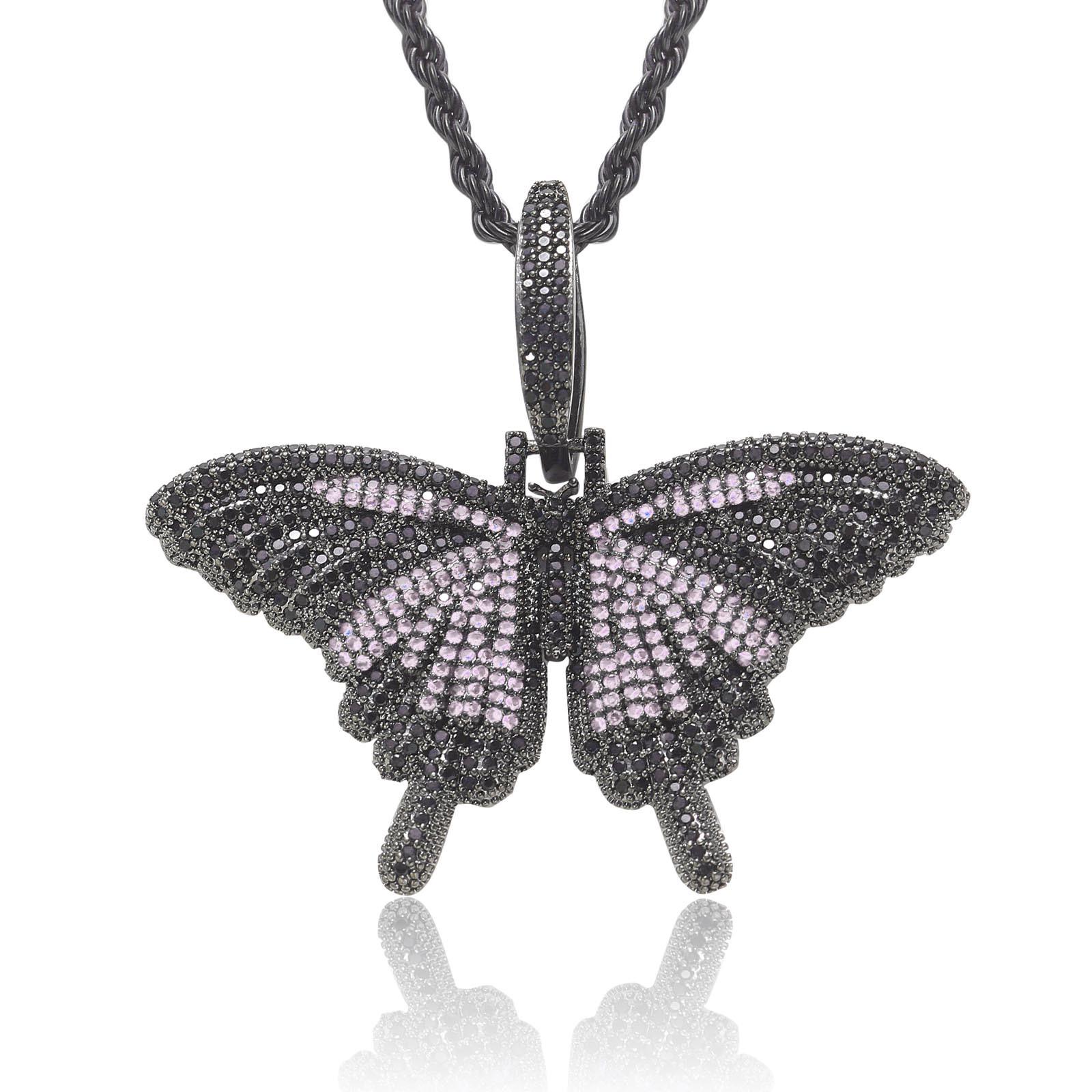 Colgante de mariposa de tamaño pequeño de hip hop europeo y americano con microincrustaciones de circonita colorida, tendencia de personalidad para hombres y mujeres, collar de hip hop para parejas