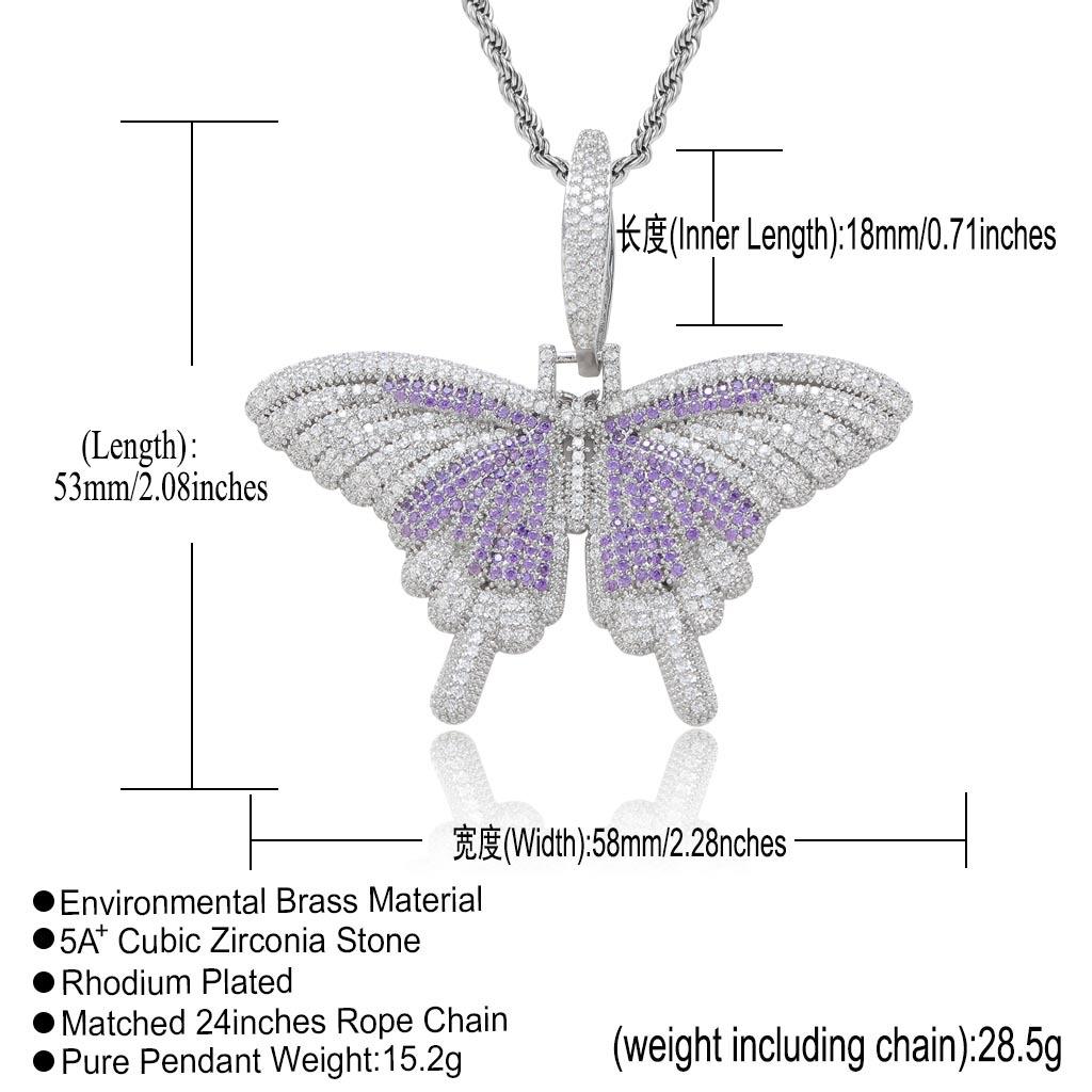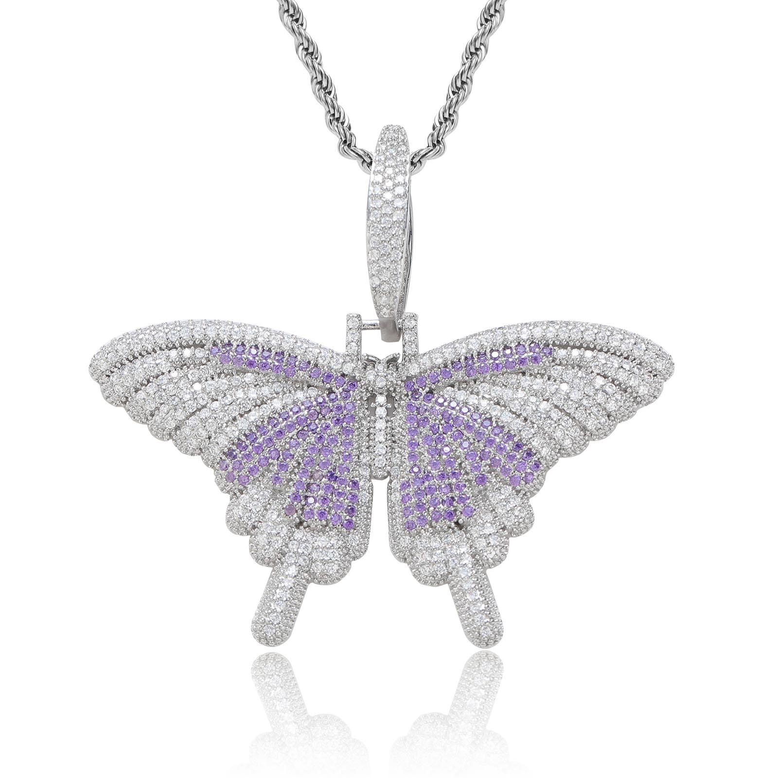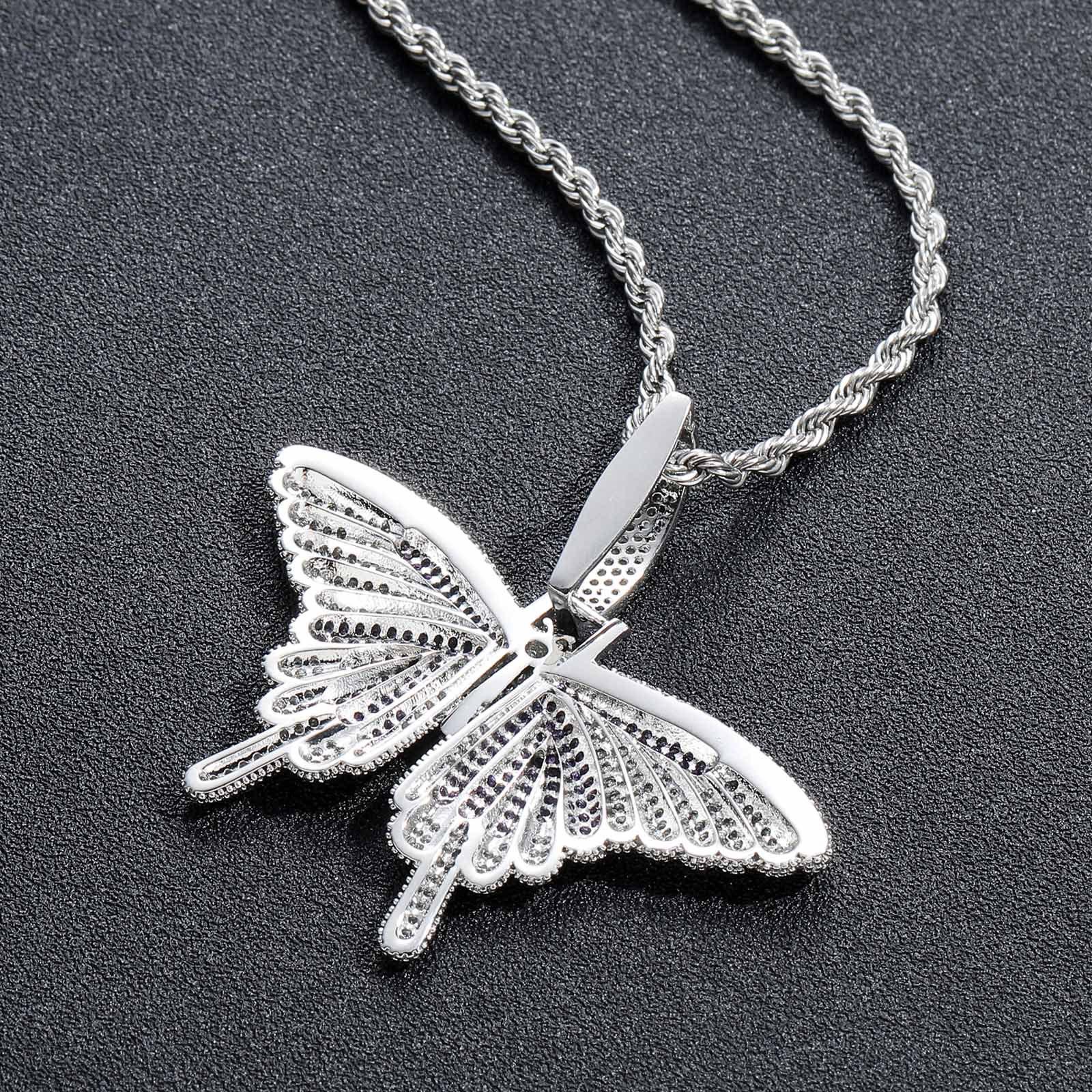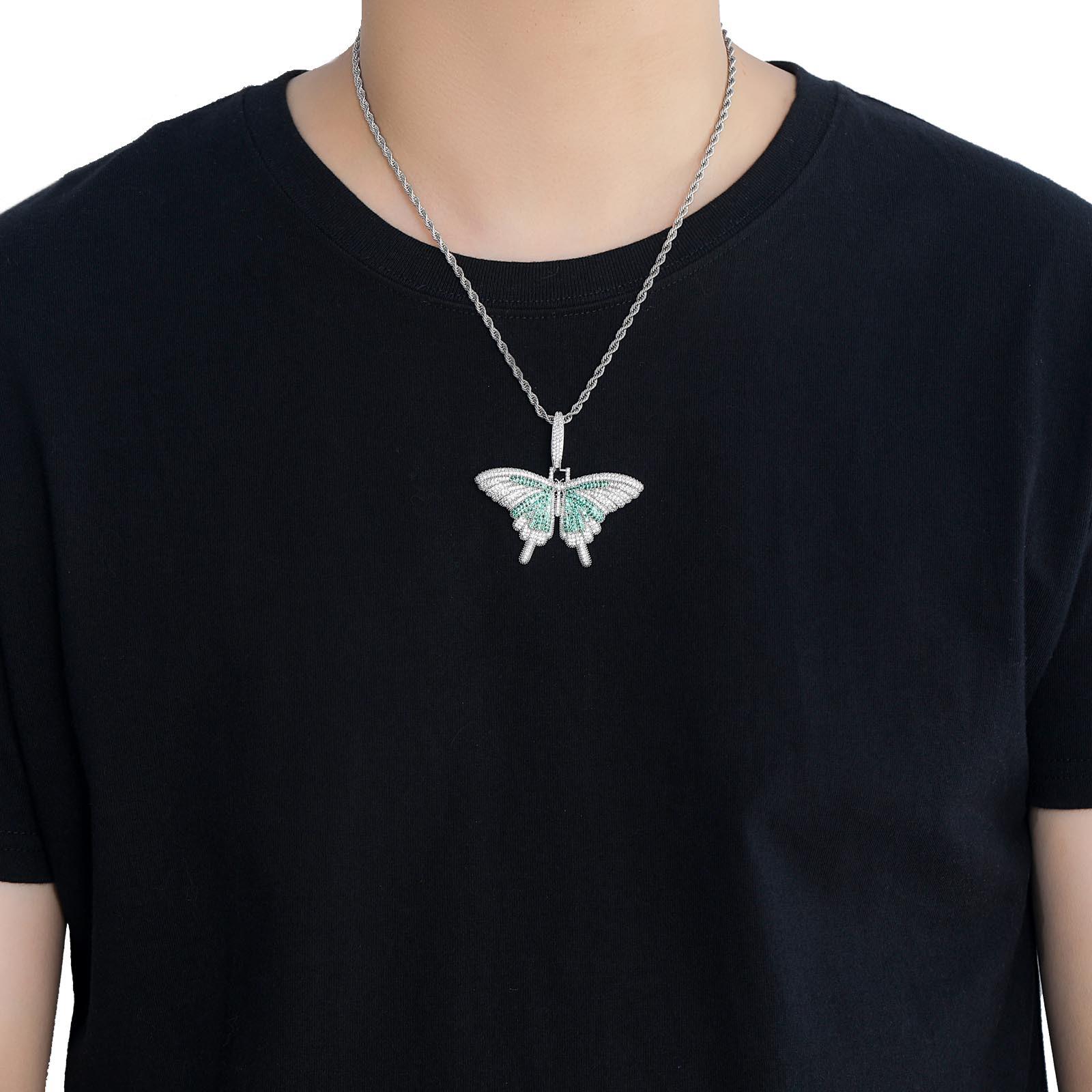 Colgante de mariposa de tamaño pequeño de hip hop europeo y americano con microincrustaciones de circonita colorida, tendencia de personalidad para hombres y mujeres, collar de hip hop para parejas