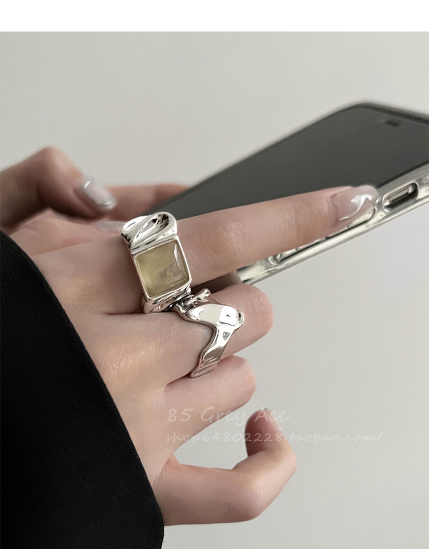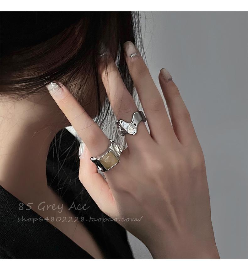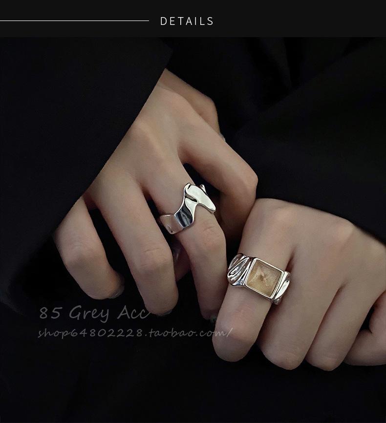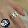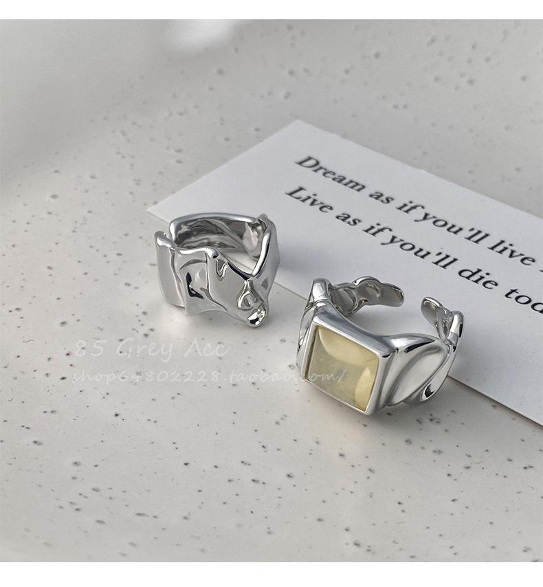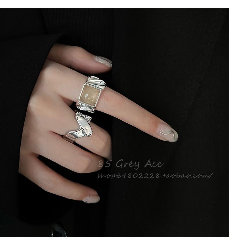 Anillo Cuadrado Estilo Coreano Plata S925 Chapada para Mujer Moda Vintage Geométrico en Forma de V Anillo Abierto Irregular Anillo de Dedo Ins