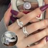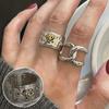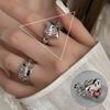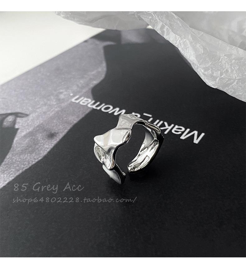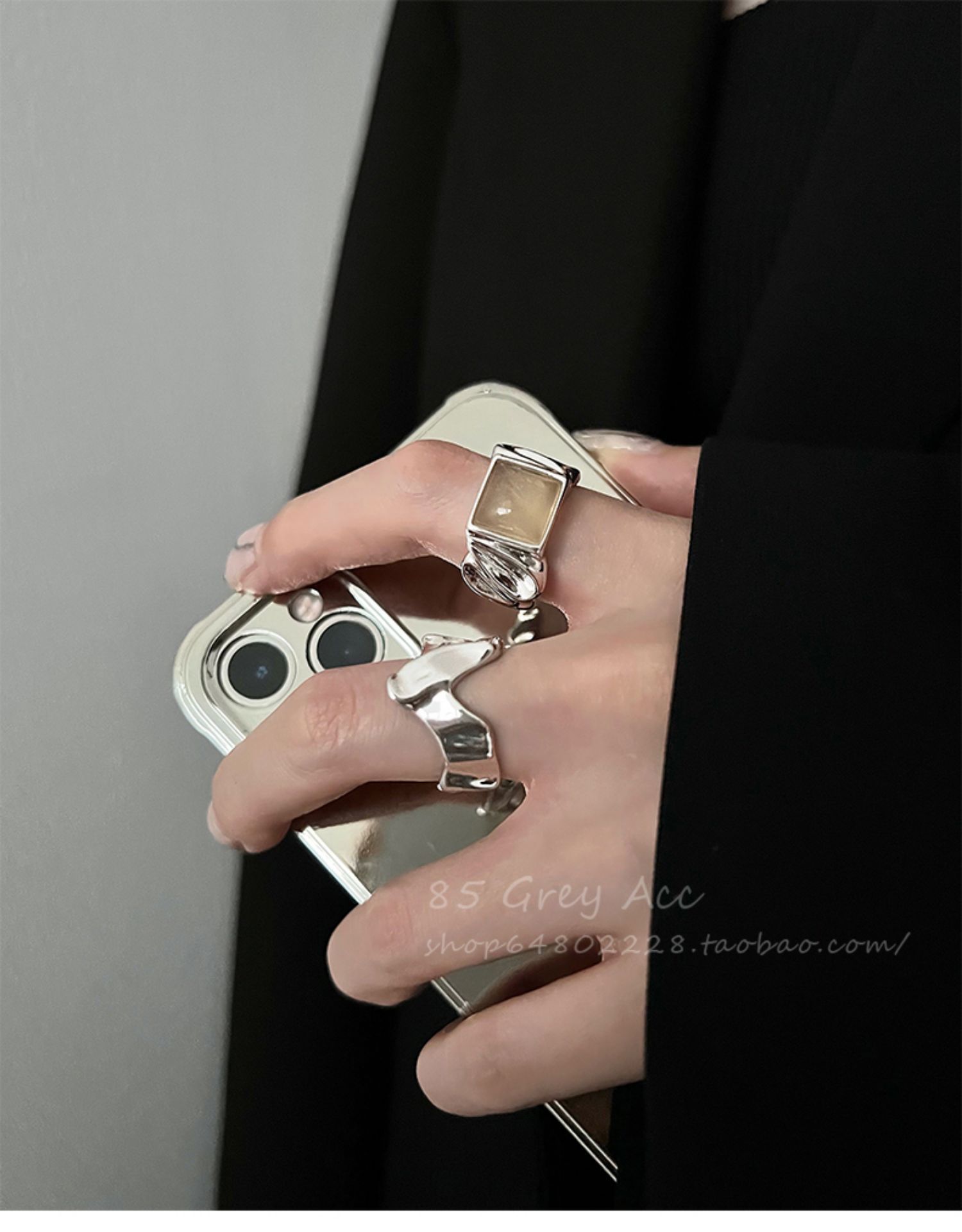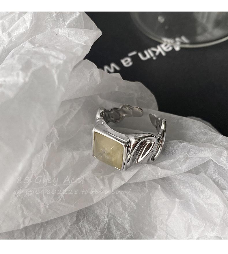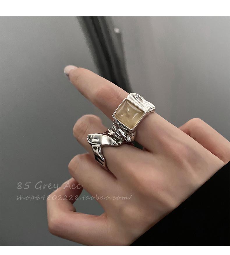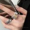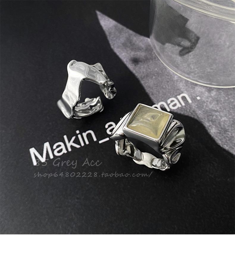 Anillo Cuadrado Estilo Coreano Plata S925 Chapada para Mujer Moda Vintage Geométrico en Forma de V Anillo Abierto Irregular Anillo de Dedo Ins