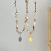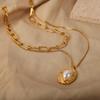 Collar de acero y titanio con colgante ovalado, diseño de viento, con incrustaciones de perla de imitación y doble capa de joyería de nicho retro británica.