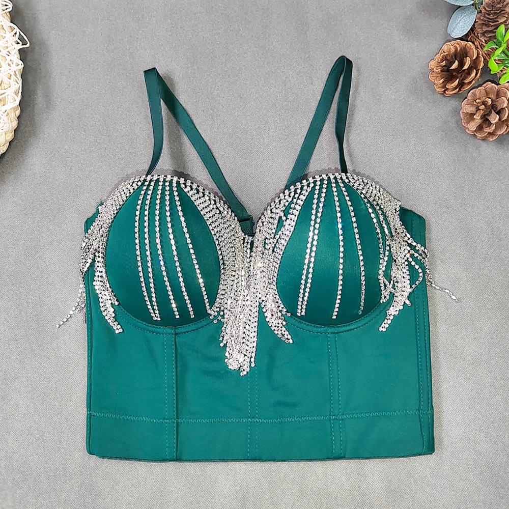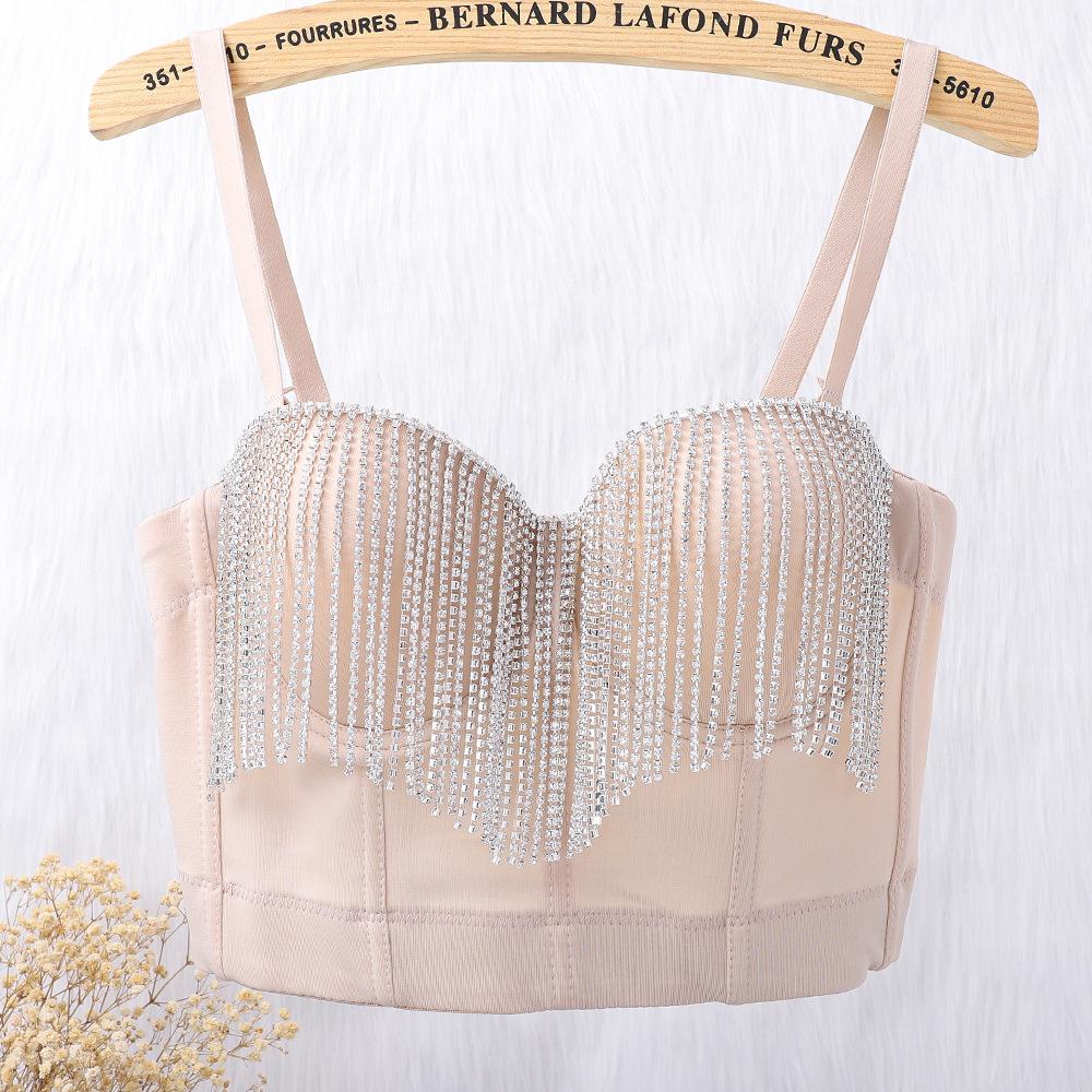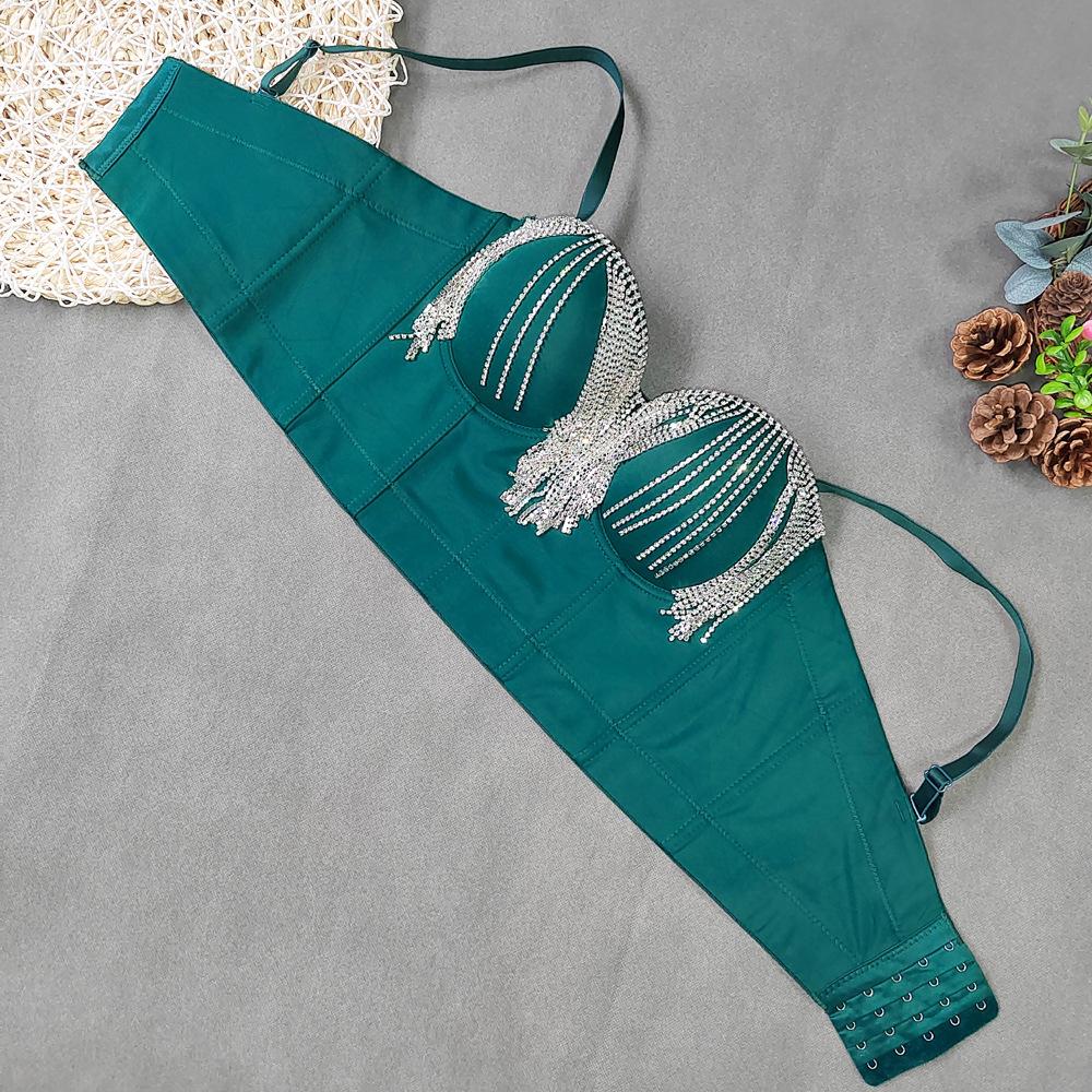 Ropa interior moldeadora con cadena de diamantes y borlas para danza del vientre, tirantes cortos sin espalda, ropa para actuaciones escénicas, fabricantes al por mayor