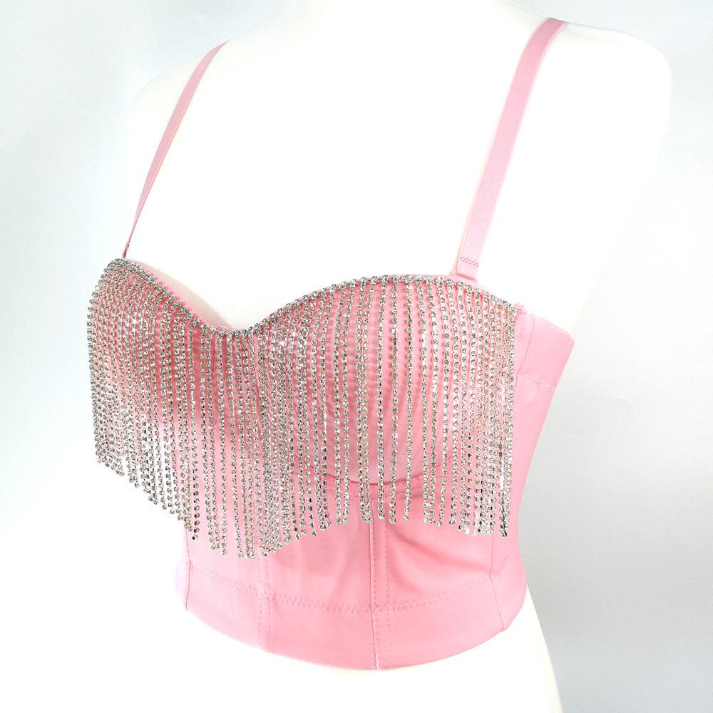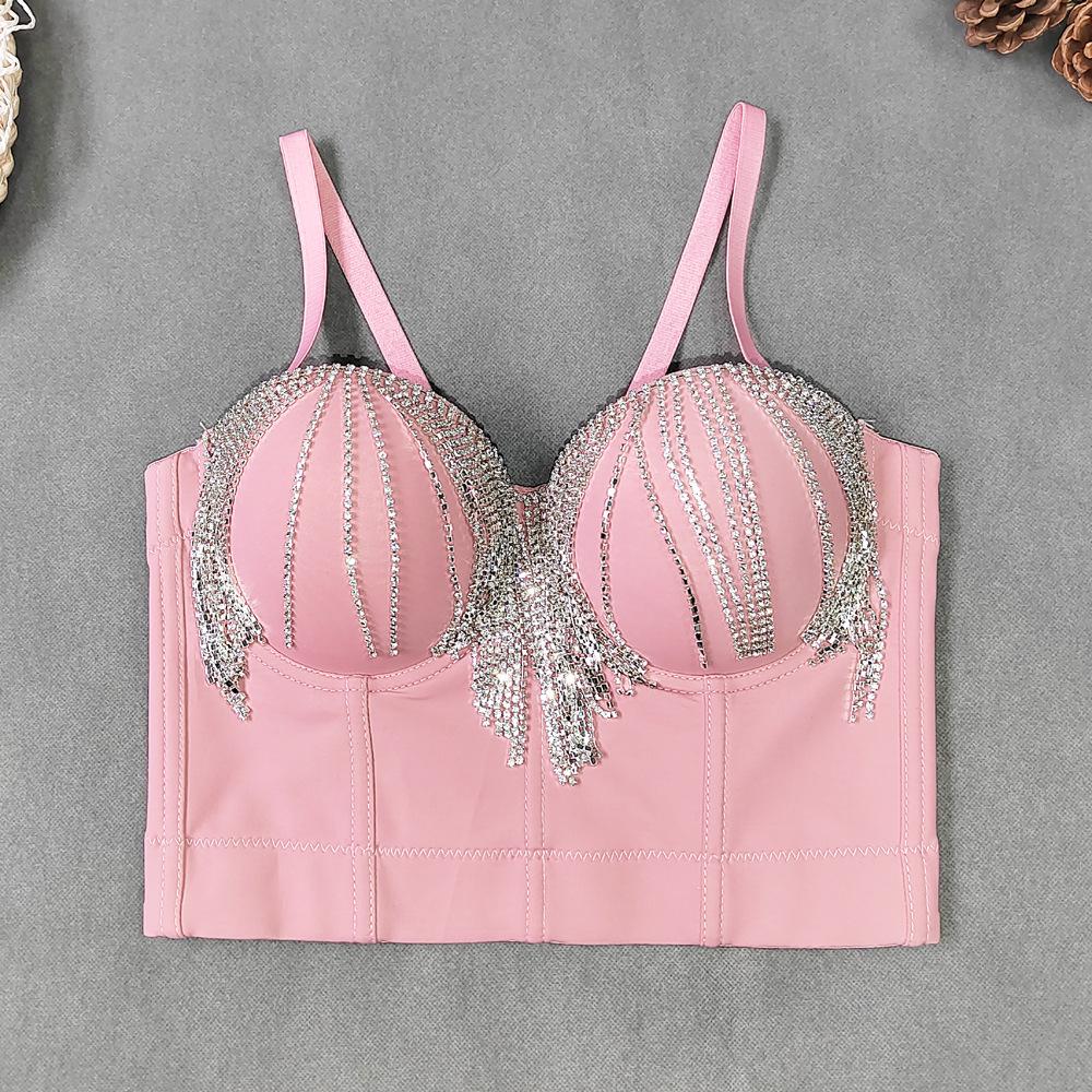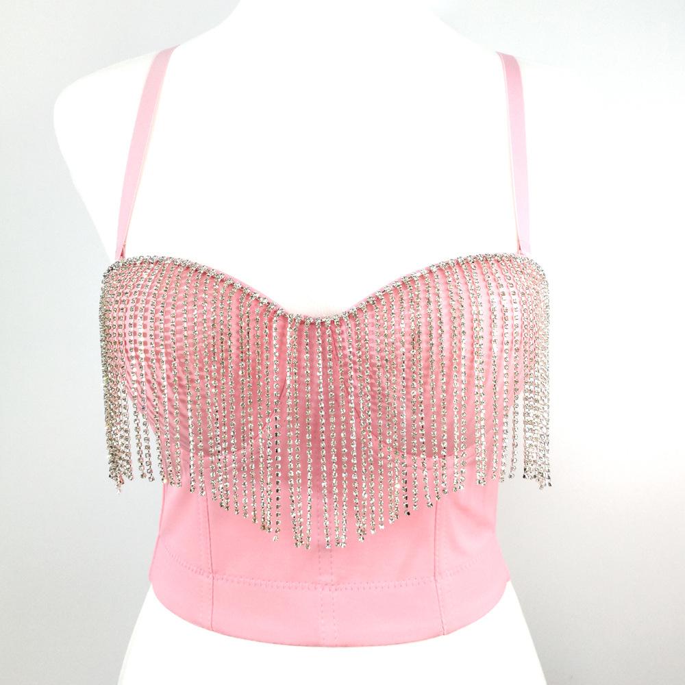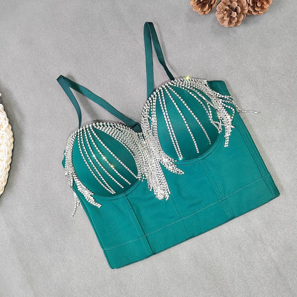 Ropa interior moldeadora con cadena de diamantes y borlas para danza del vientre, tirantes cortos sin espalda, ropa para actuaciones escénicas, fabricantes al por mayor