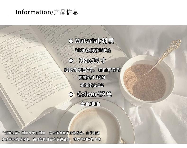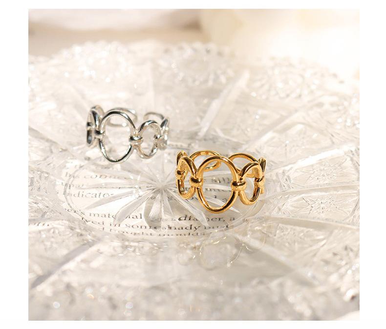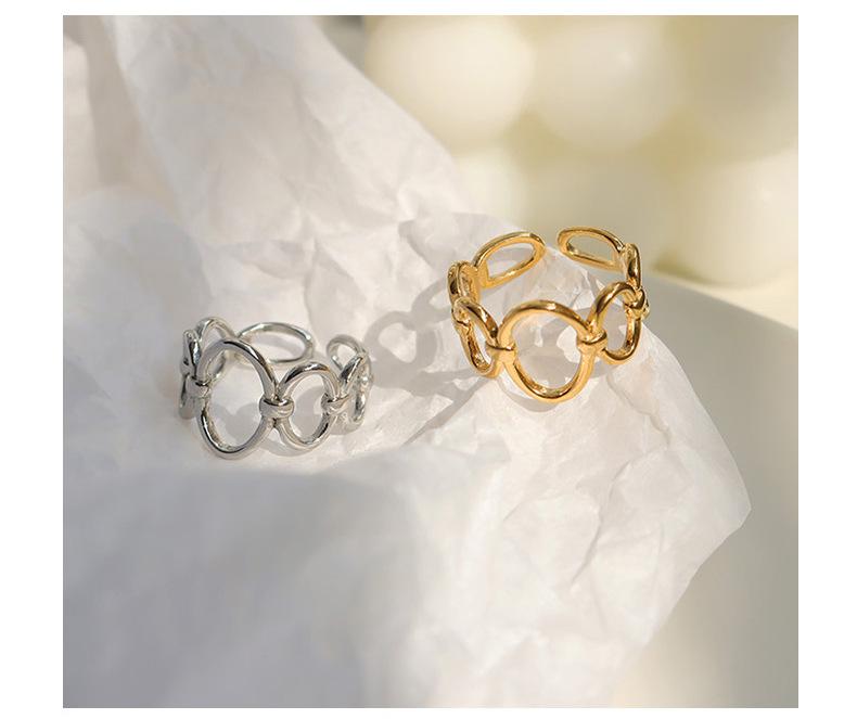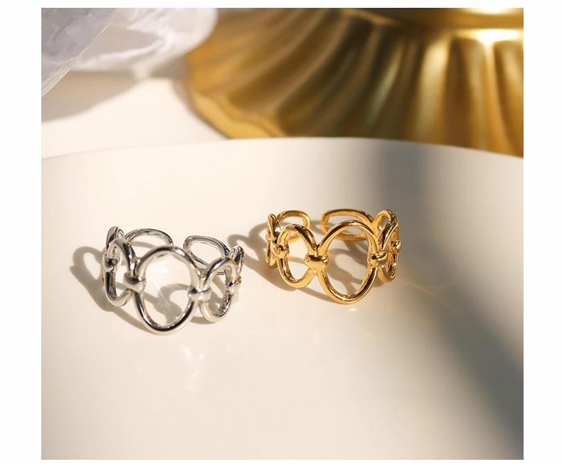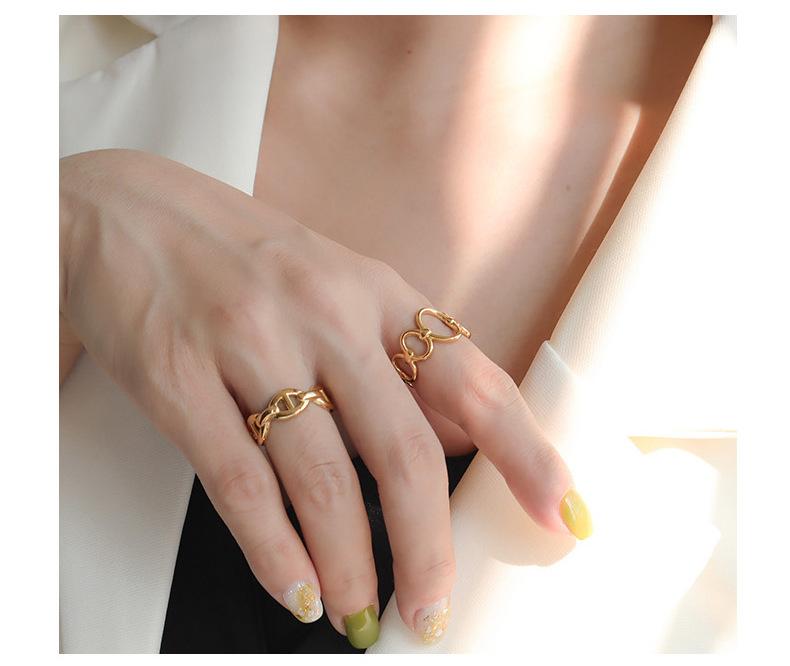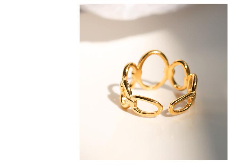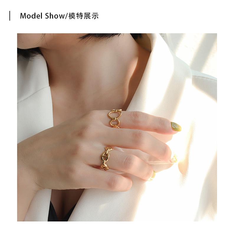 Anillo minimalista geométrico ovalado con costuras estilo ins europeo y americano para mujer, anillo para el dedo de comida, anillo abierto de acero de titanio con baño de oro de 18k A151