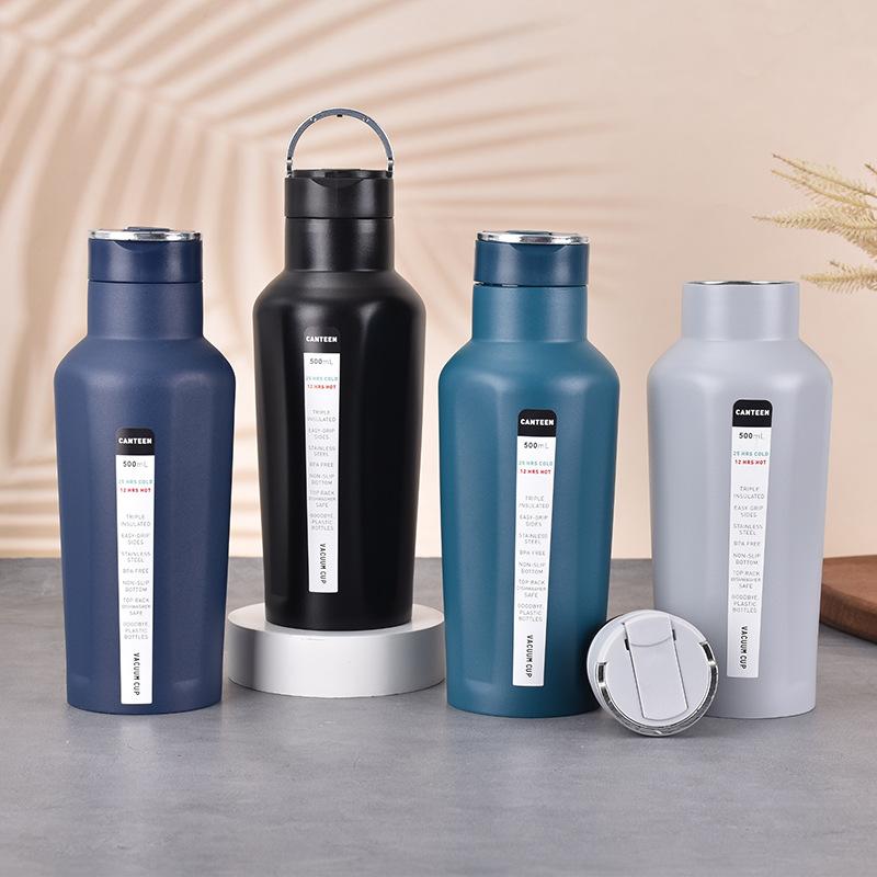 Nueva taza de vacío de acero inoxidable transfronteriza, portátil, con tapa, para escalada al aire libre, taza deportiva de gran capacidad con boquilla de succión.