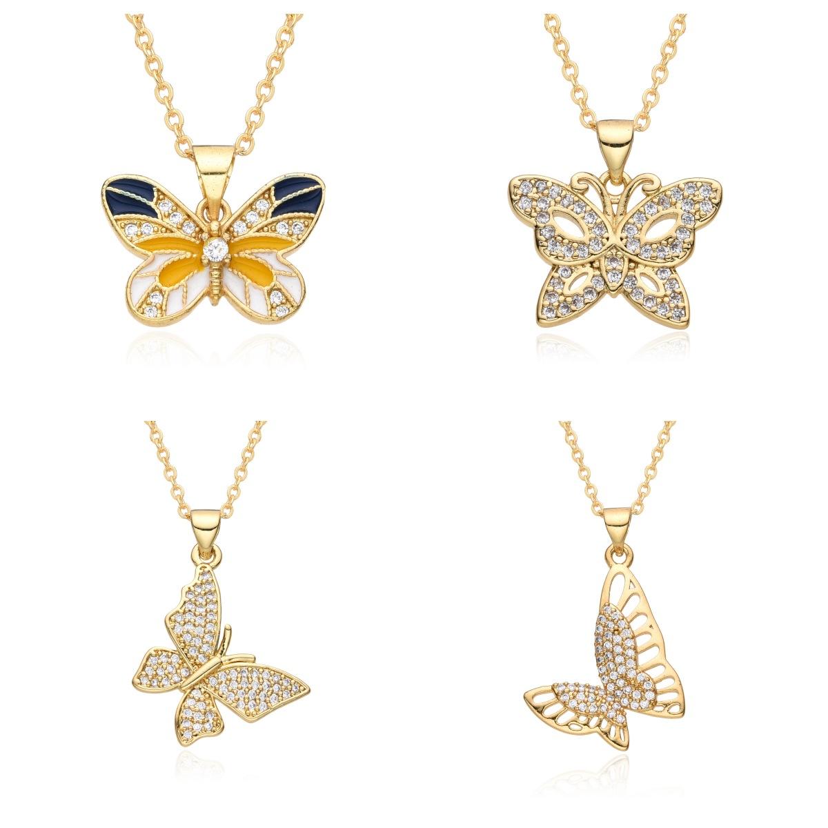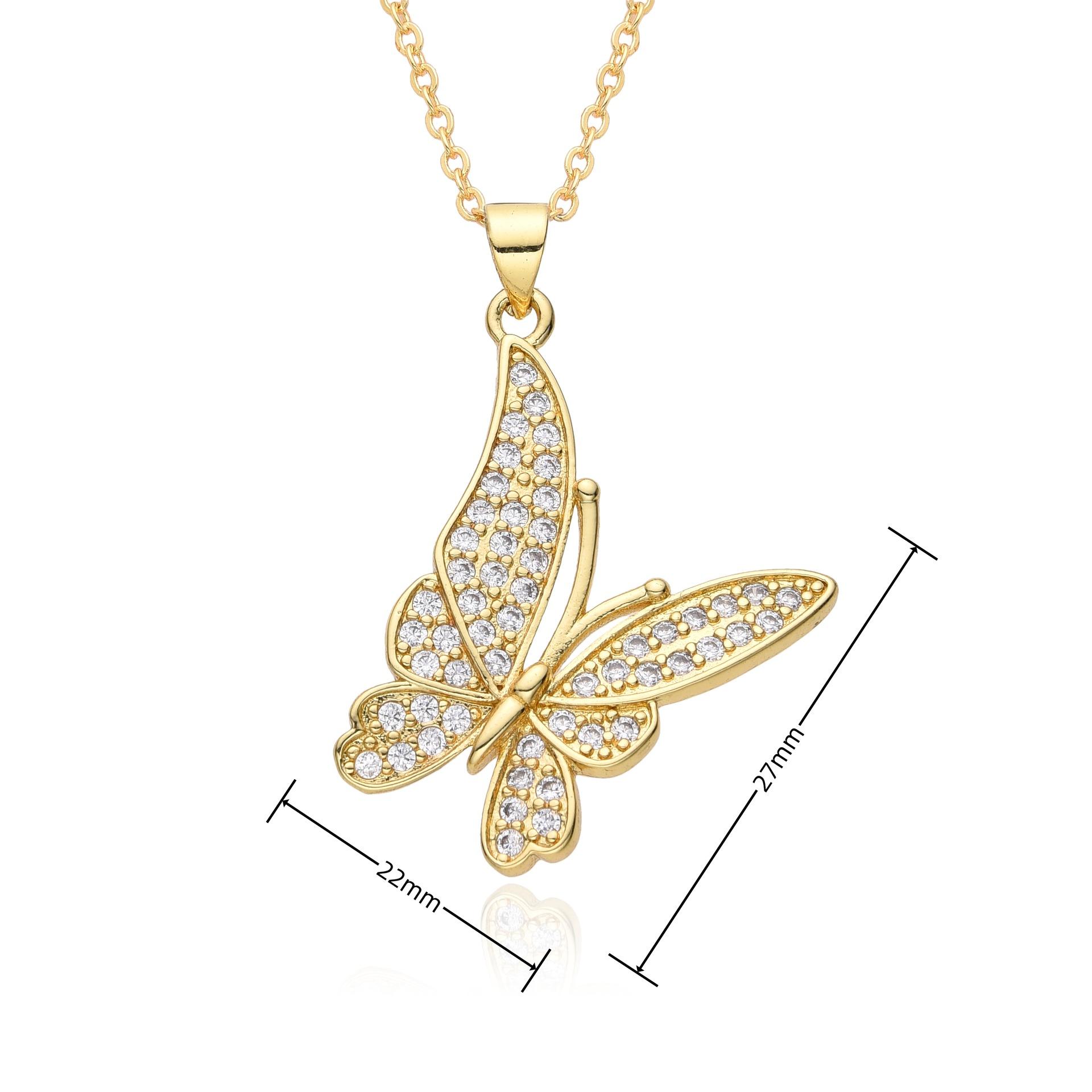 Collar de cobre chapado en oro con diseño de lujo ligero europeo y americano, colgante de mariposa con personalidad femenina, cadena de clavícula, estilo diosa con temperamento de nicho