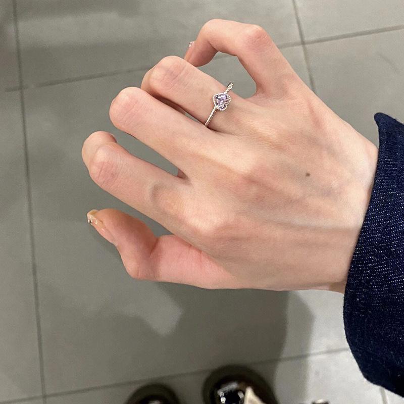 Anillo de Circonita Rosa Dulce en Forma de Corazón para Mujer Estilo Frío Moda Nicho Personalidad Combinable Anillo de Dedo de Alto Nivel