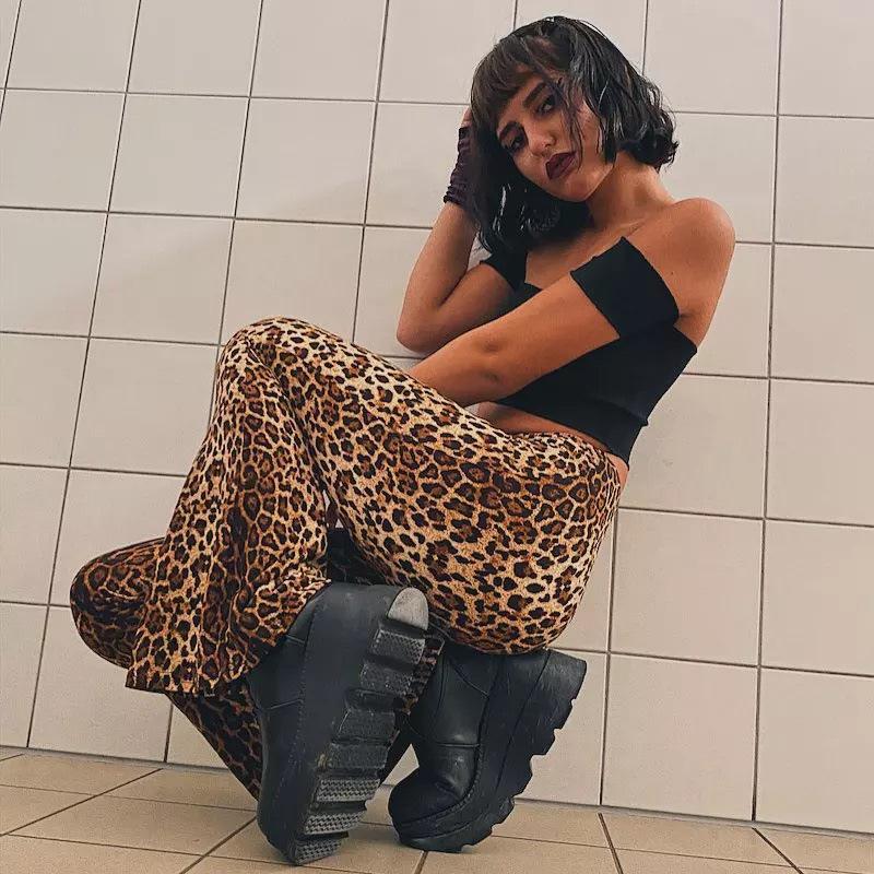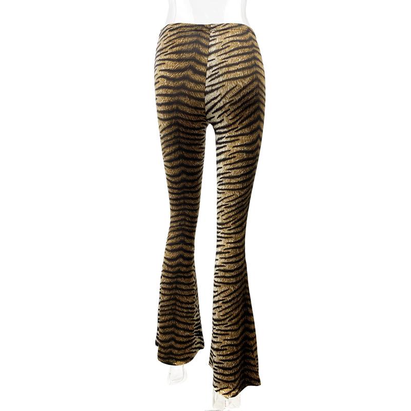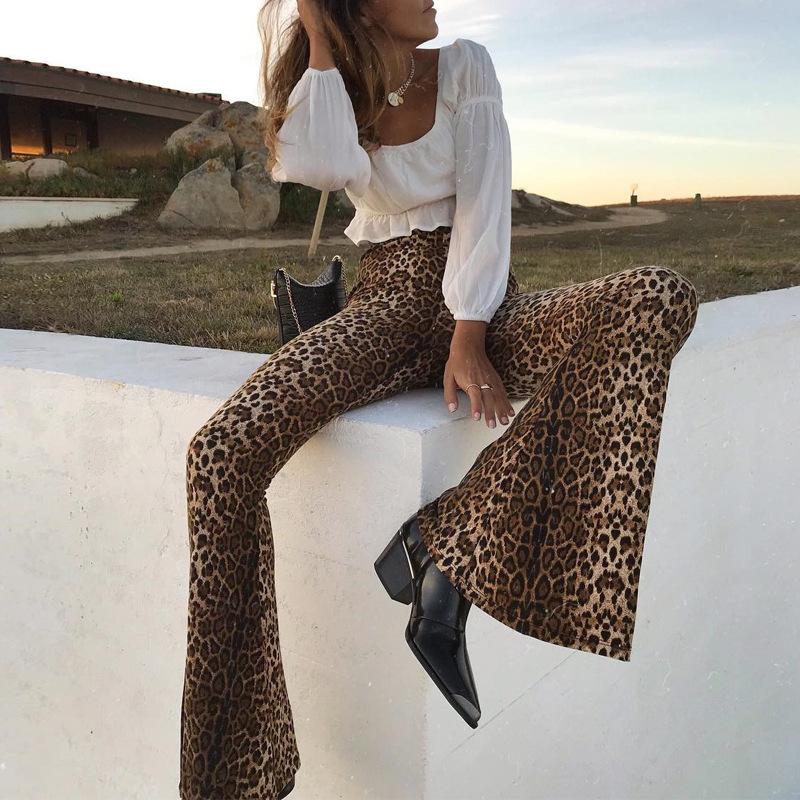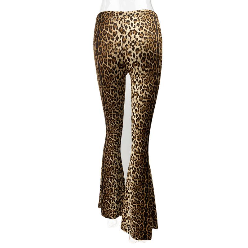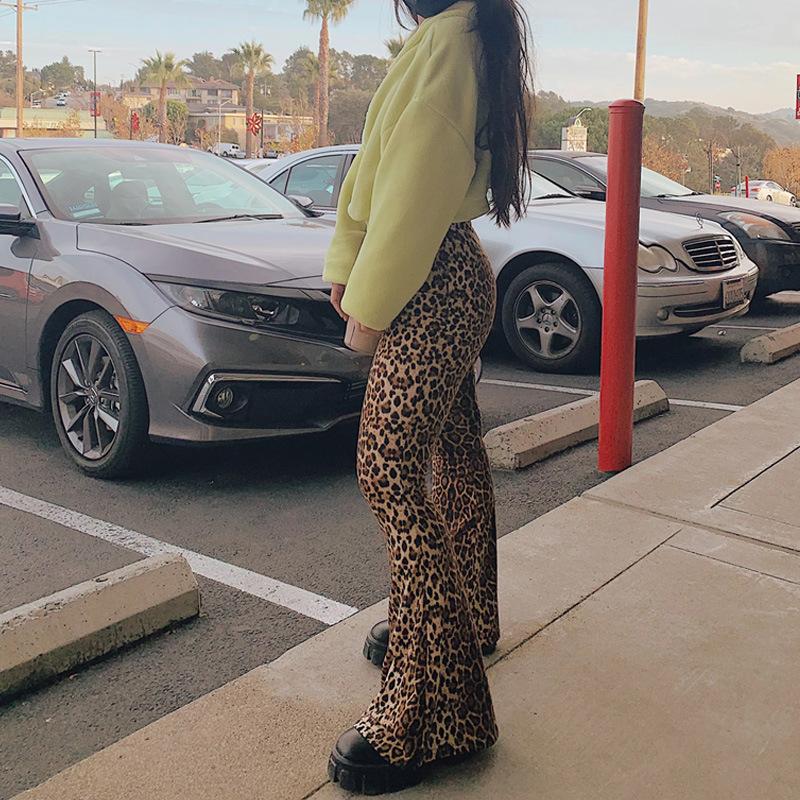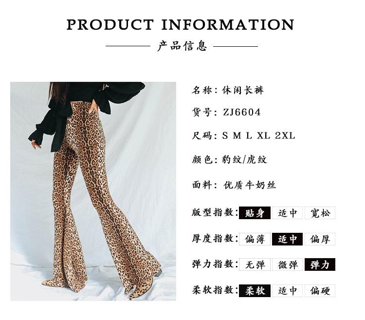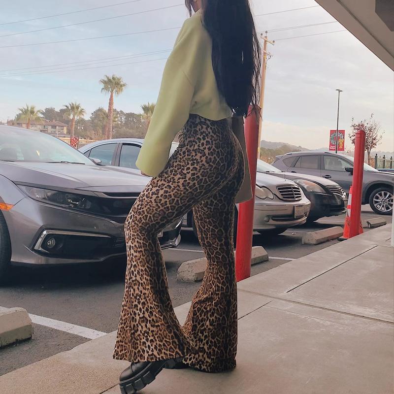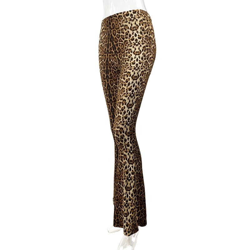 Ropa de Mujer de Moda Primavera 2025 Nueva Venta al por Mayor Transfronteriza Pantalones Casuales de Cintura Alta Europeos y Americanos Pantalones Acampanados Ajustados de Moda con Estampado de Leopardo