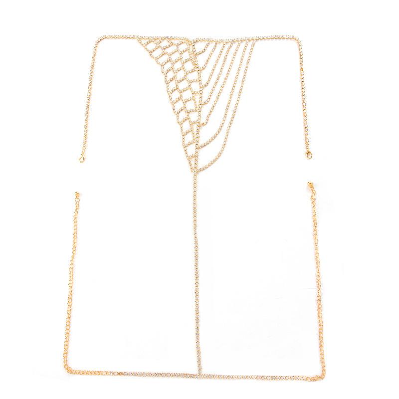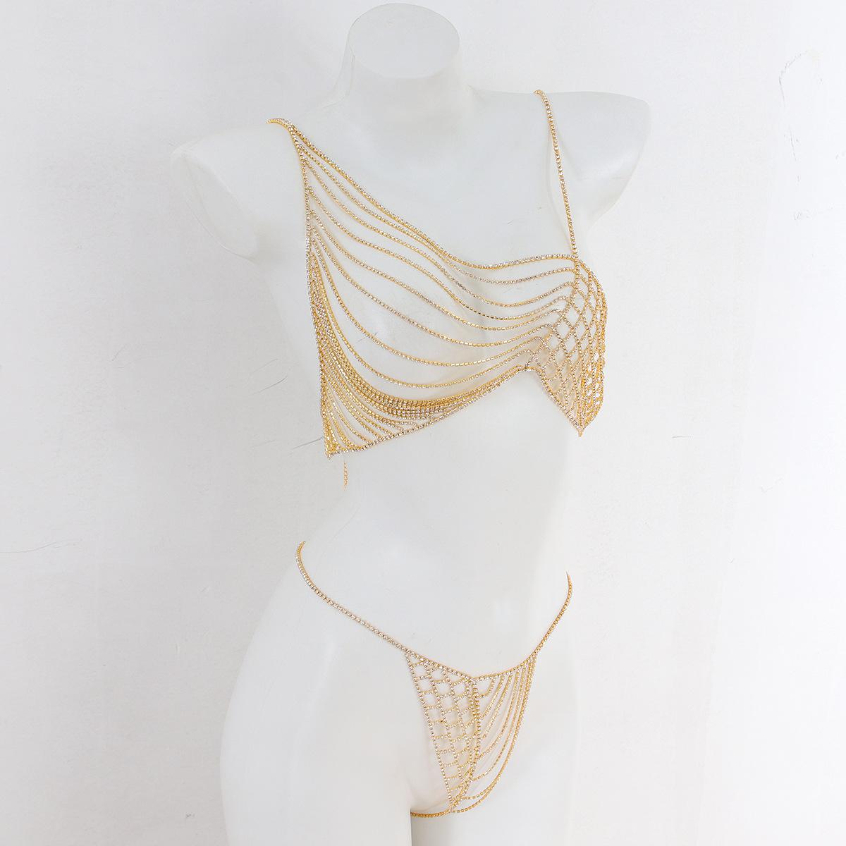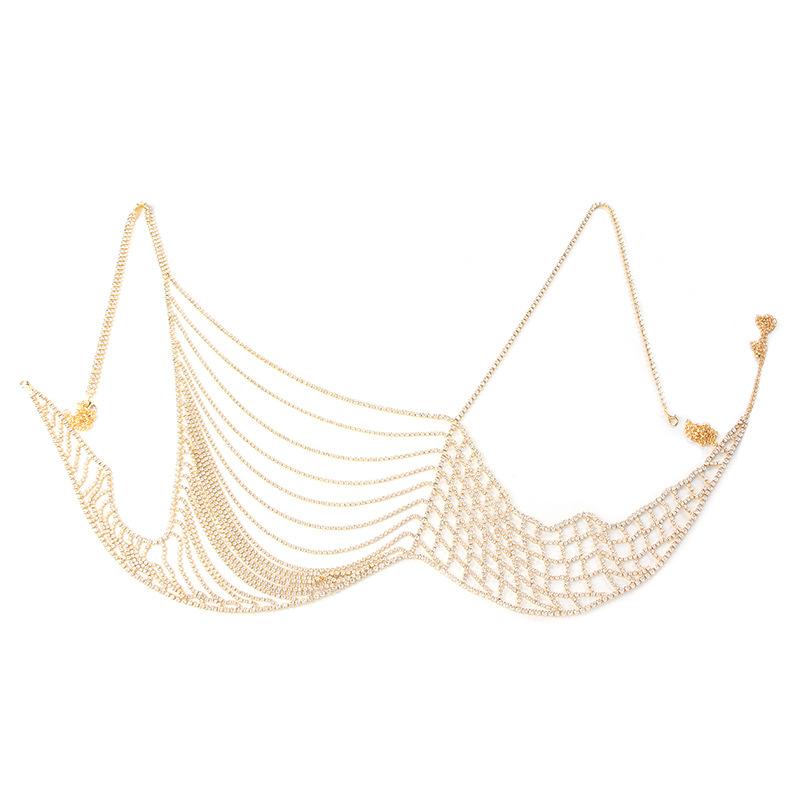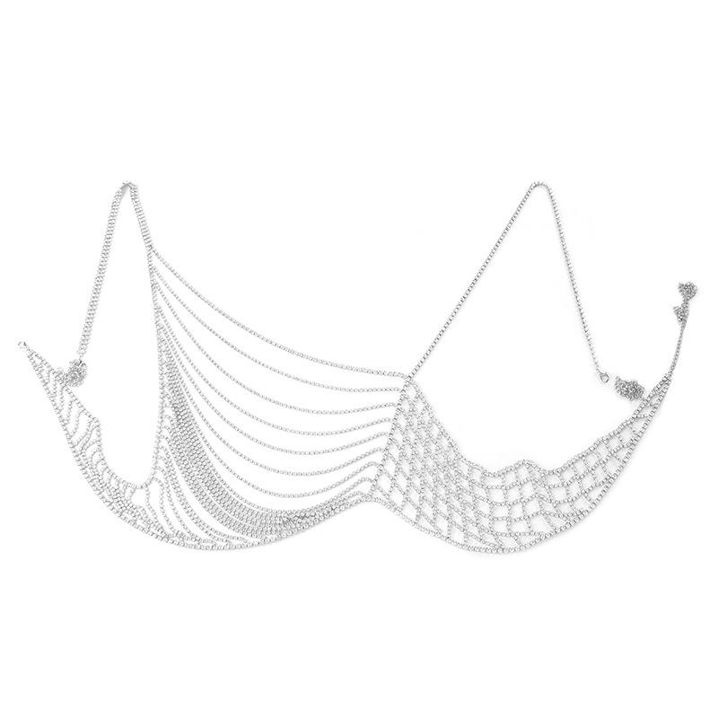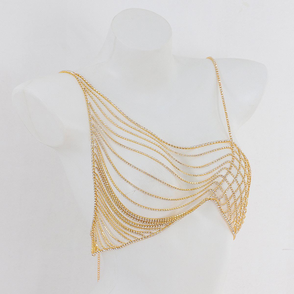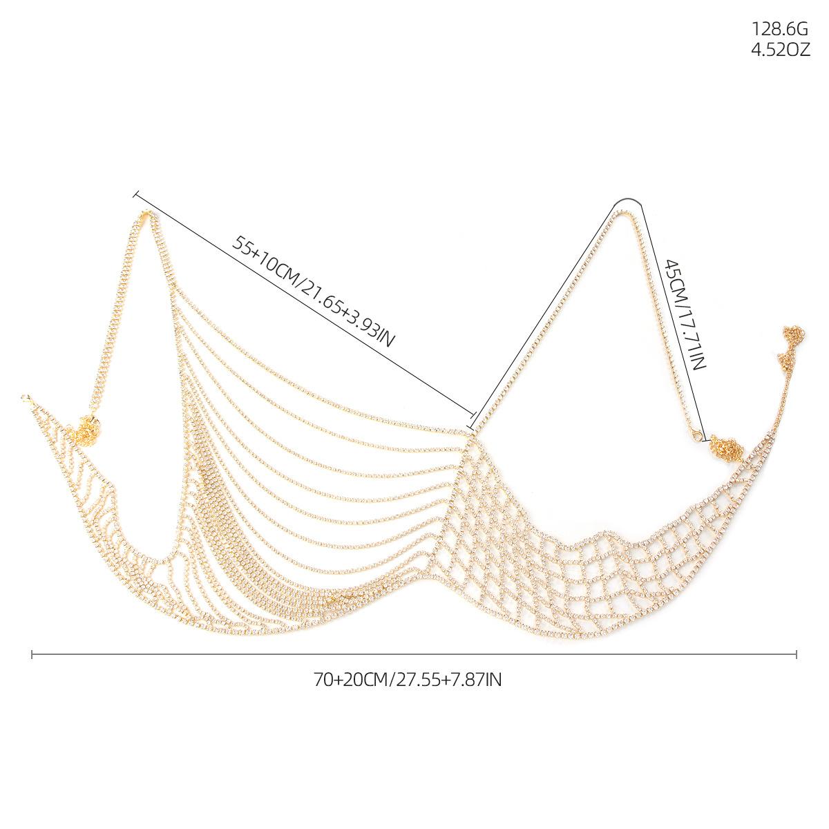 Cadena de pecho con diamantes de imitación de nueva moda transfronteriza, joyería para mujer, cadena corporal sexy para sujetador de bikini de playa y discoteca europea y americana