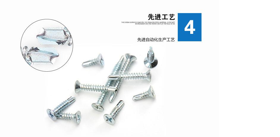 Tornillo de cola de milano con cabeza avellanada, ranura cruzada, autorroscante y autoperforante, de zinc azul y blanco, M4.2M4.8