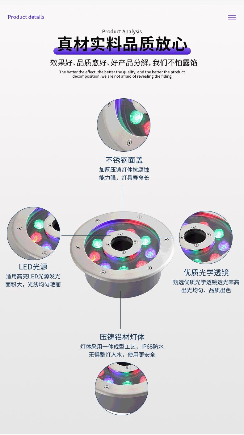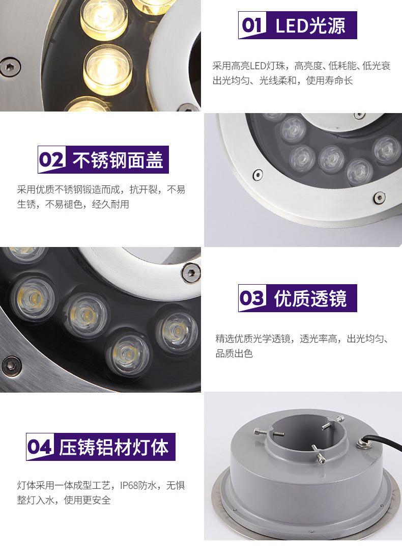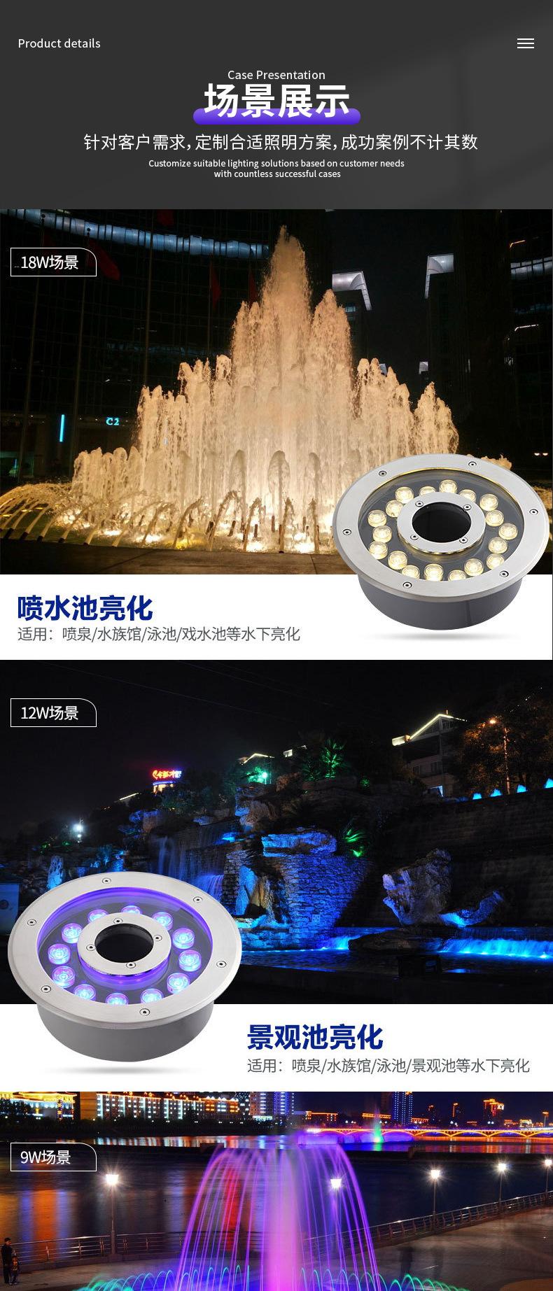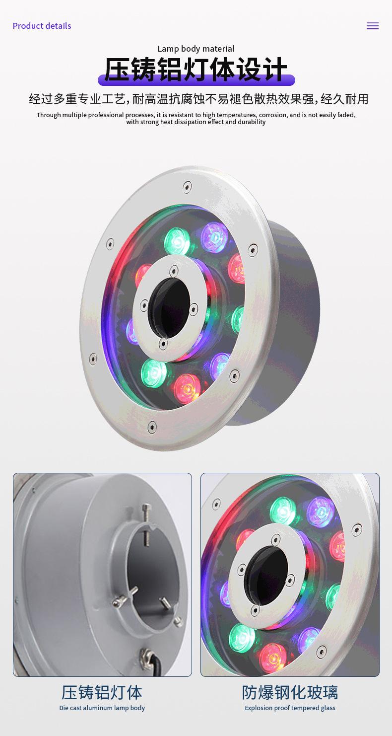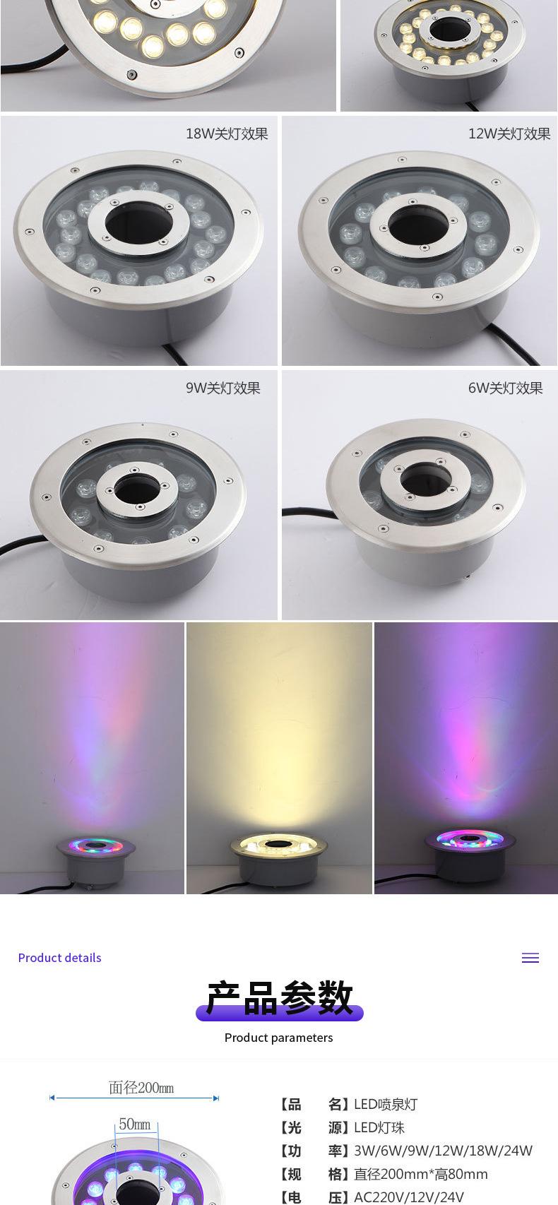 Luz LED para Fuente de Tierra Seca Empotrada con Agujero Central Luz Subterránea Anillo de Acero Inoxidable Luz LED Subacuática para Fuente Ip68 Característica Acuática