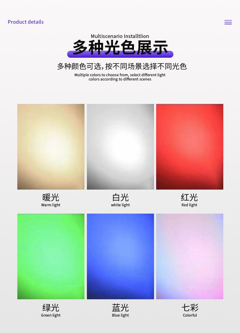 Warm White, White, Yellow, Red, Blue, Green, Purple, Colorful
