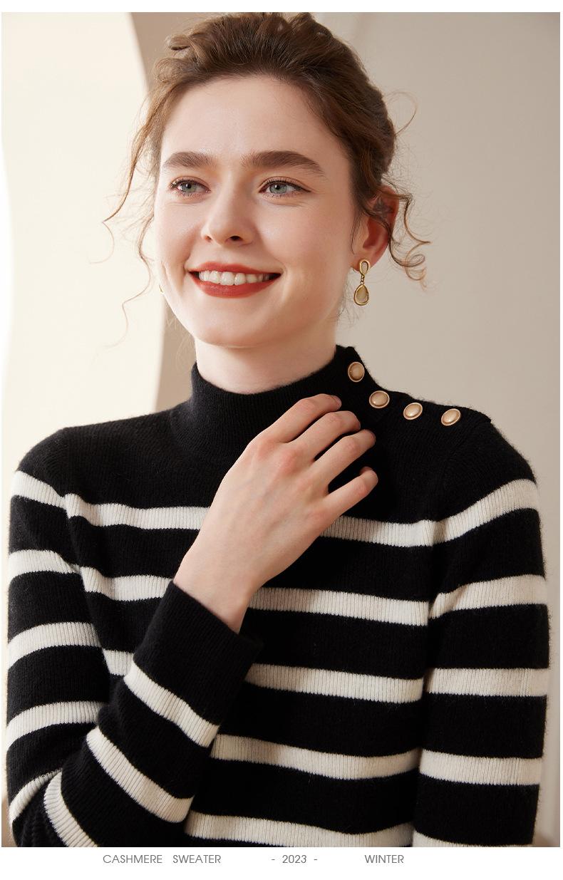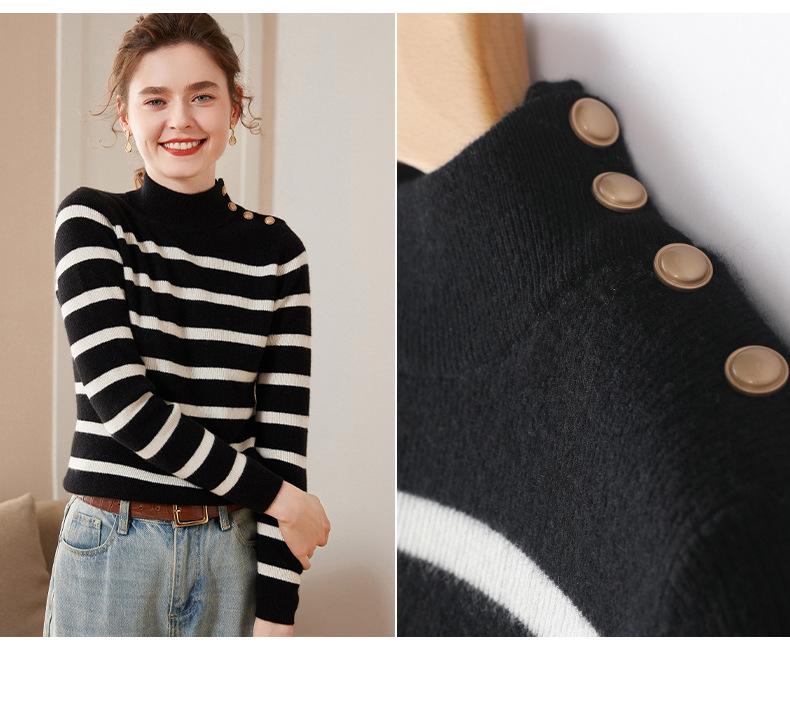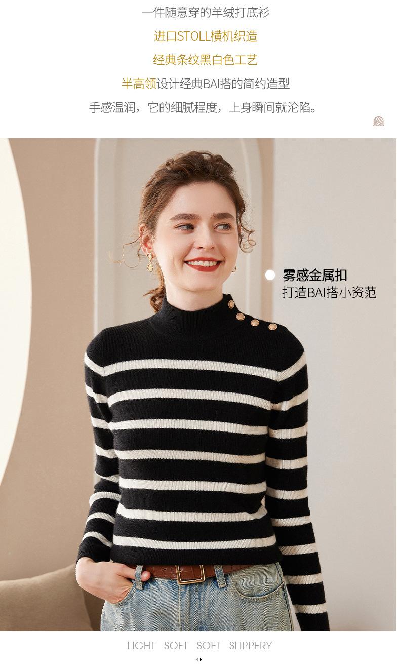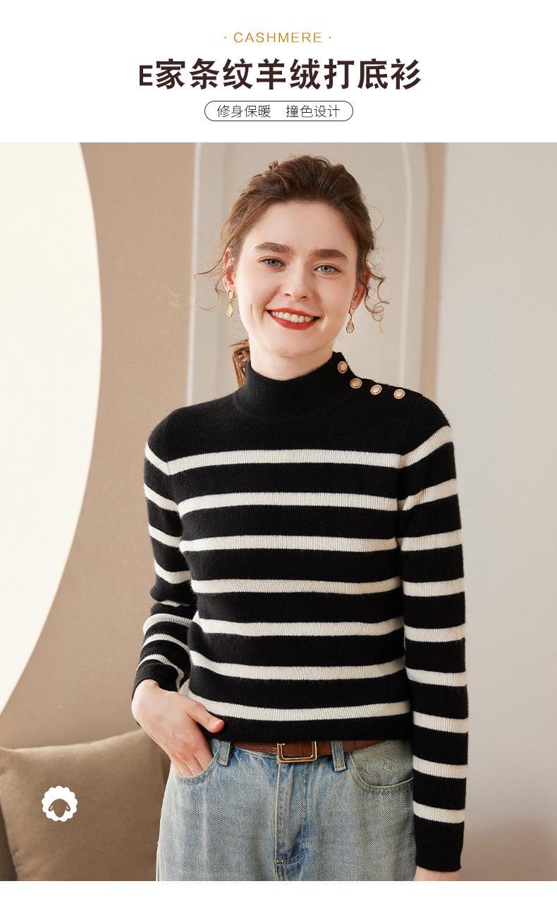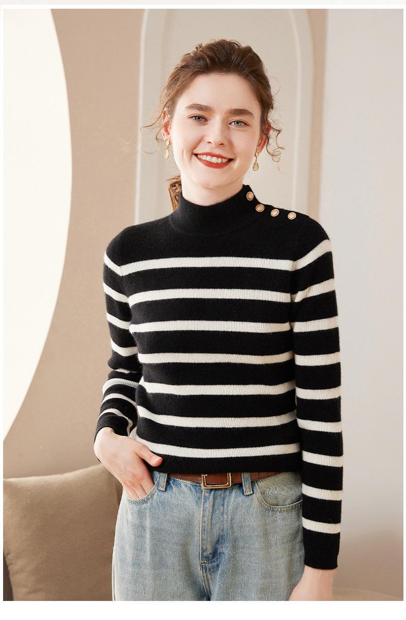 Otoño 2023 nueva moda suéter de cachemira a rayas top camisa interior Suéter de mujer chic estilo occidental cuello alto
