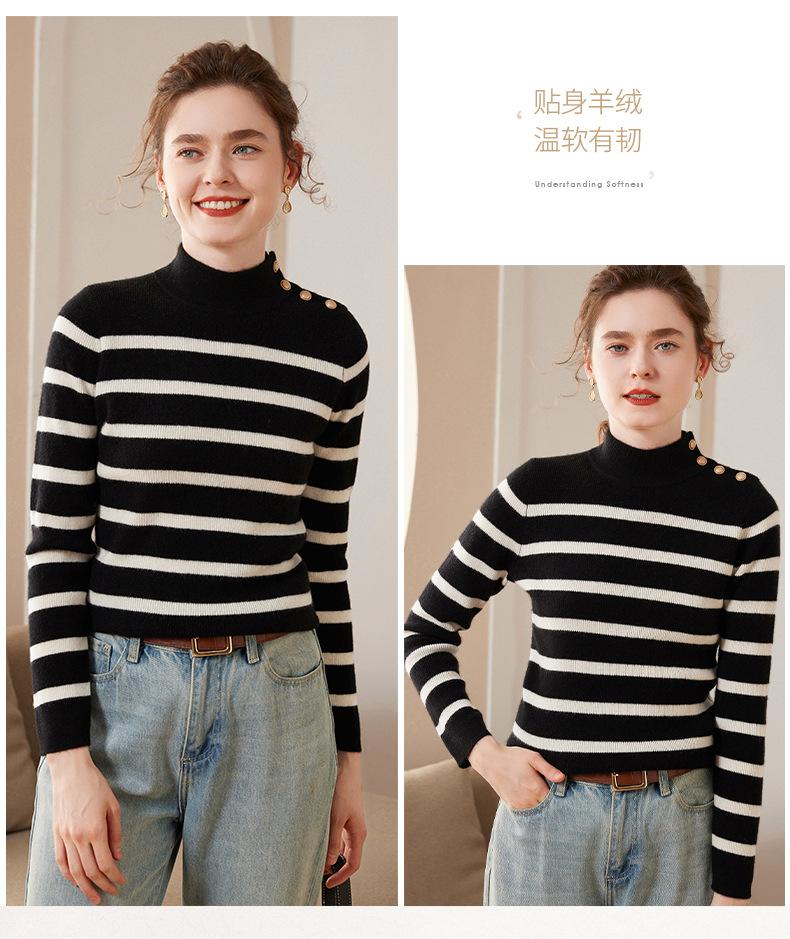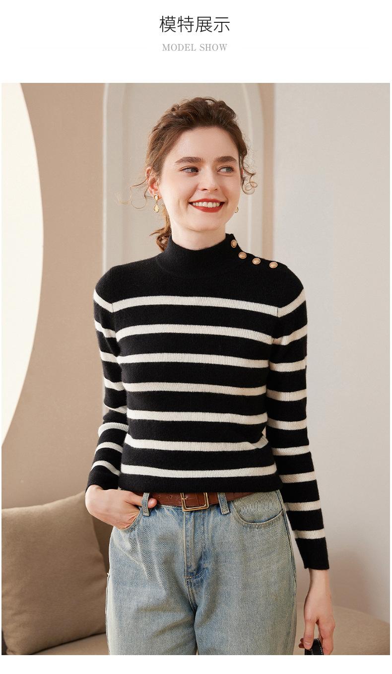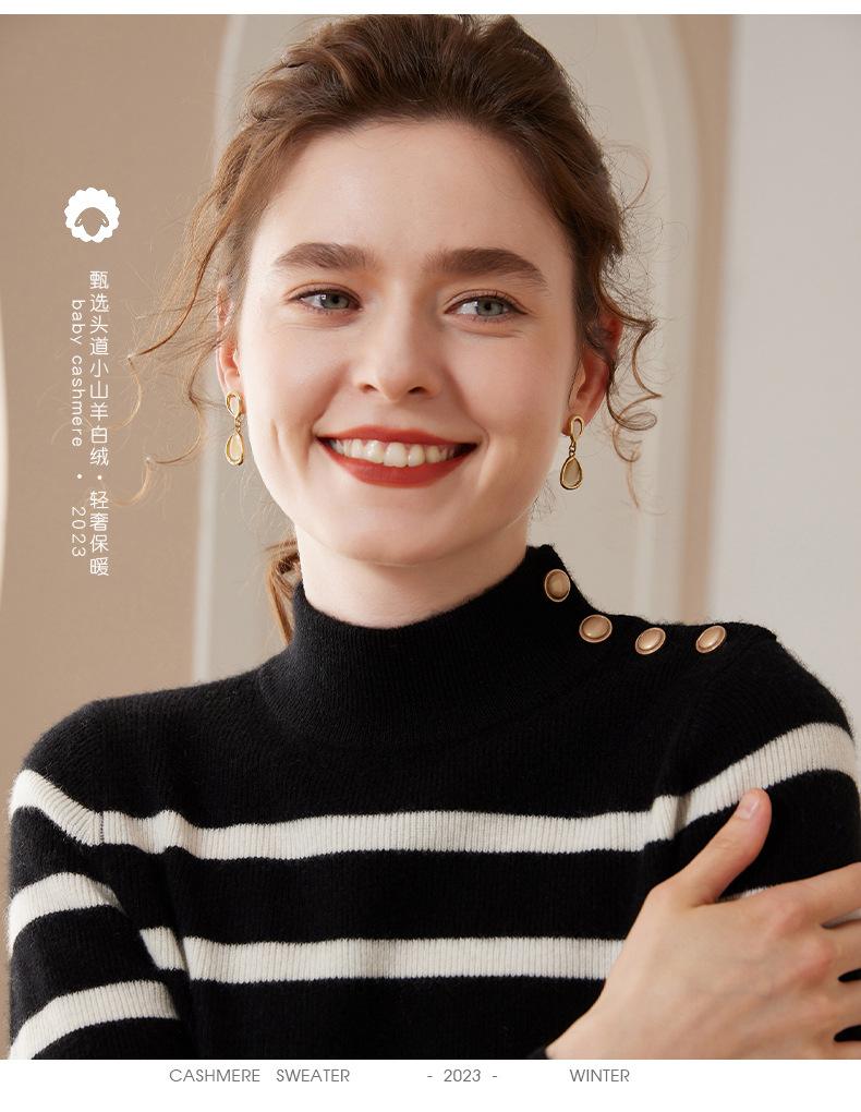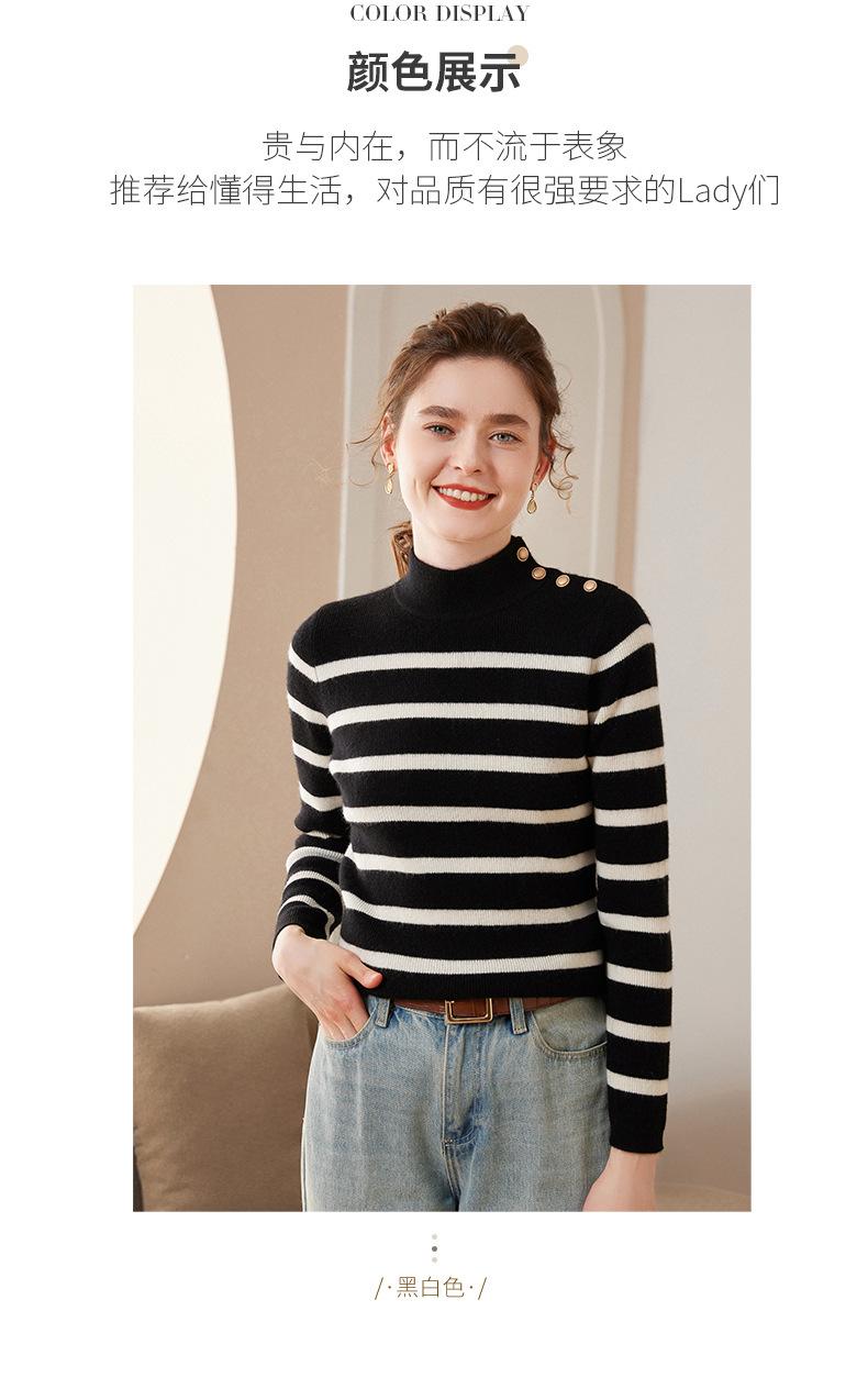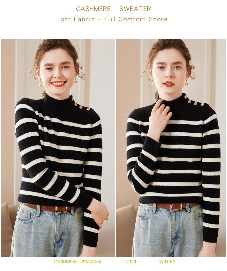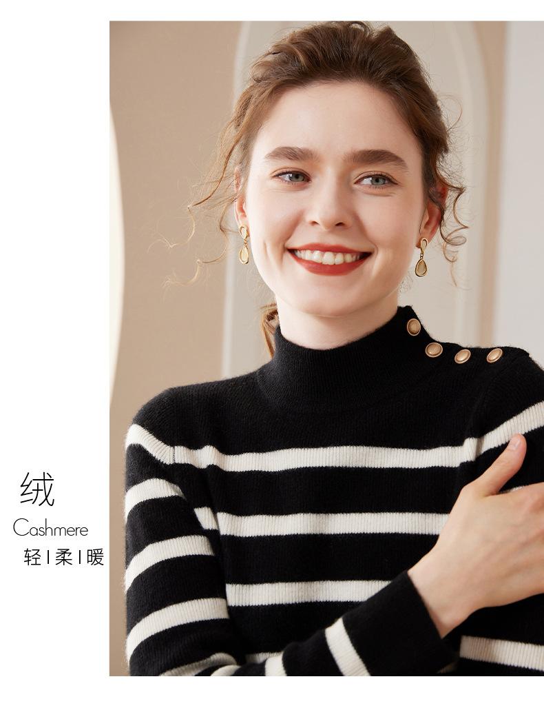 Otoño 2023 nueva moda suéter de cachemira a rayas top camisa interior Suéter de mujer chic estilo occidental cuello alto