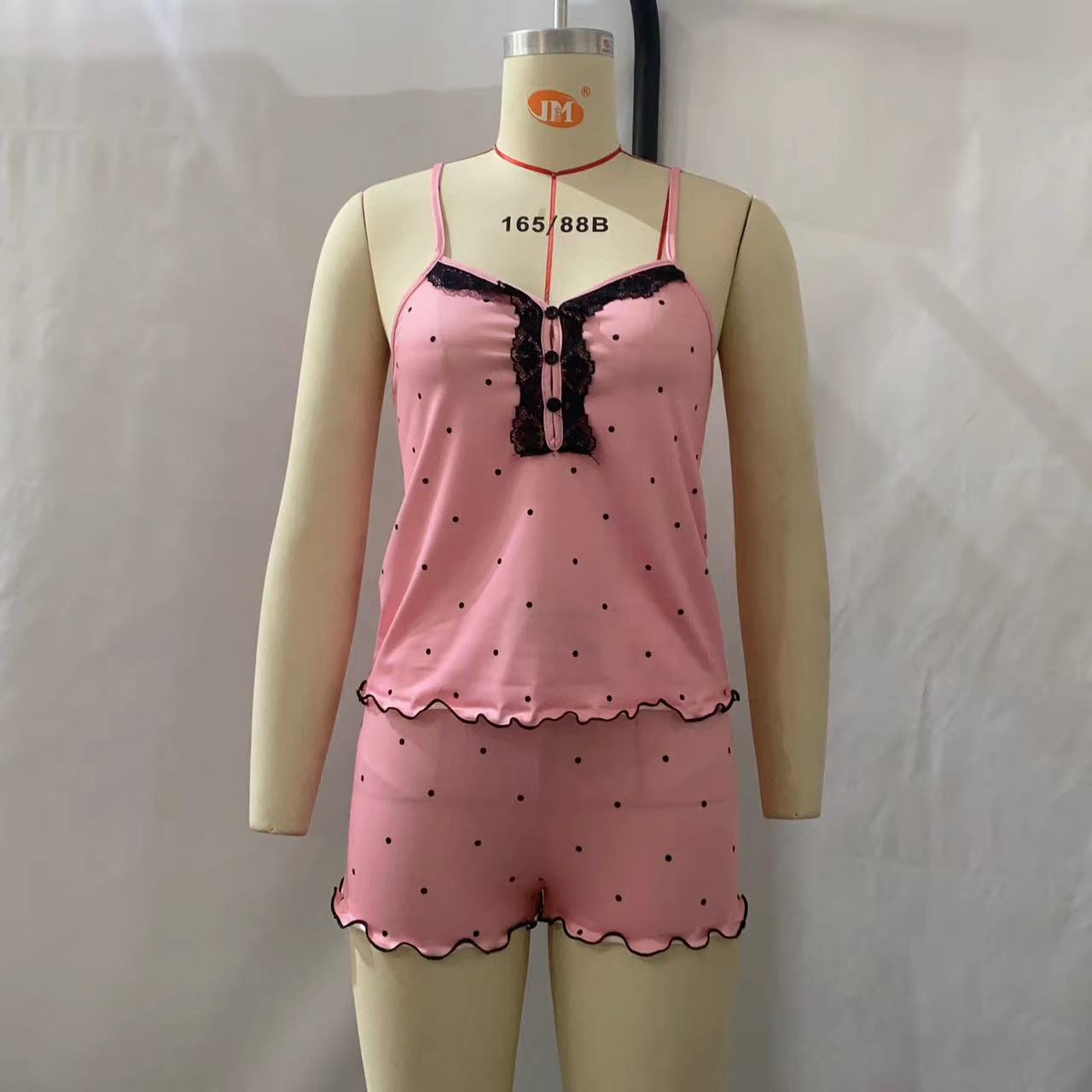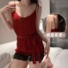 Pijama nuevo para mujer de comercio exterior europeo y americano con cuello en V, cómodo para el hogar, con encaje, tirantes de encaje, shorts con botones, traje