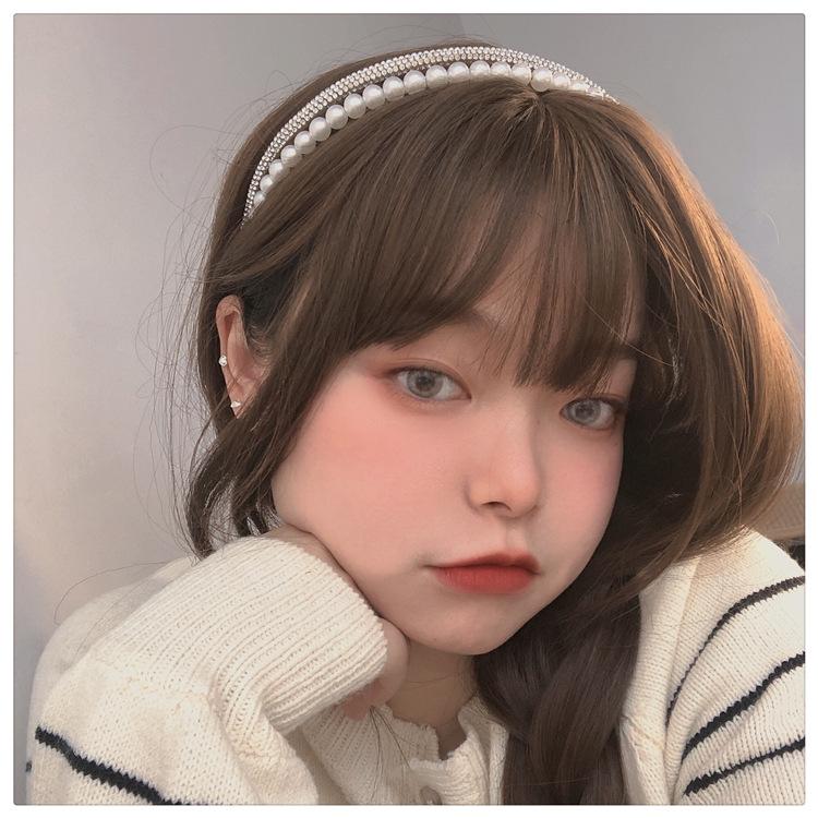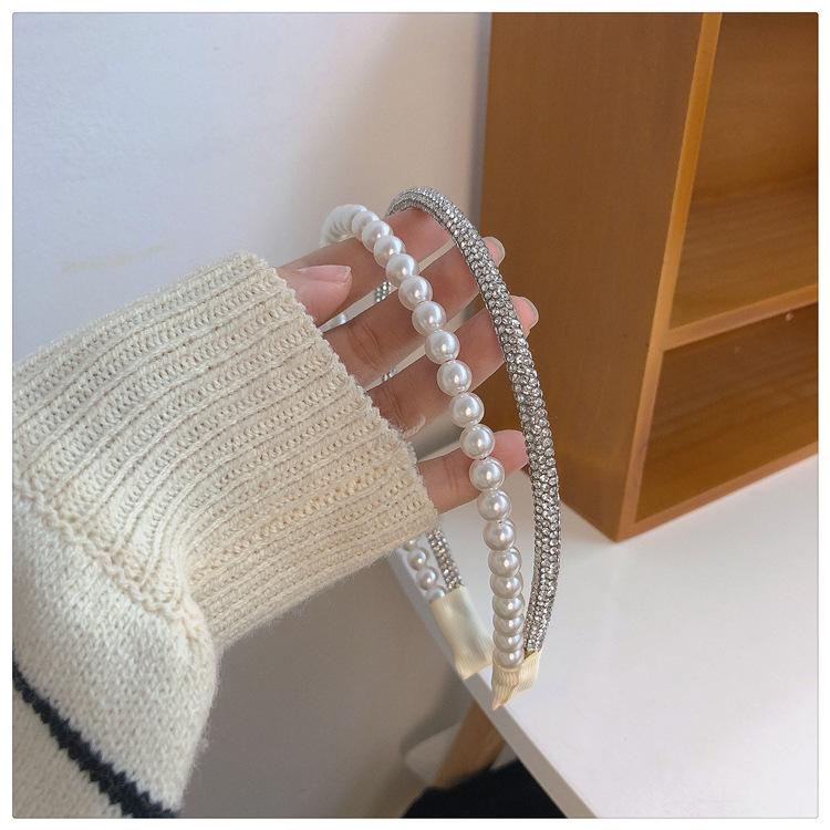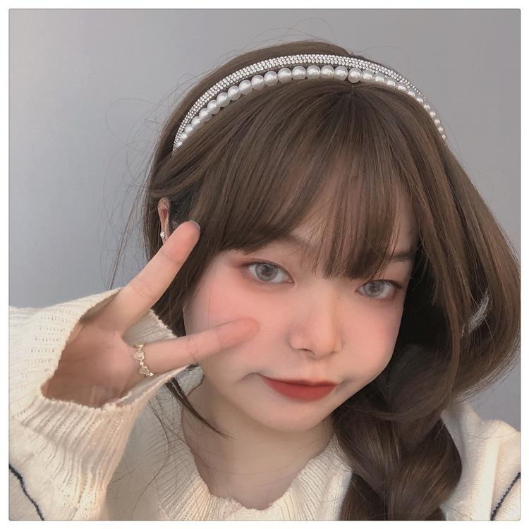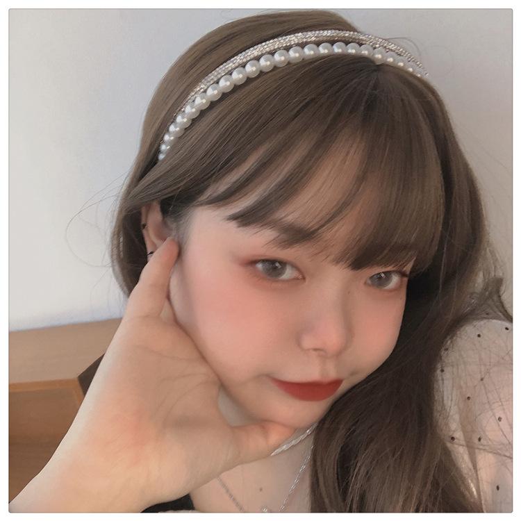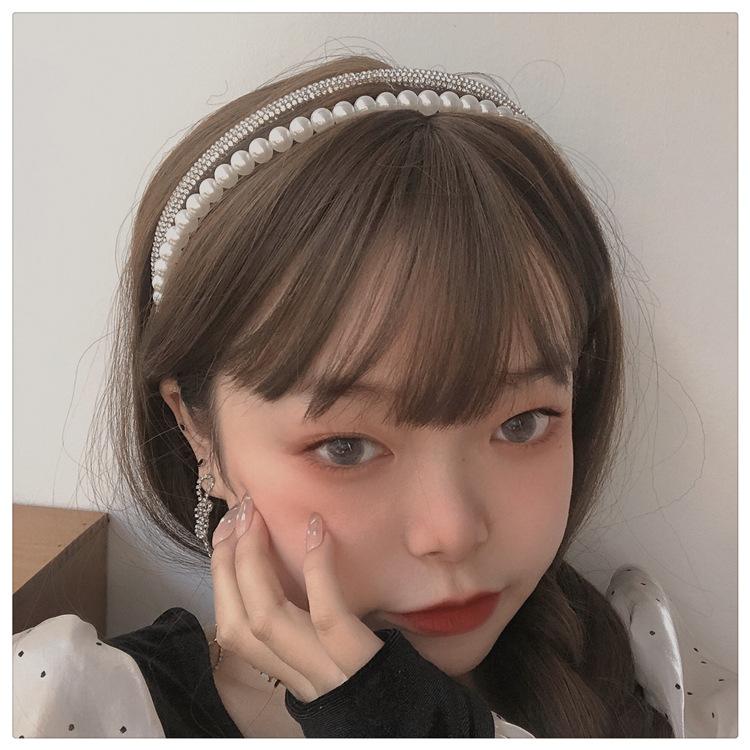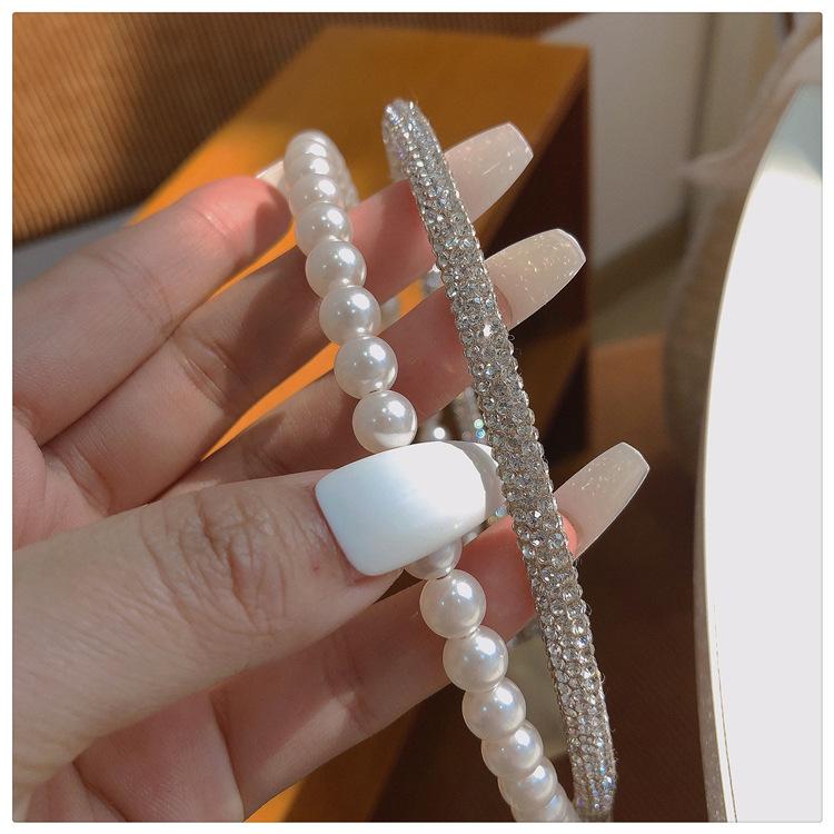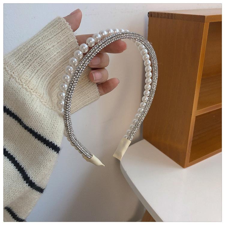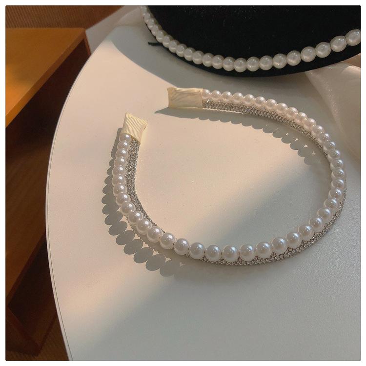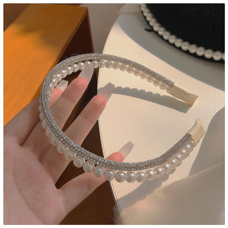 Nueva diadema elegante de perlas francesas de estilo coreano para mujer, diadema versátil de doble capa con incrustaciones de diamantes, tocado, dulce súper accesorio para el cabello de hadas