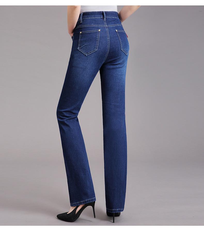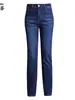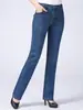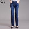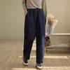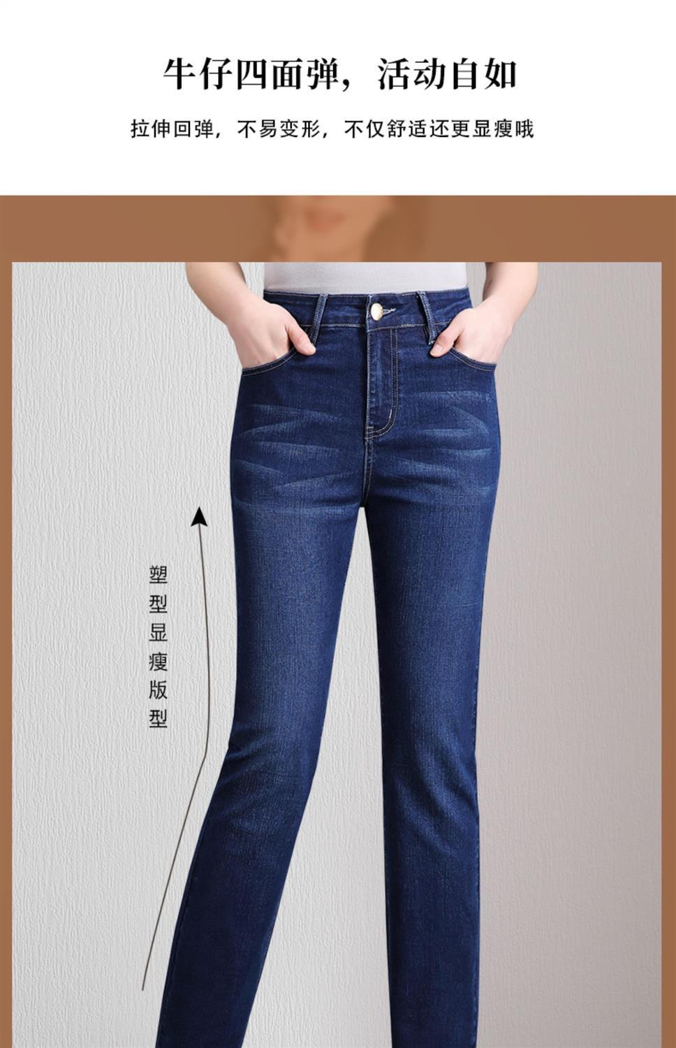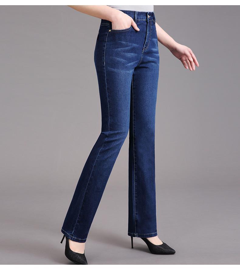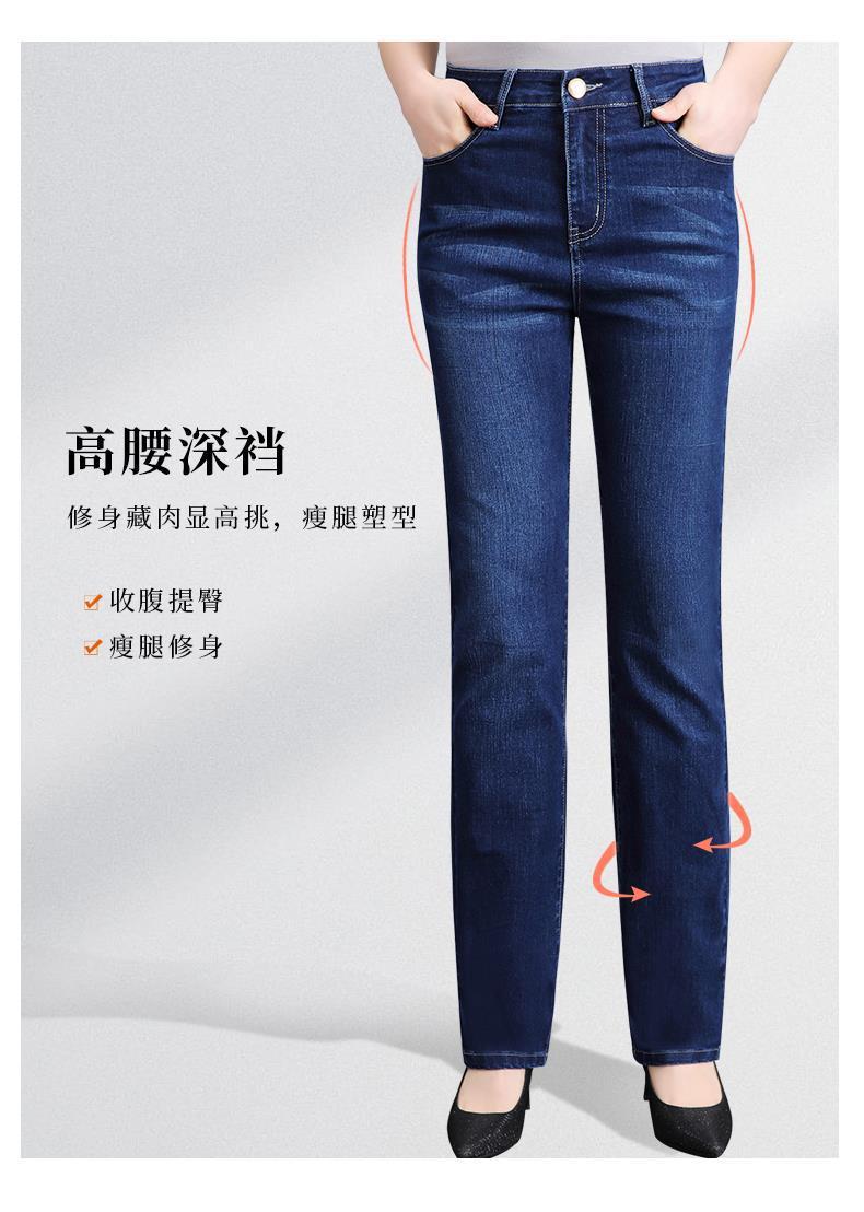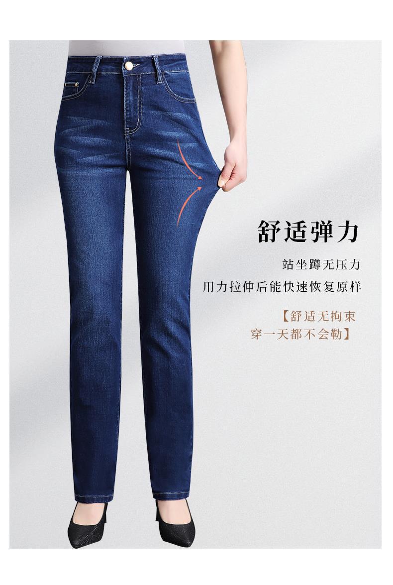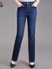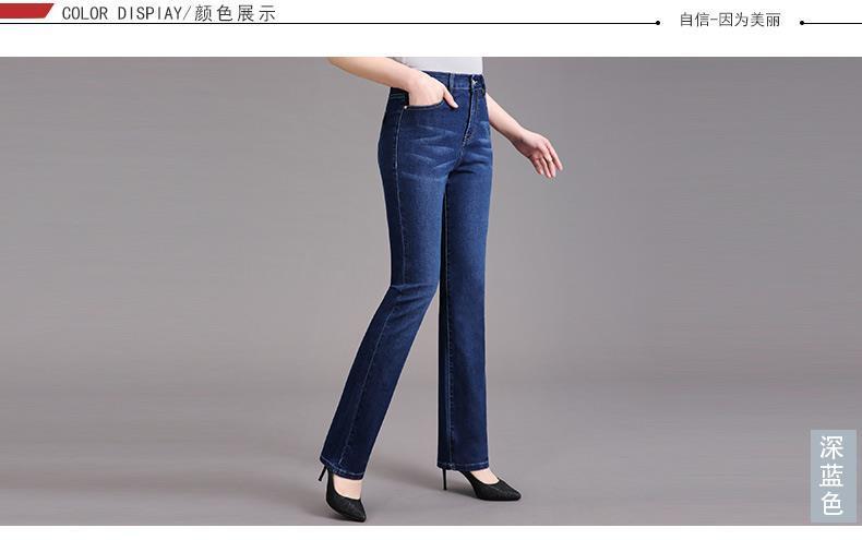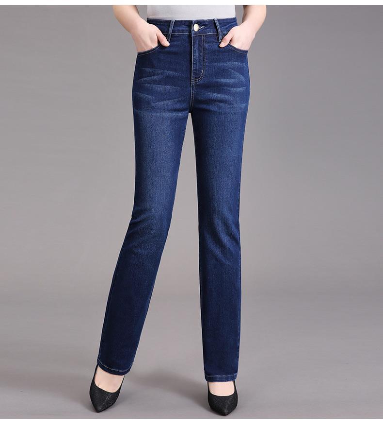 Jeans de Terciopelo Azul Oscuro Rectos para Otoño e Invierno 2024 para Mujer de Cintura Alta Elásticos Holgados Adelgazantes Talla Grande Pantalones para Mamá de Mediana Edad