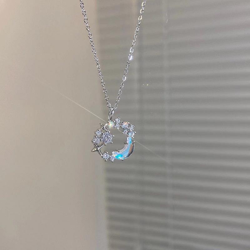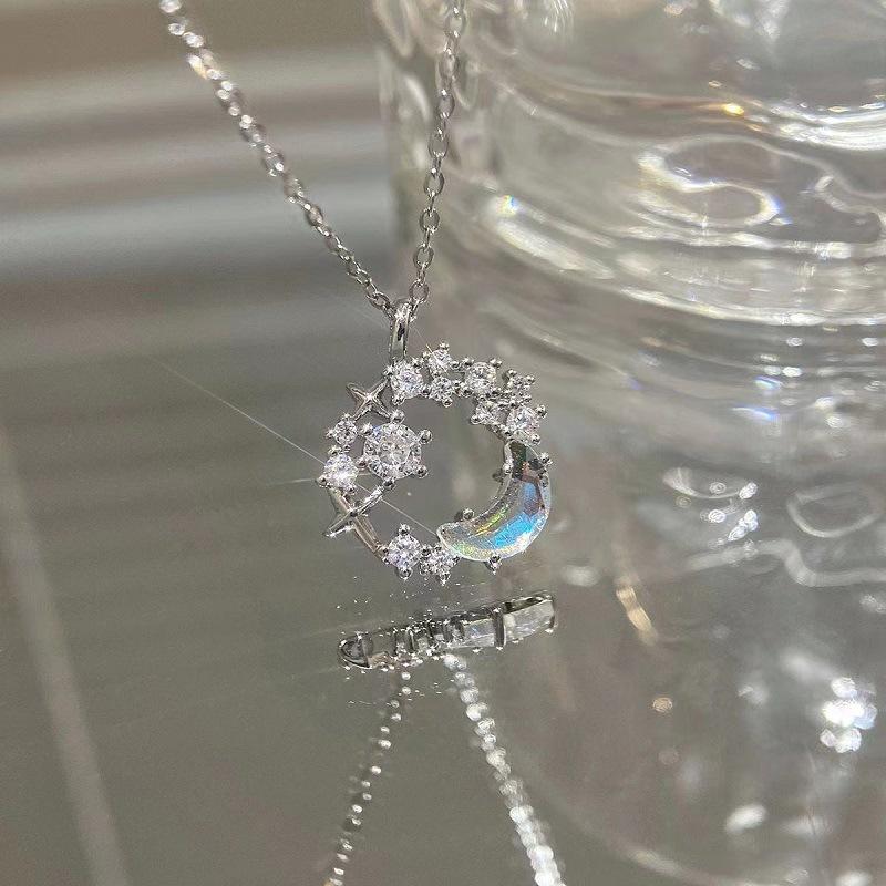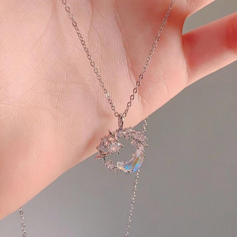 Collar de luna y estrella de fantasía para niñas, colgante de aleación, cadena de clavícula, nicho de lujo ligero, regalo de alto sentido, collar nuevo que combina con todo