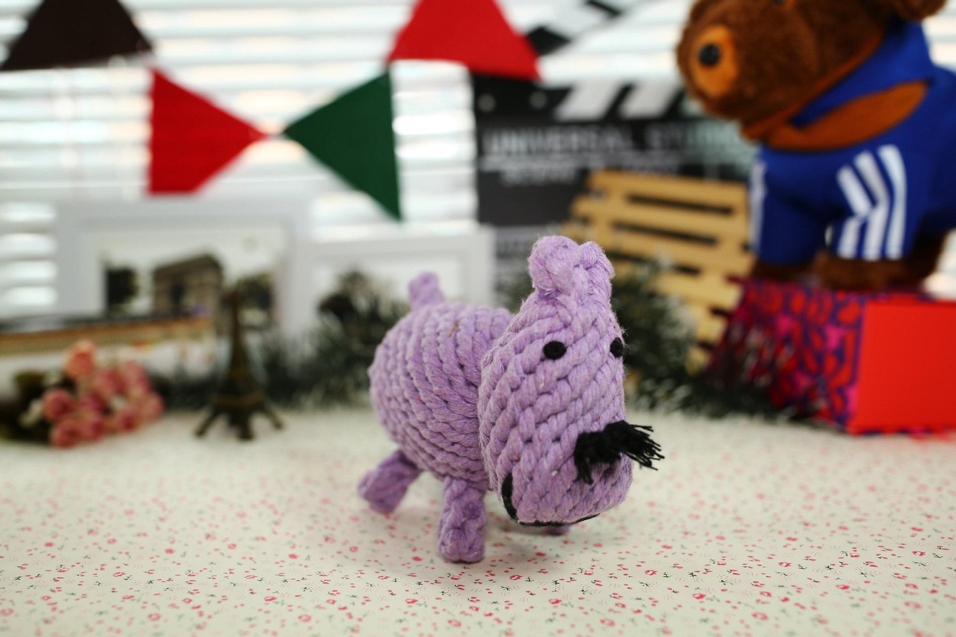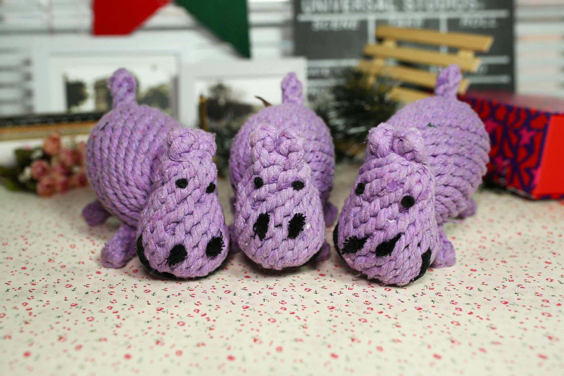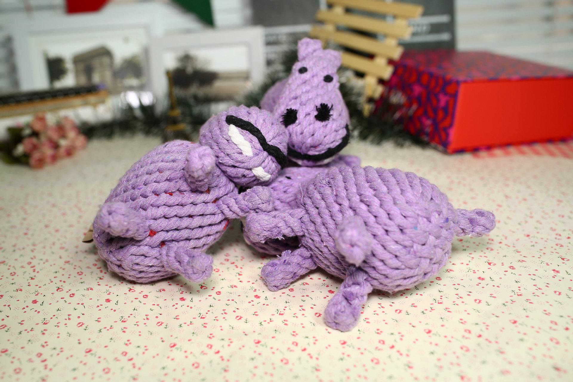 Juguete de hipopótamo para morder, pequeño muñeco de perro, suministros para mascotas, hilo de algodón, juguete pequeño para perros, venta al por mayor
