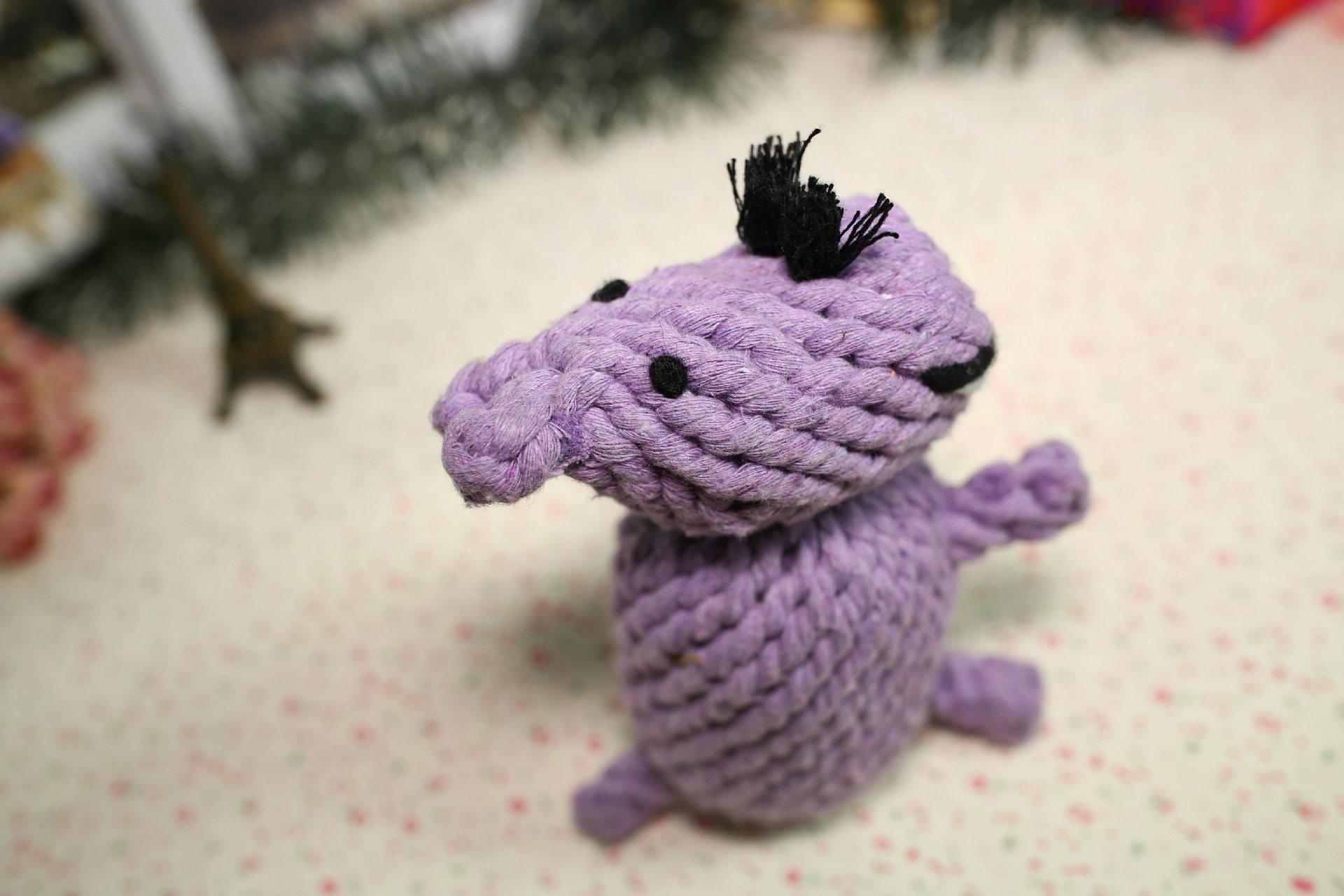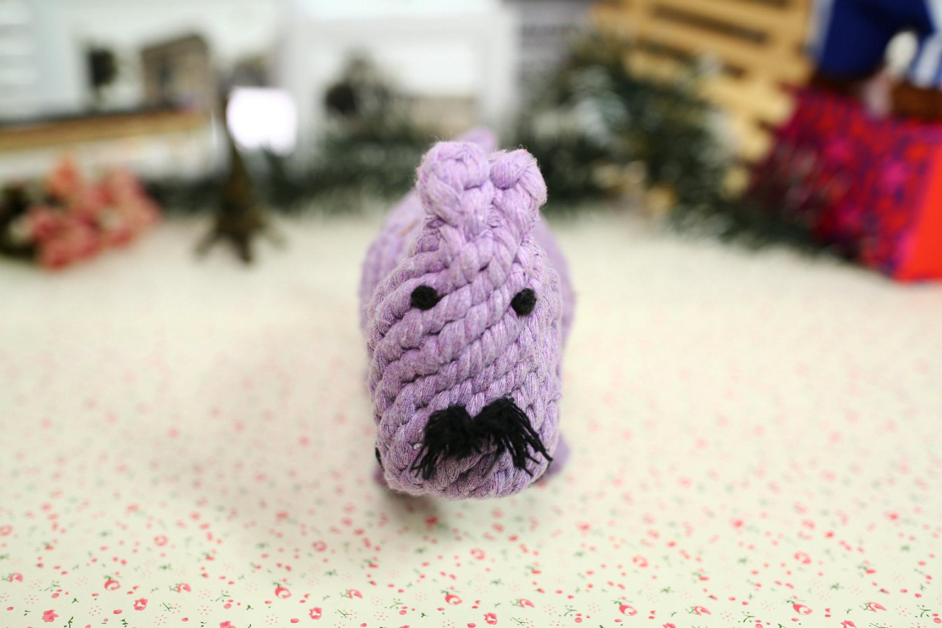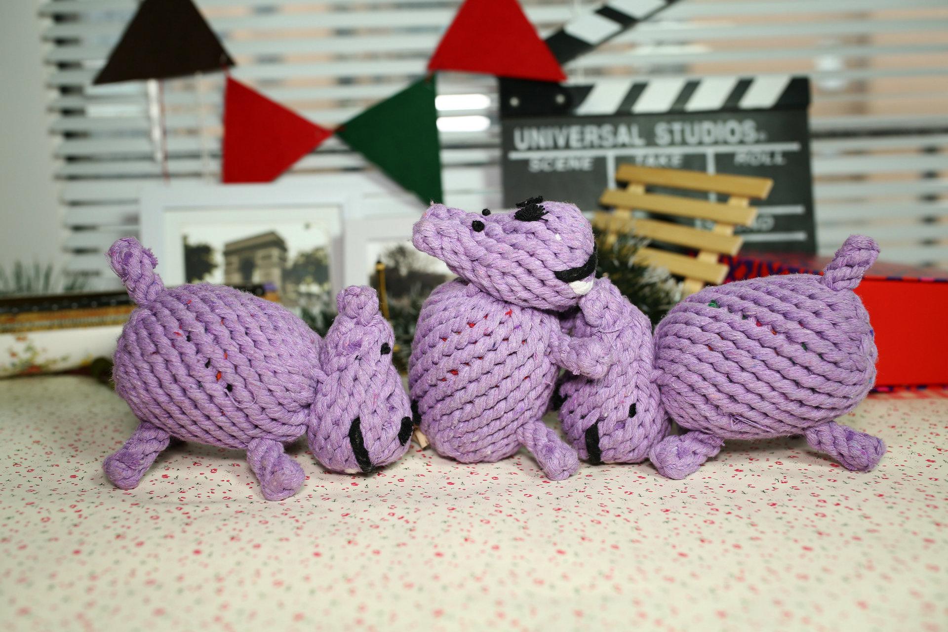Juguete de hipopótamo para morder, pequeño muñeco de perro, suministros para mascotas, hilo de algodón, juguete pequeño para perros, venta al por mayor
