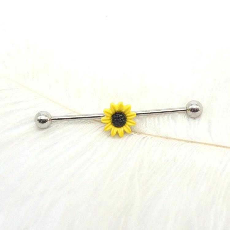 Pendientes tipo botón con forma de girasol para mujer, estilo transfronterizo europeo y americano, con forma de girasol, para oreja, puente, oreja larga, piercing corporal, joyería en stock