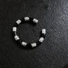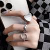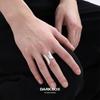 Anillo de plata S925 con diseño geométrico irregular de ala ancha y esmalte blanco y negro para mujer, estilo hip hop, personalizado, con nicho dividido.