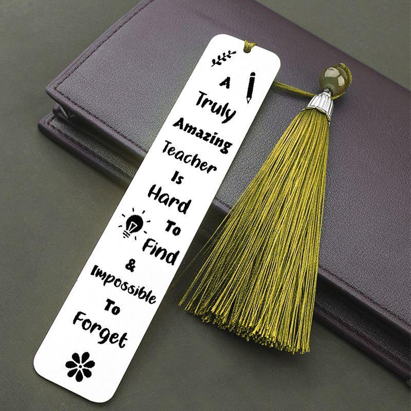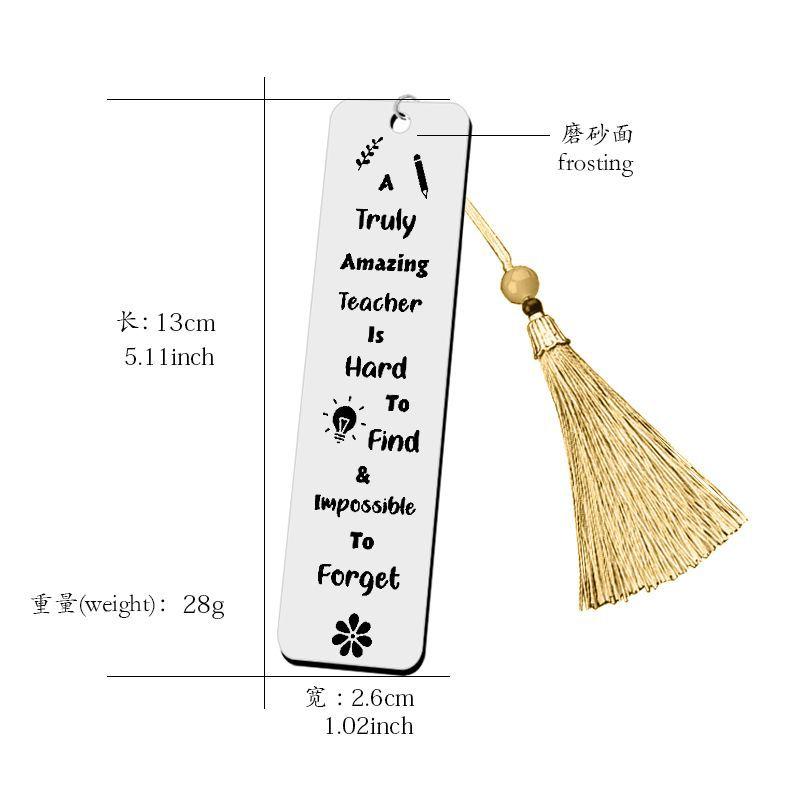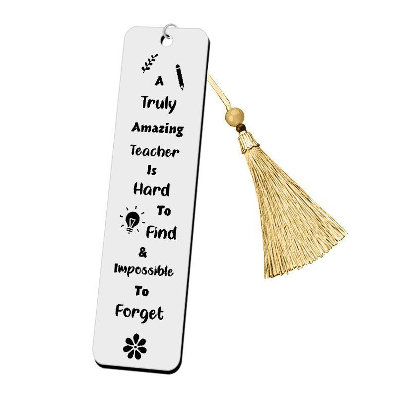 DIY nuevos regalos navideños para maestros marcadores de borla de acero inoxidable Día del Maestro letras regalos conmemorativos al por mayor