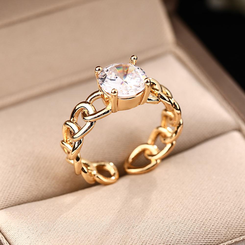 Anillo de circonita con microincrustaciones, estilo creativo japonés y coreano de Amazon, cadena moderna para mujer, diseño hueco, joyería de mano